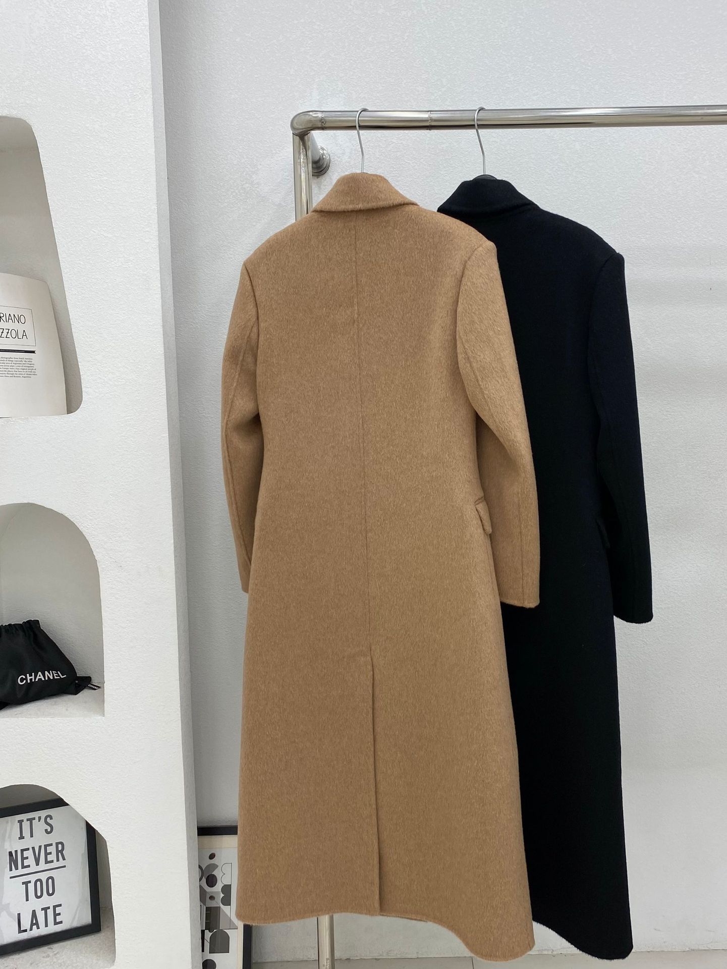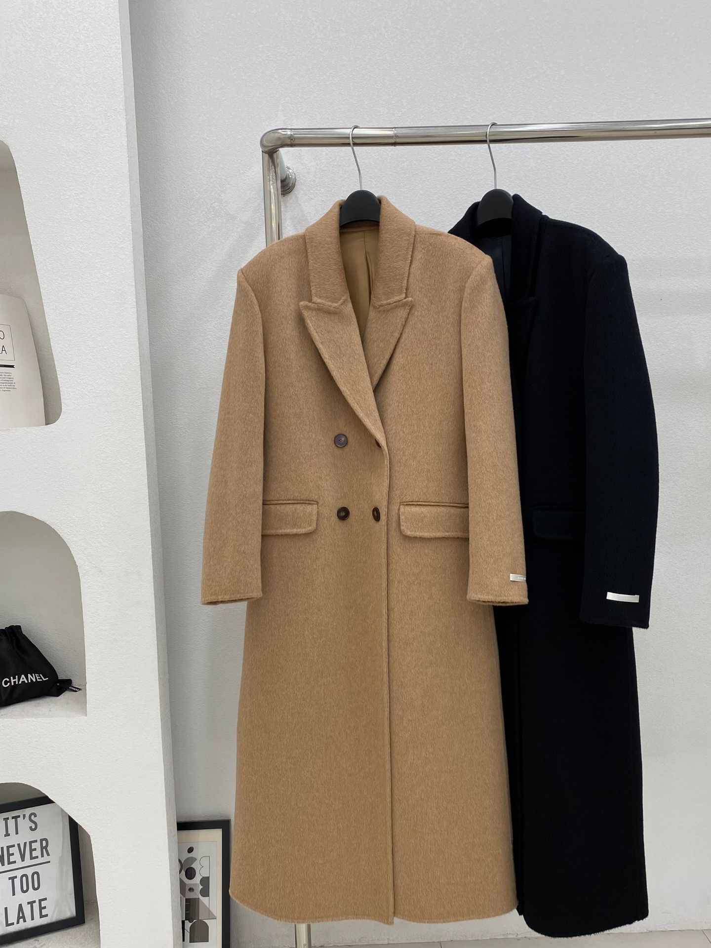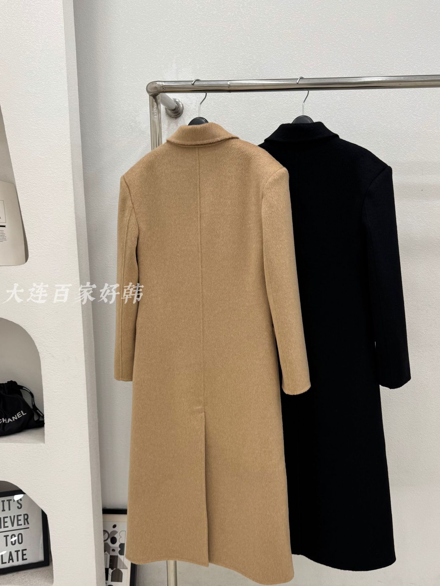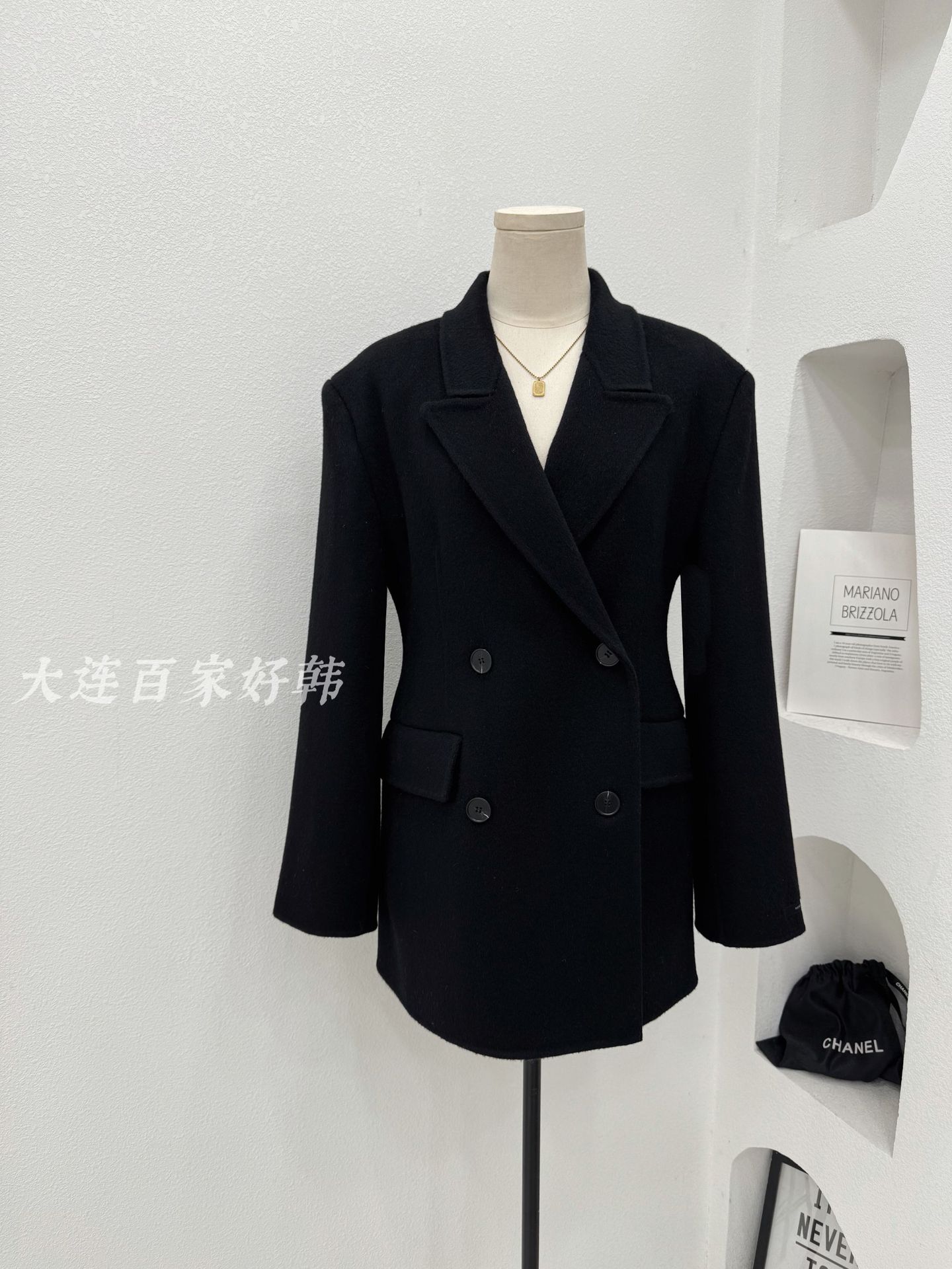 모래시계 허리 슈트 양면 울 코트 카멜 블랙 오른쪽 어깨 패딩 슈트 재킷 가을 겨울 신스타일