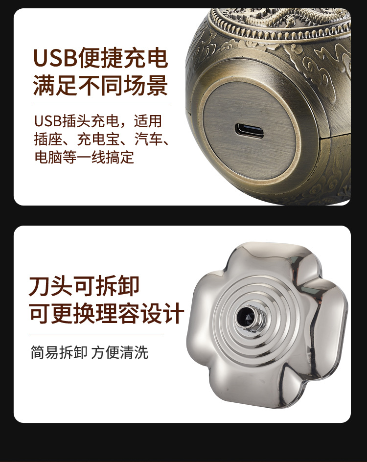 1. 复古中国风设计,迷你机身, 剃须,剃头一机两用