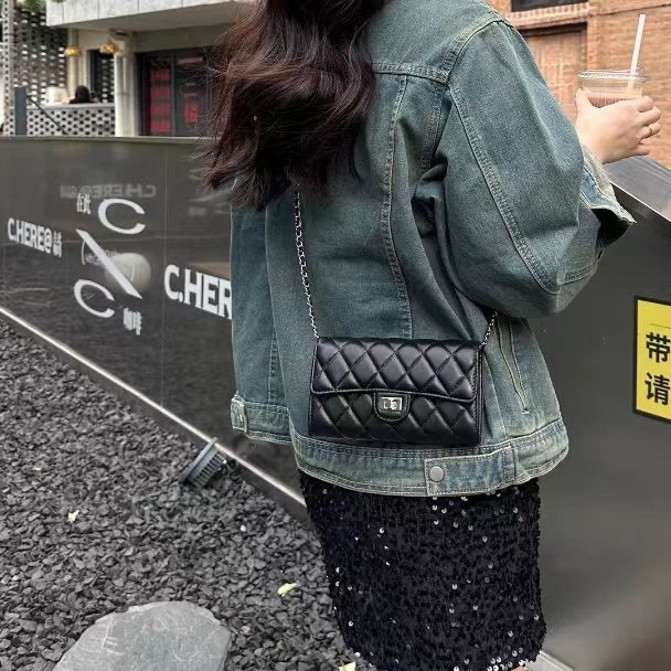 여자 가방 Xiangfeng 동전 지갑 모든 경기 미니 작은 광장 가방 새로운 하이 엔드 블랙 휴대 전화 어깨 다이아몬드 체인 가방