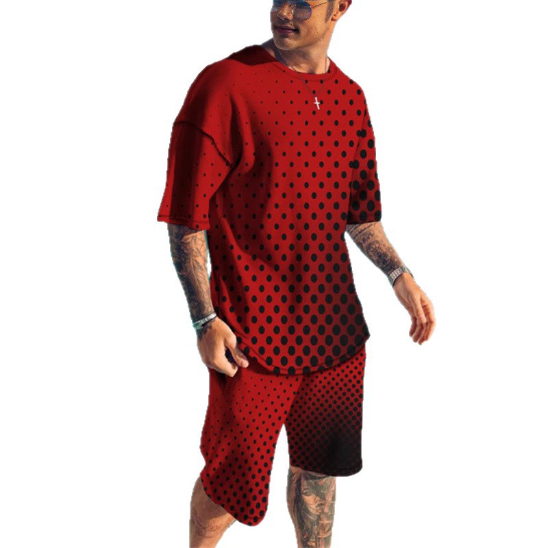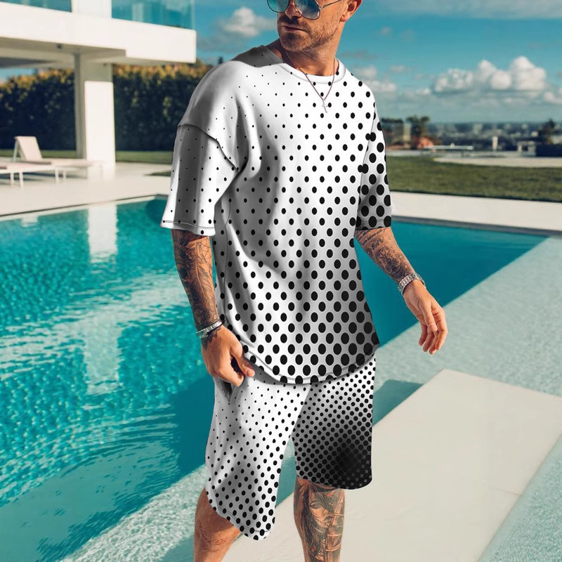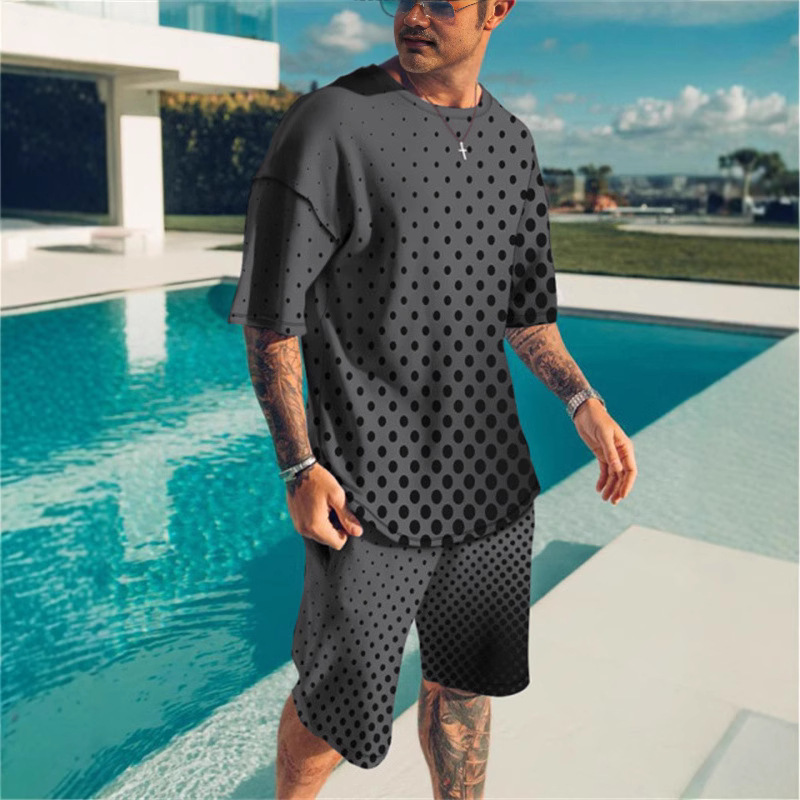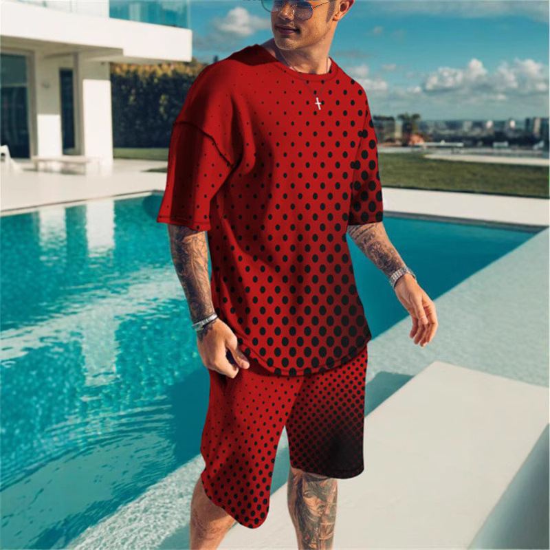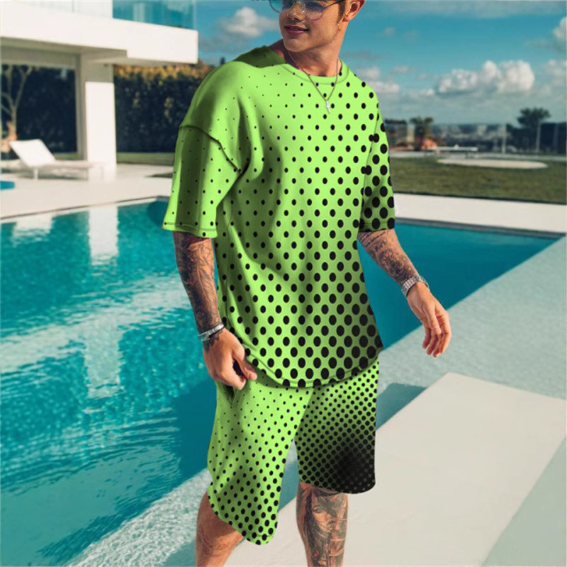 2025 하와이 휴가 남성용 리본 그라데이션 반팔 정장 3DT 셔츠 비치 바지 정장 캐주얼하고 편안합니다.