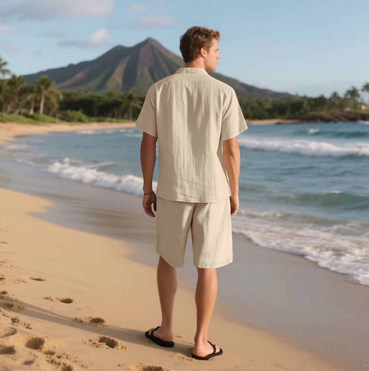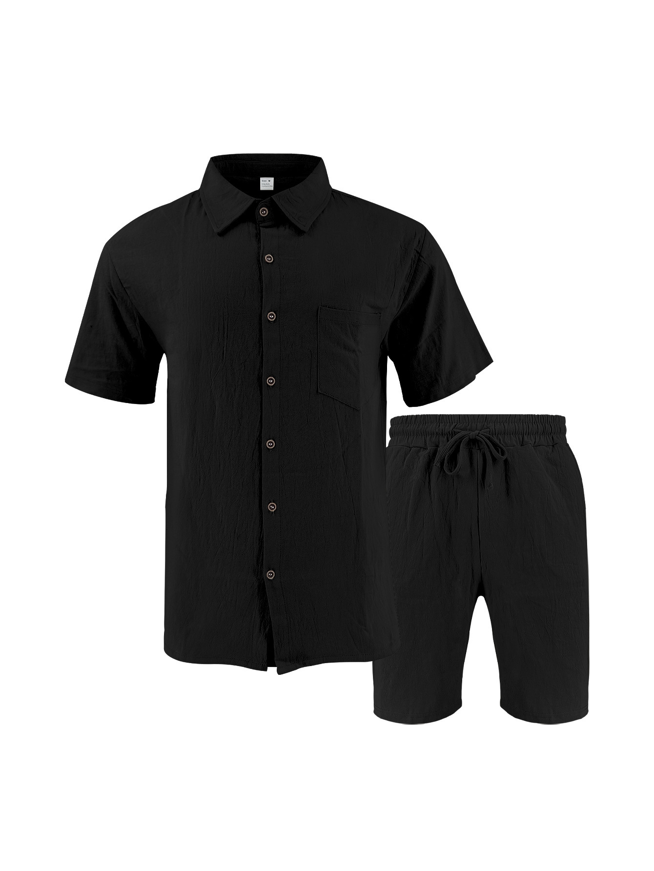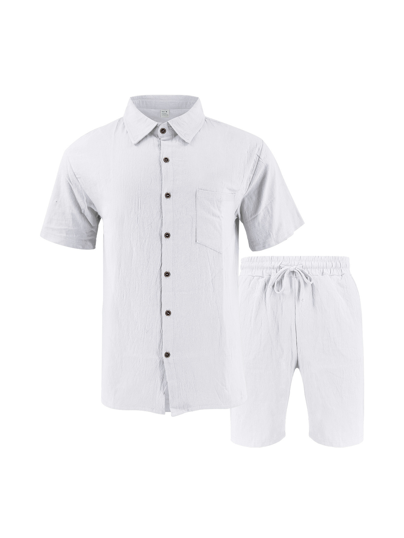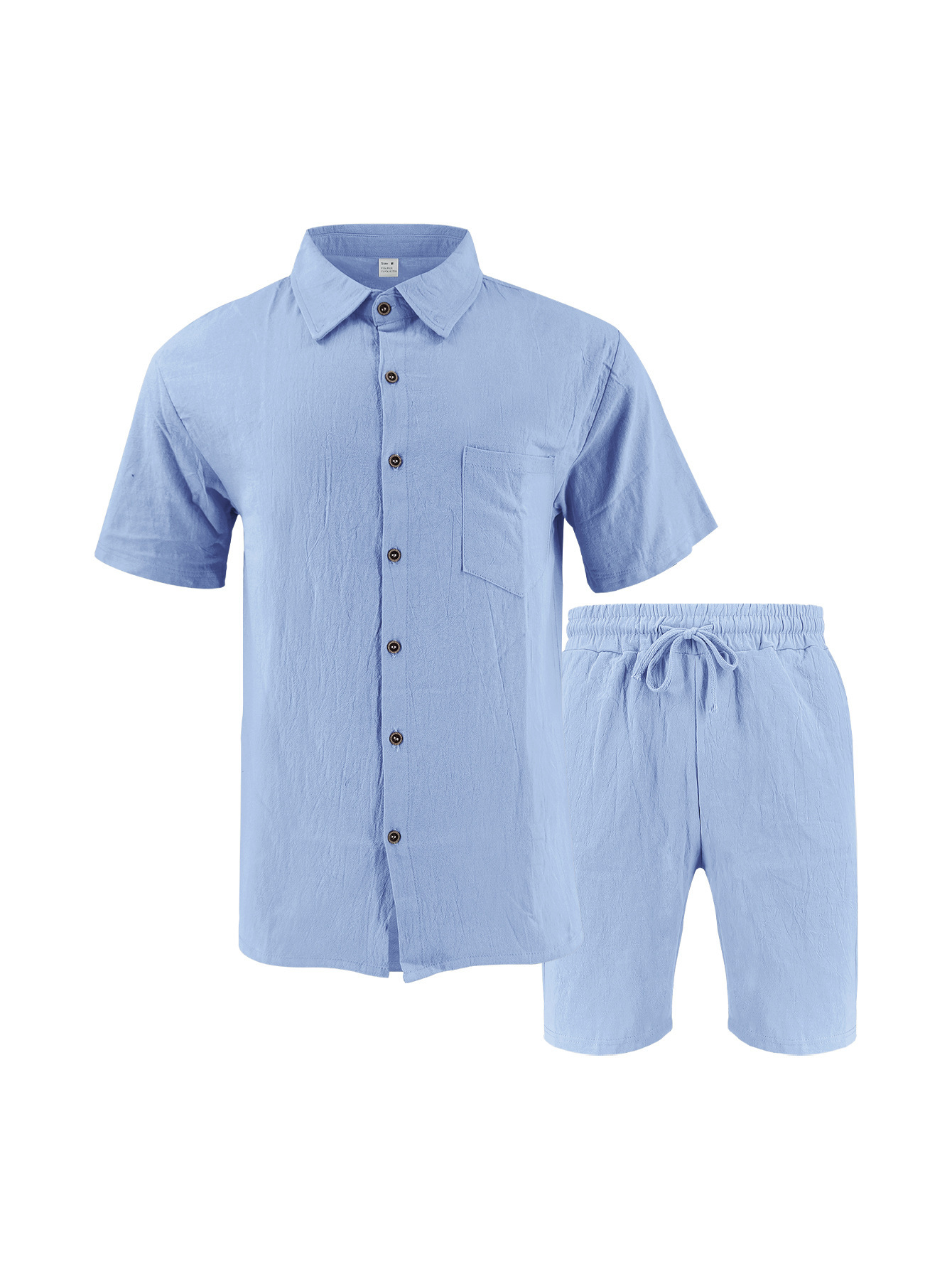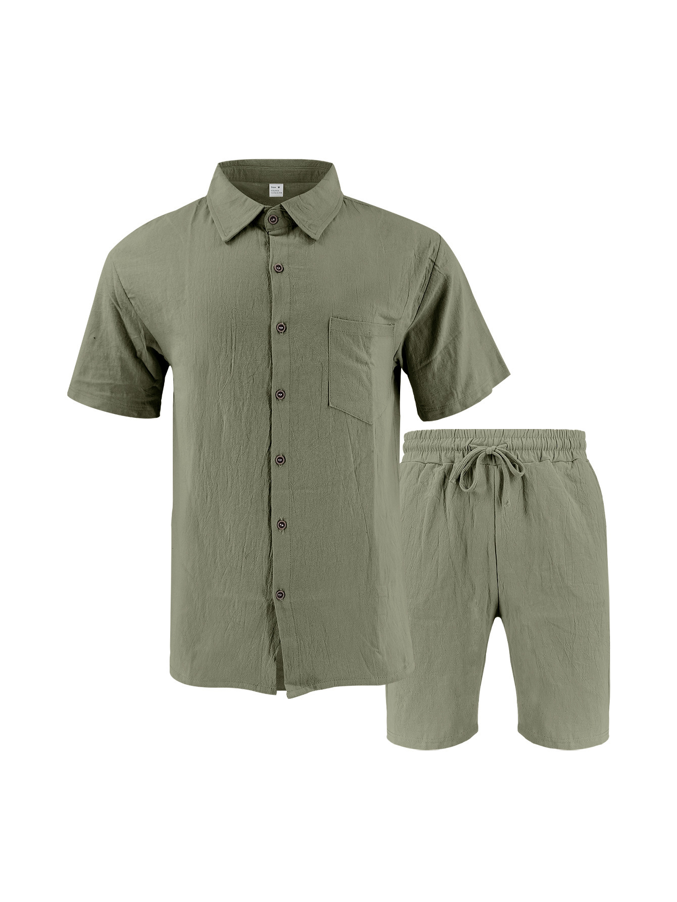 产品风格,美式亚麻短袖短裤衬衫套装