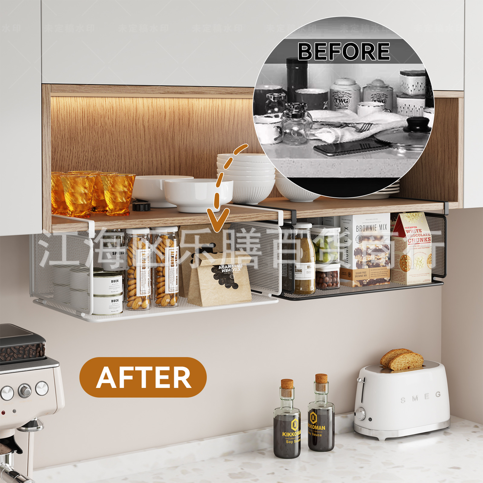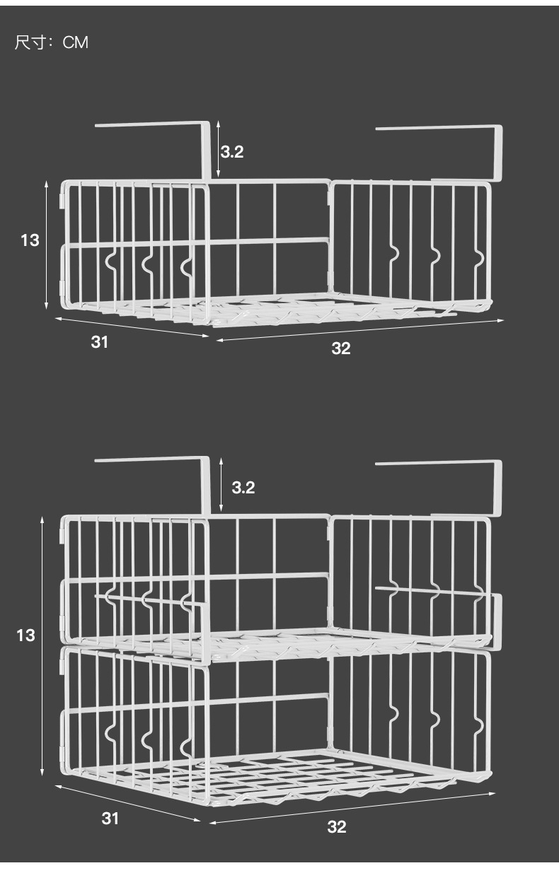 흰색으로 쌓을 수 있는 높이 조절 가능한 걸이 바구니