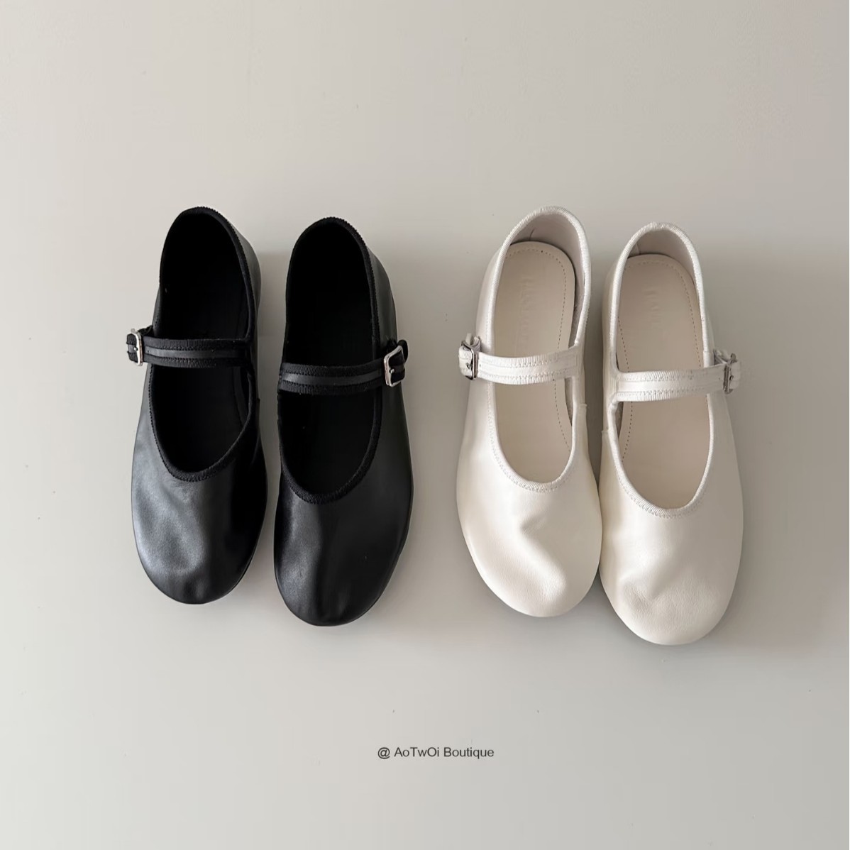 양가죽 버전 ~ 프렌치 레트로 원버튼 메리제인 여성화 2025 여름 신작 라운드 투 통기성 플랫 슈즈