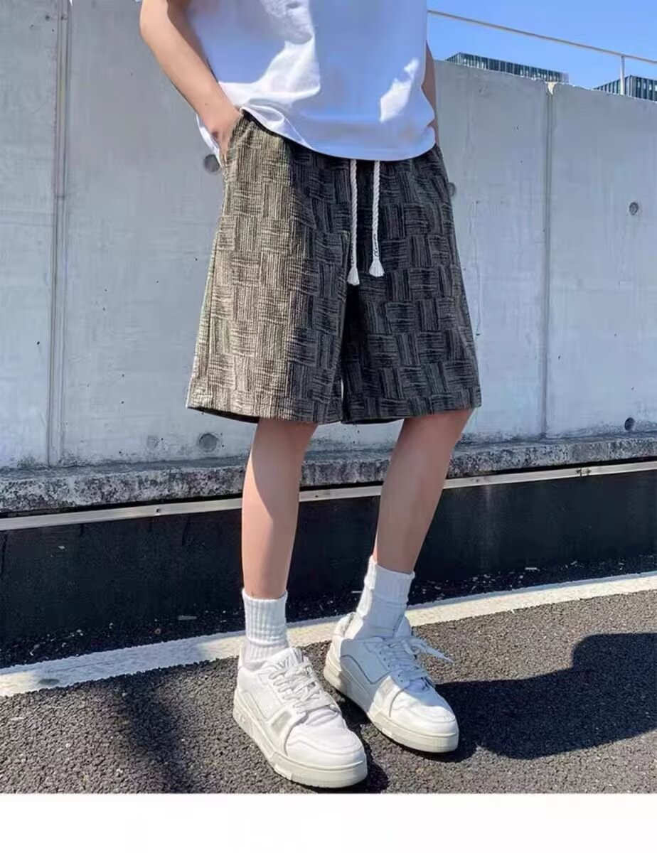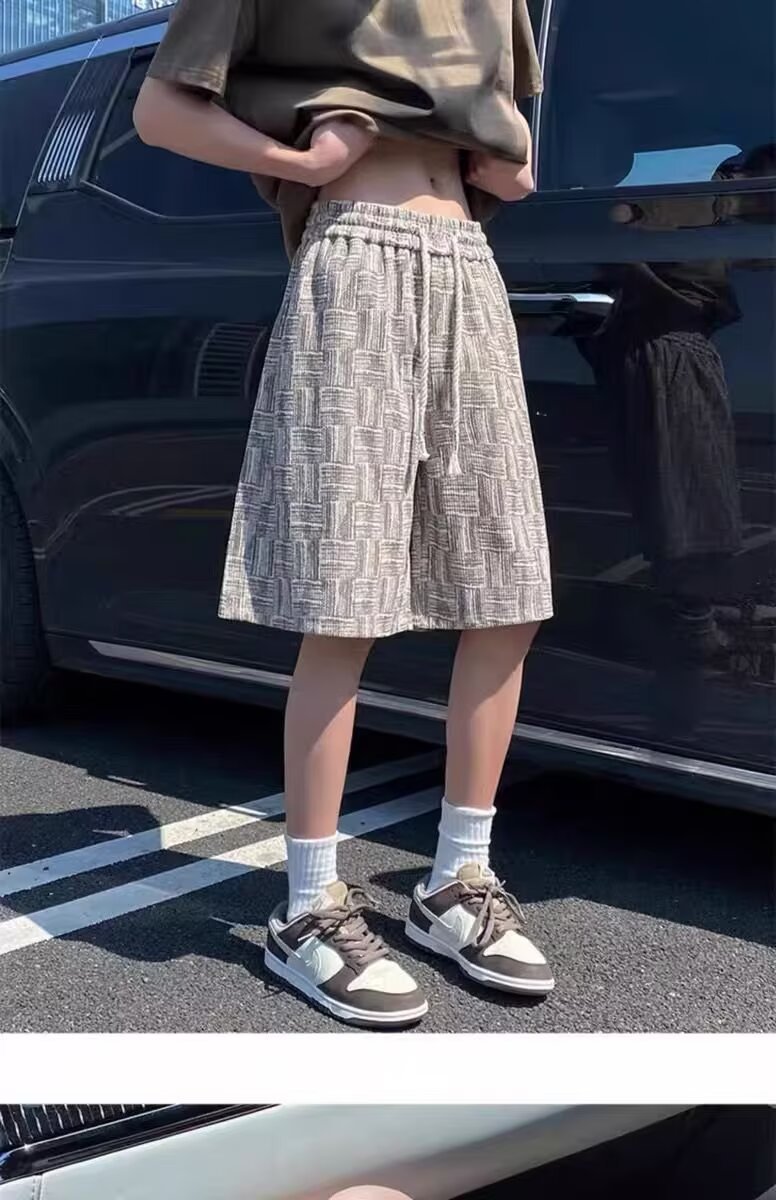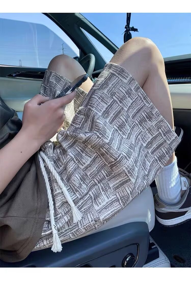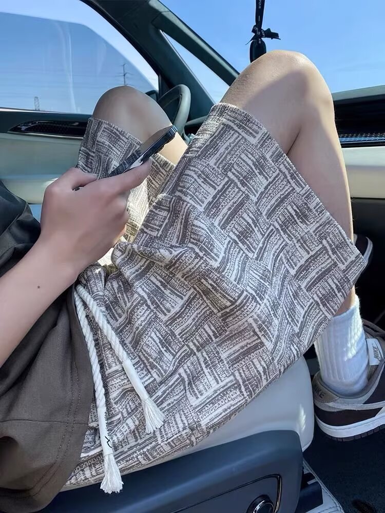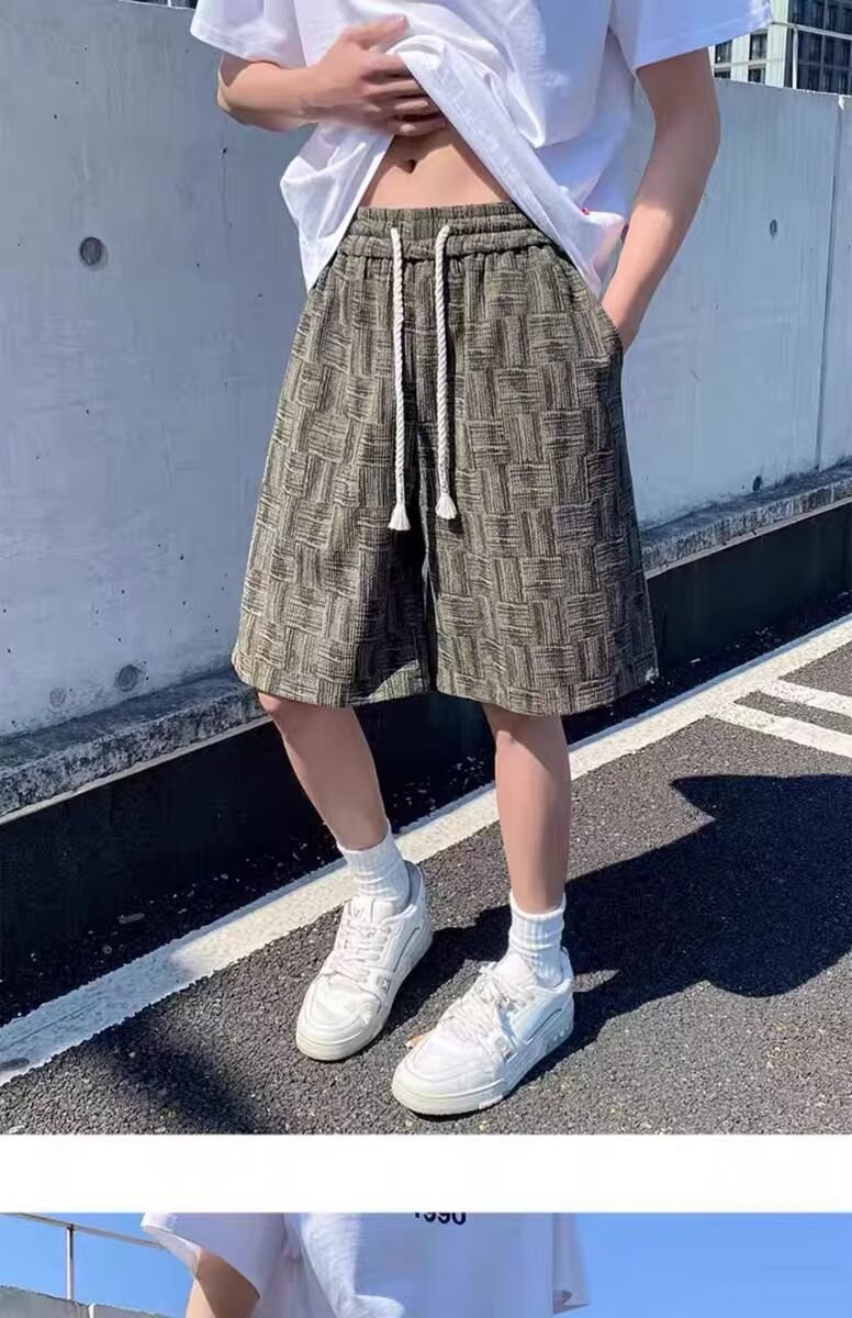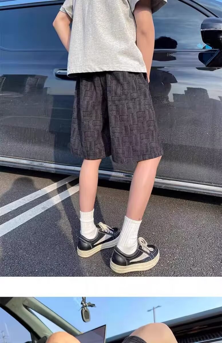 남성용 아메리칸 체크무늬 올오버 프린트 반바지, 여름 아우터, 트렌디한 브랜드 루즈한 대형 비치팬츠, 남아용 캐주얼 5부 팬츠