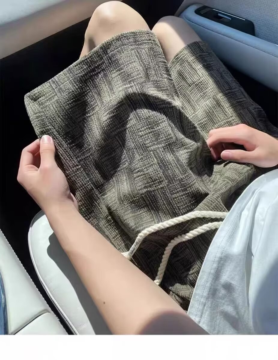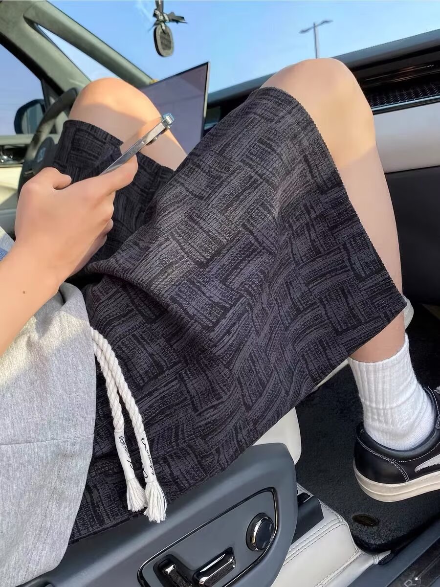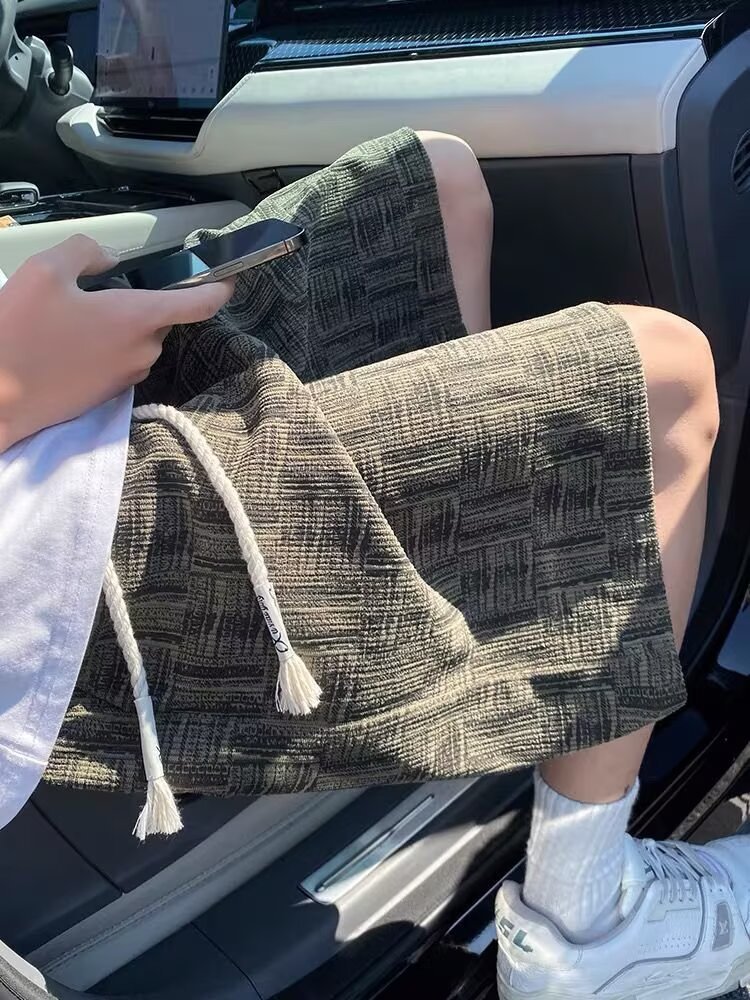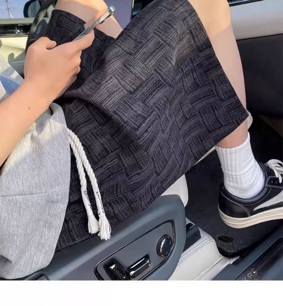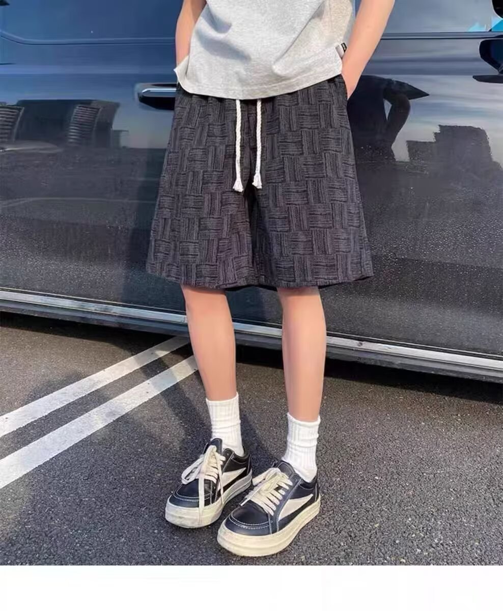 남성용 아메리칸 체크무늬 올오버 프린트 반바지, 여름 아우터, 트렌디한 브랜드 루즈한 대형 비치팬츠, 남아용 캐주얼 5부 팬츠
