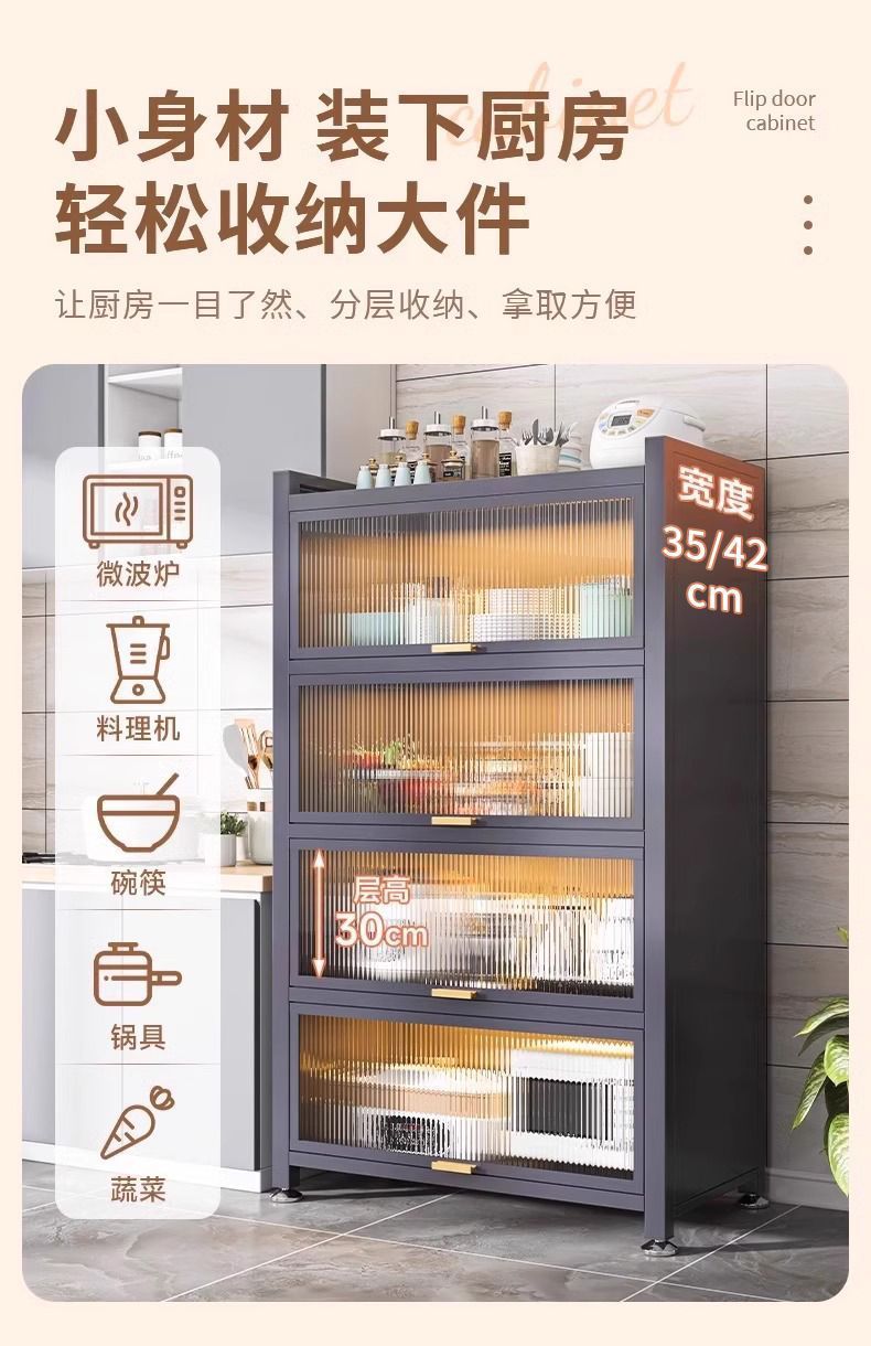 주방 수납 선반 바닥에서 천장까지 다층 수납 캐비닛 가정용 다기능 방진 수납 캐비닛 도어가 있는 전자 레인지 캐비닛