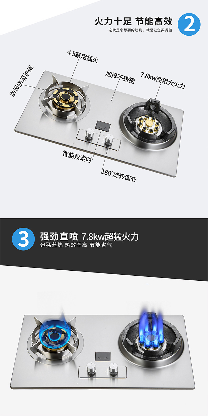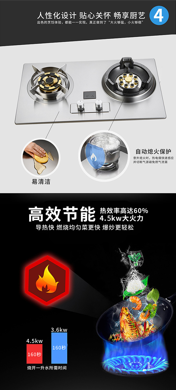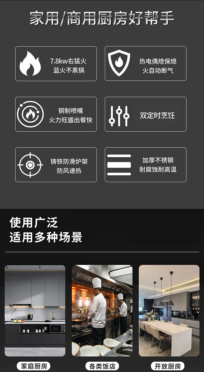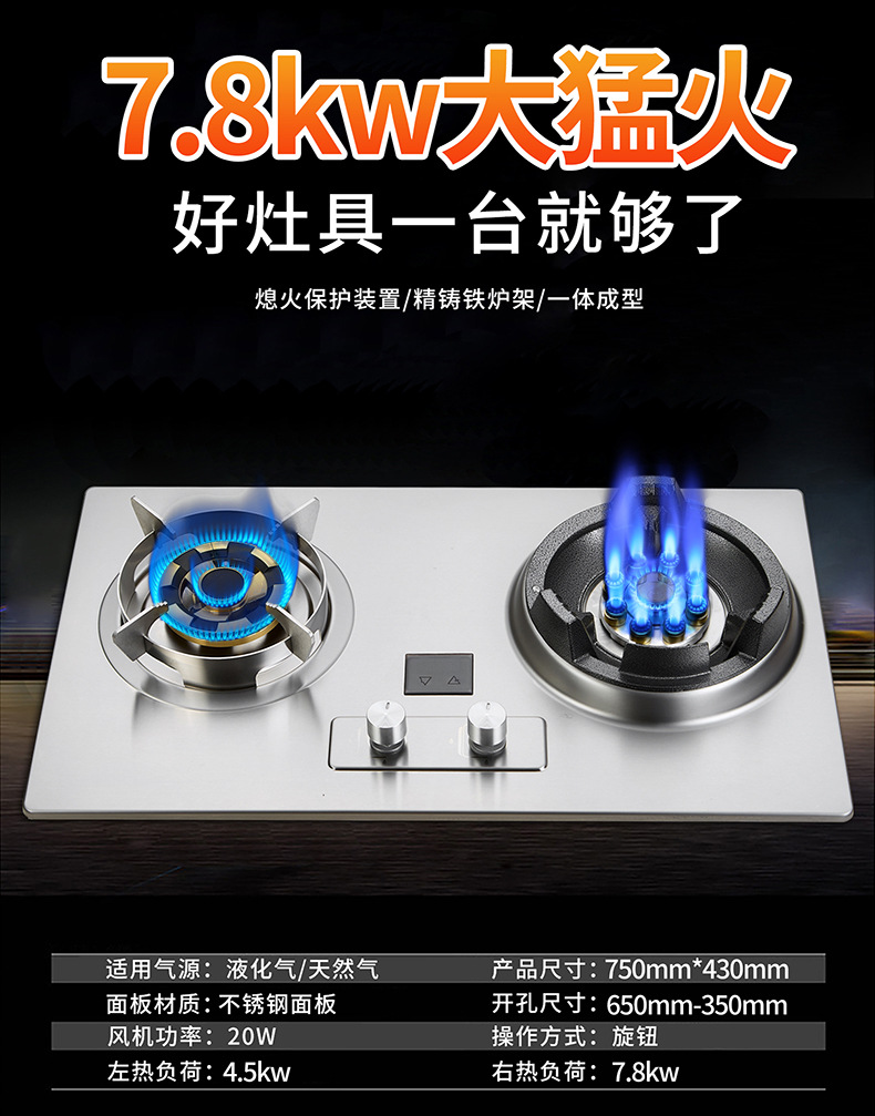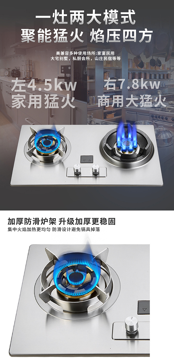 가정식 식사 강력 가스 스토브 주방 고출력 볶음 가스 스토브 7.8KW 가스 데스크탑 내장형 가정용