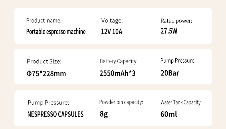 국경 간 전기 가열 에스프레소 커피 머신 파우더 캡슐 이중 용도 야외 여행 자동차 홈 휴대용 미니