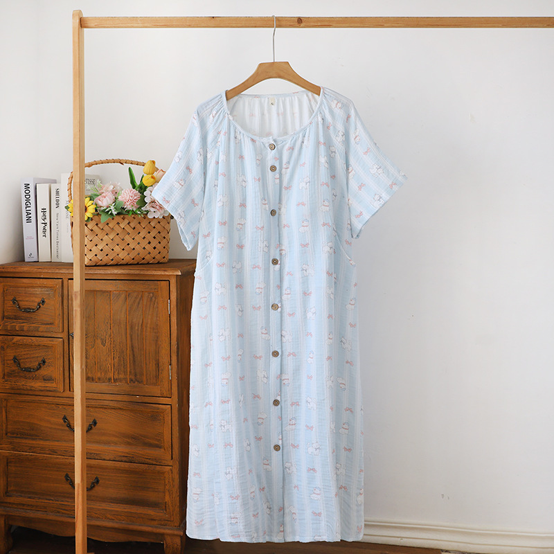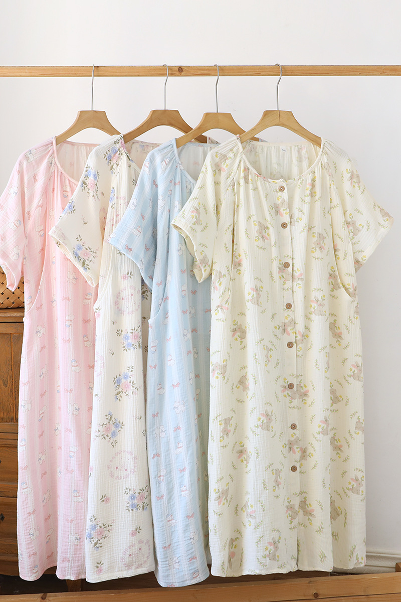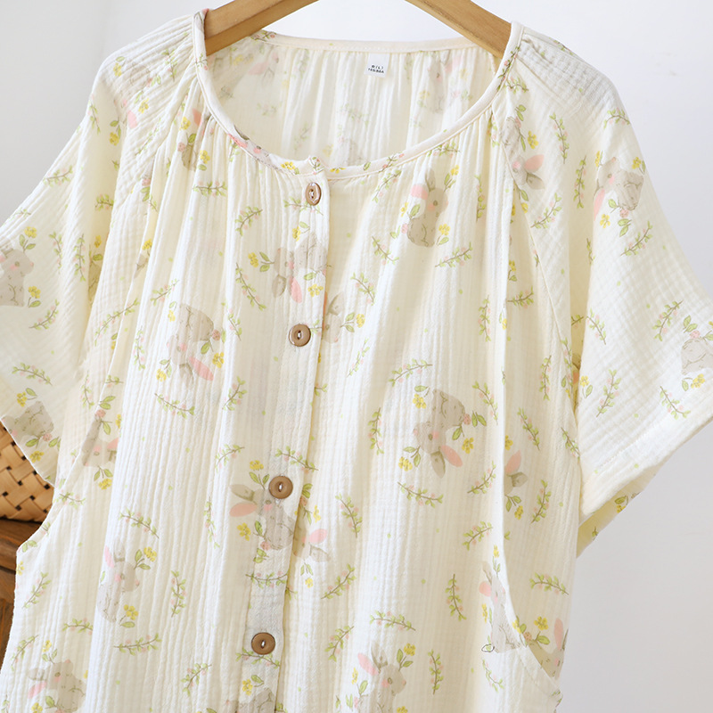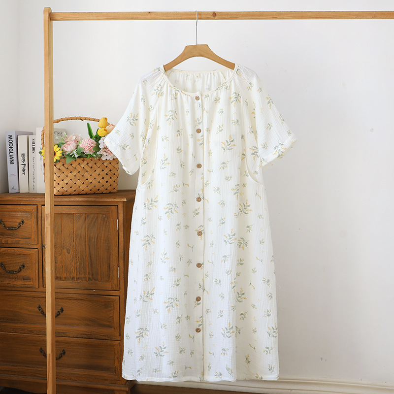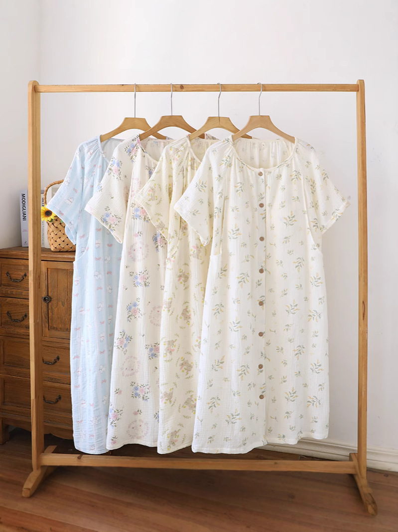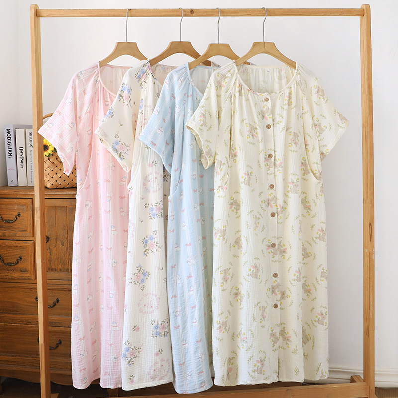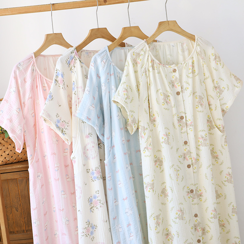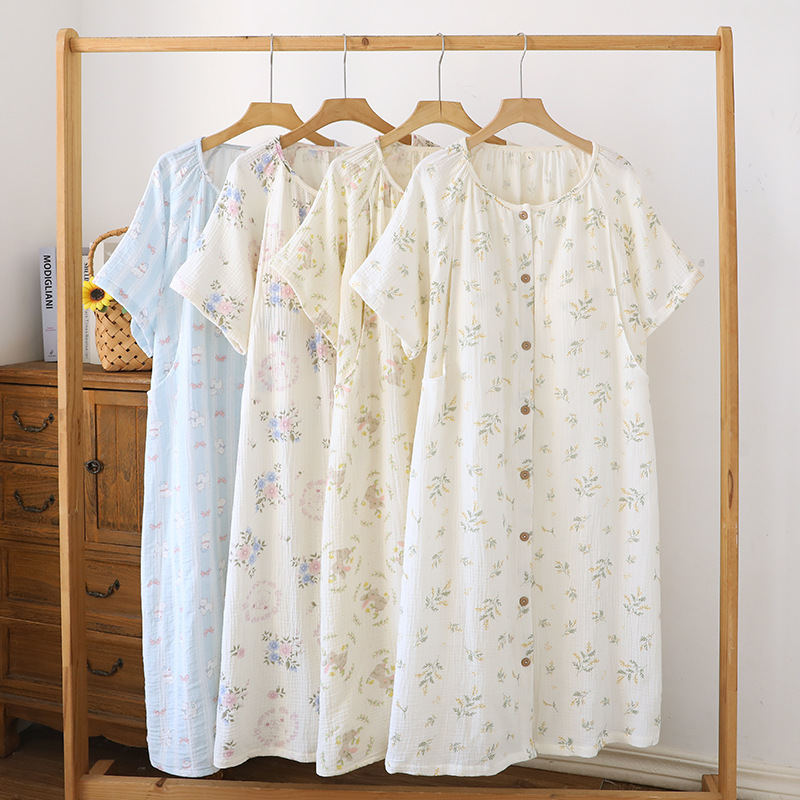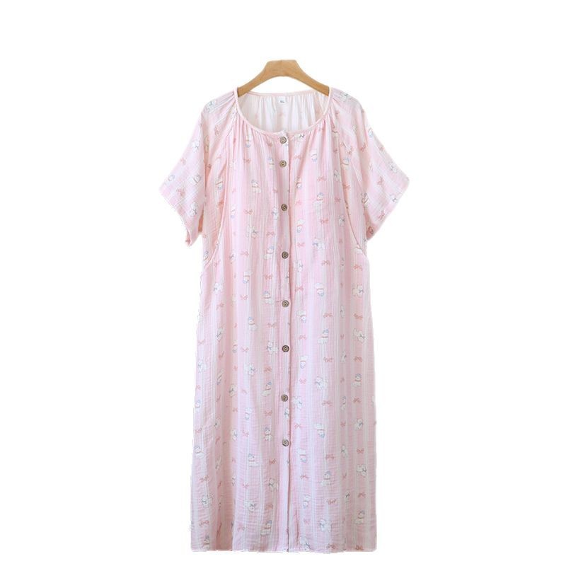 임산부를 위한 순면 크레이프 출산 스커트, 여름 순면 거즈 반팔 수유 잠옷, 임산부 산후복 생산 스커트