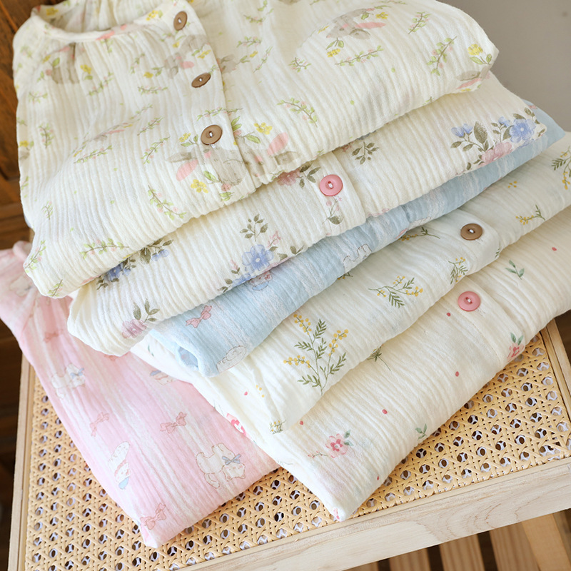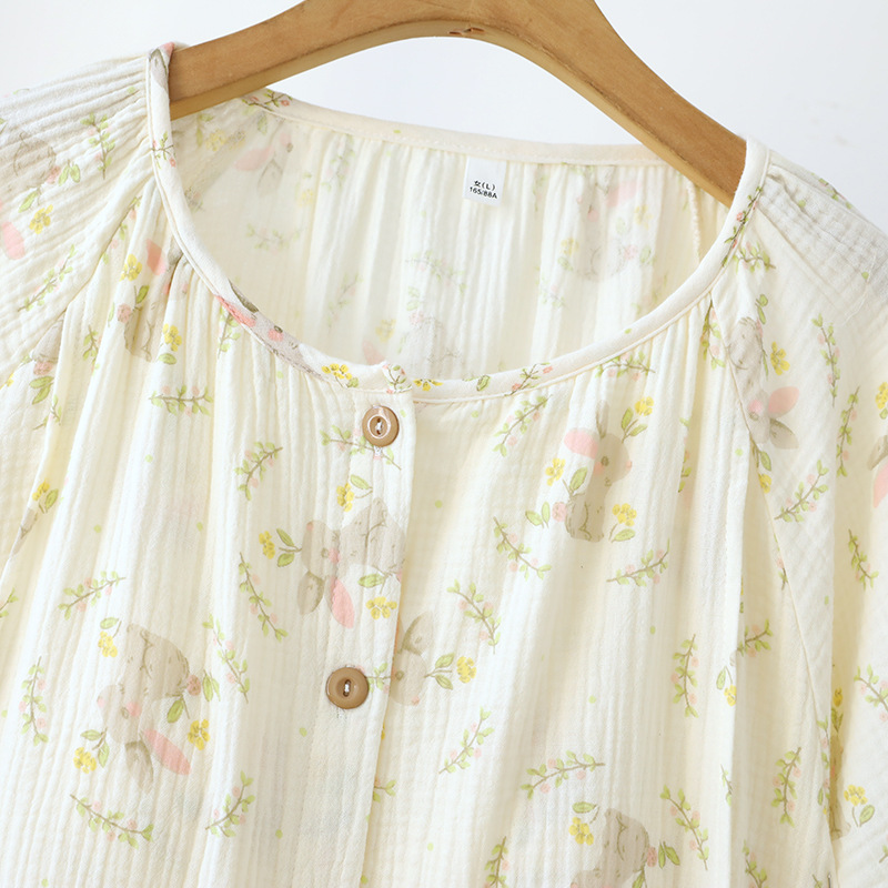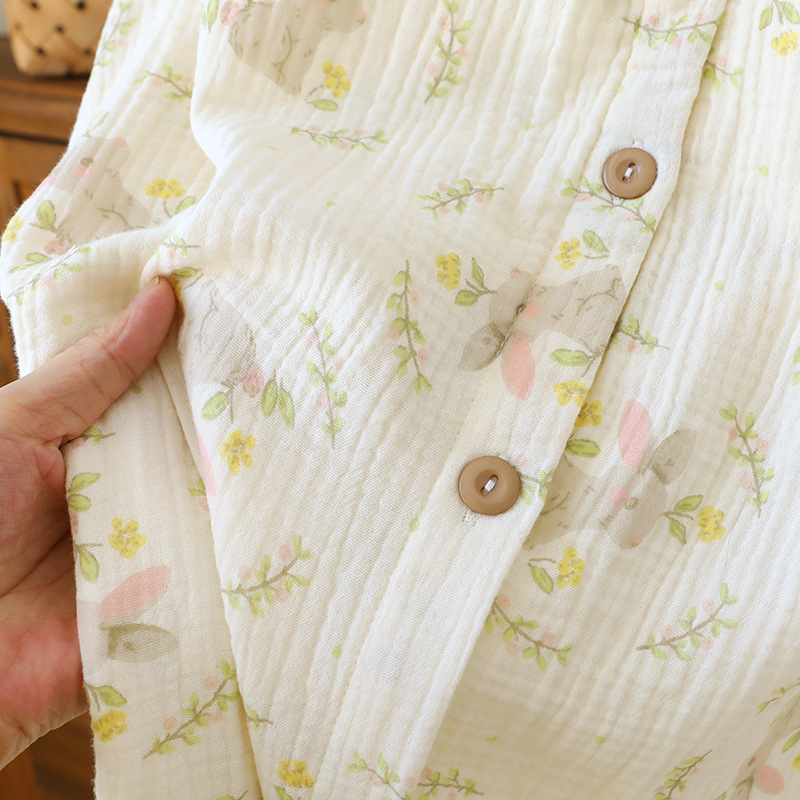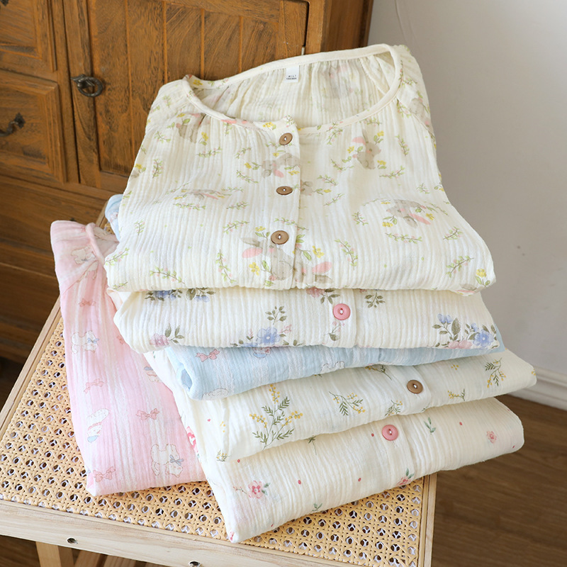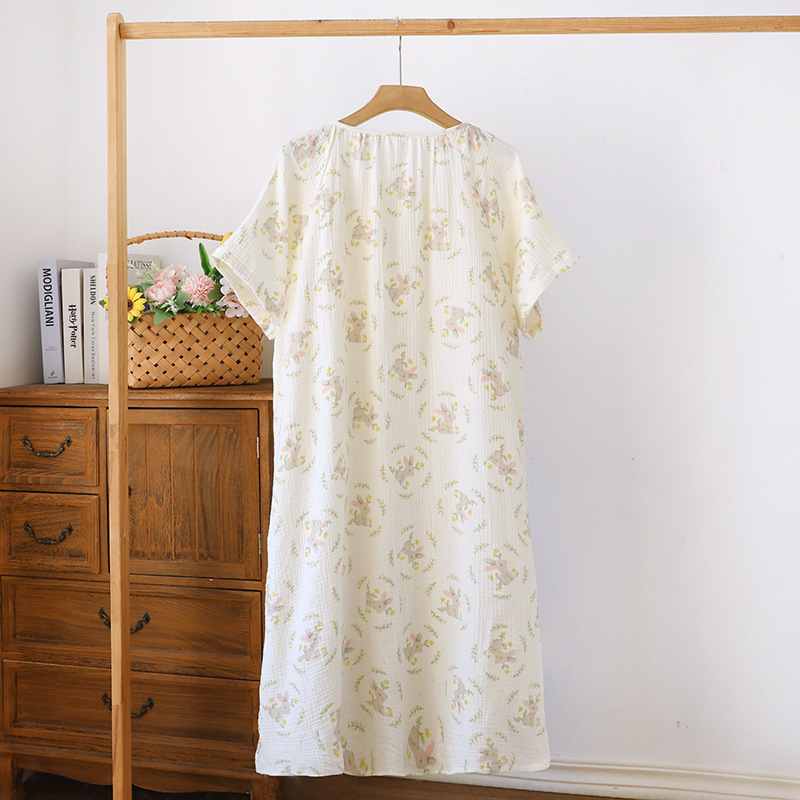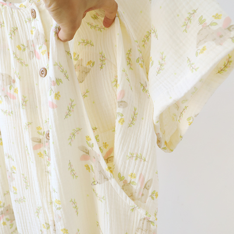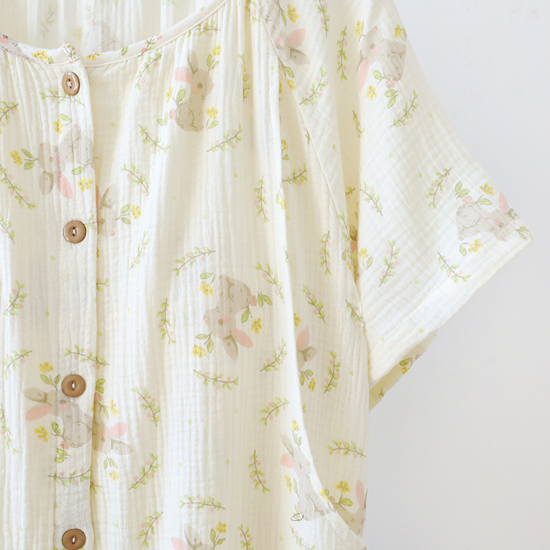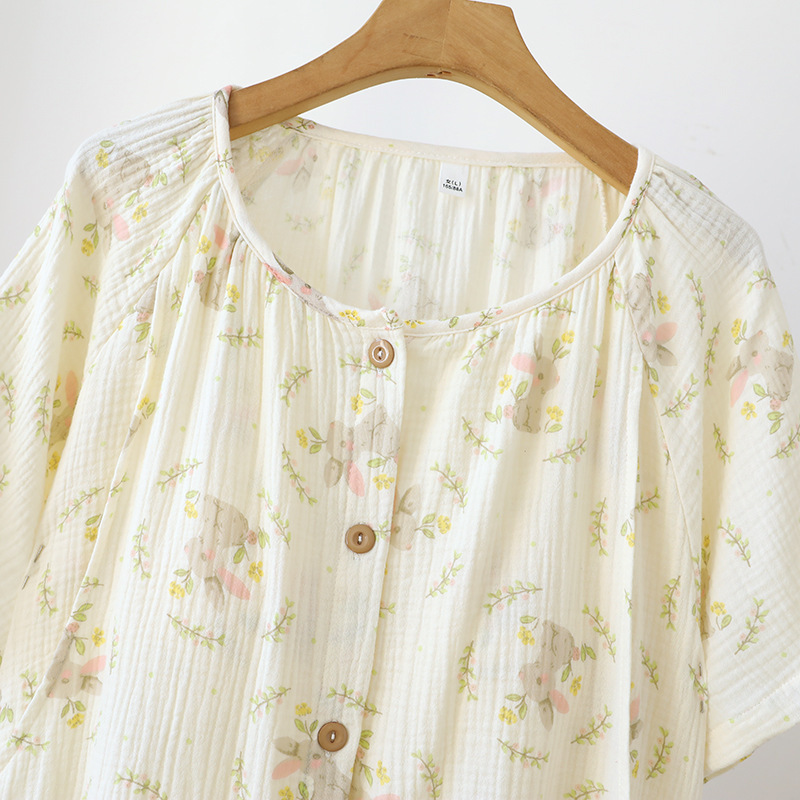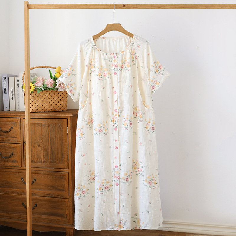 임산부를 위한 순면 크레이프 출산 스커트, 여름 순면 거즈 반팔 수유 잠옷, 임산부 산후복 생산 스커트