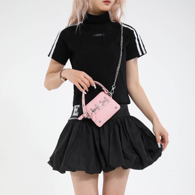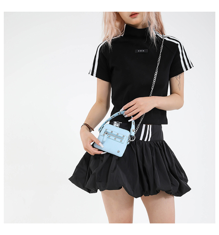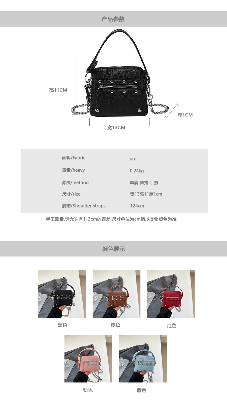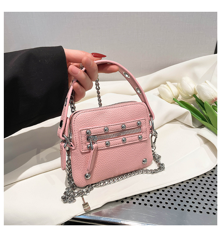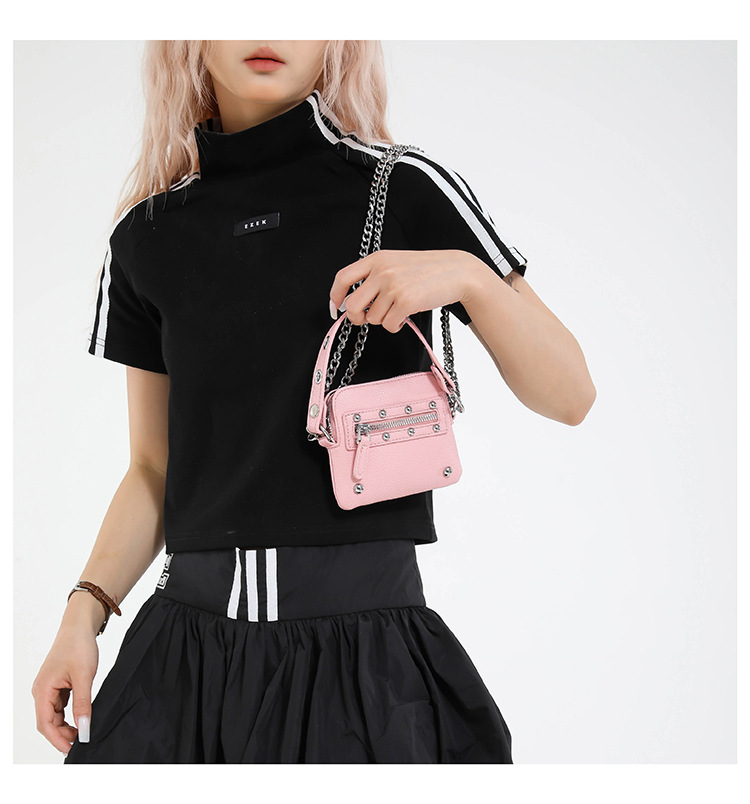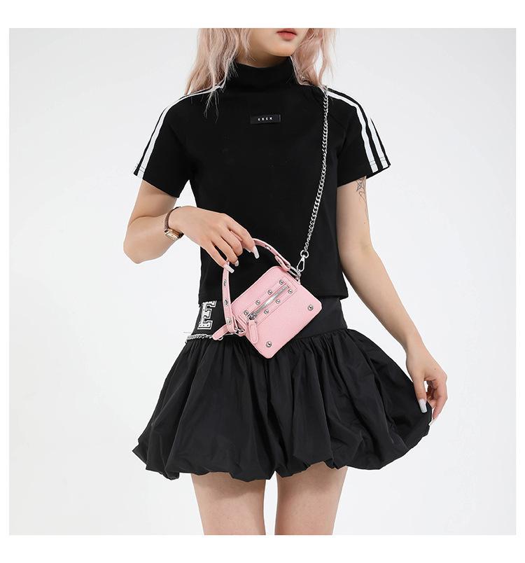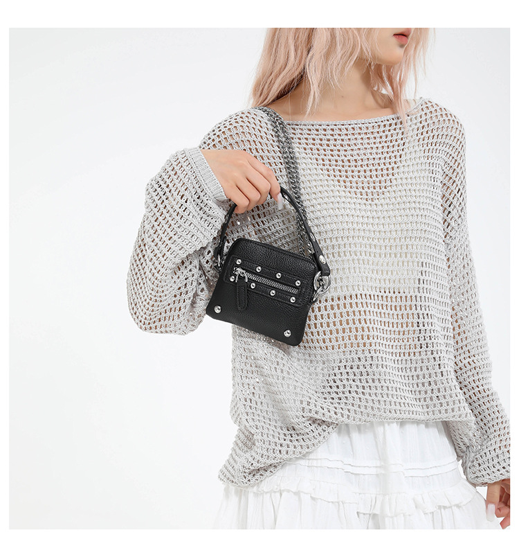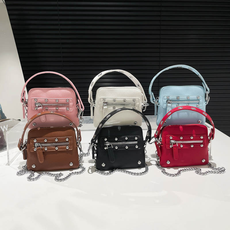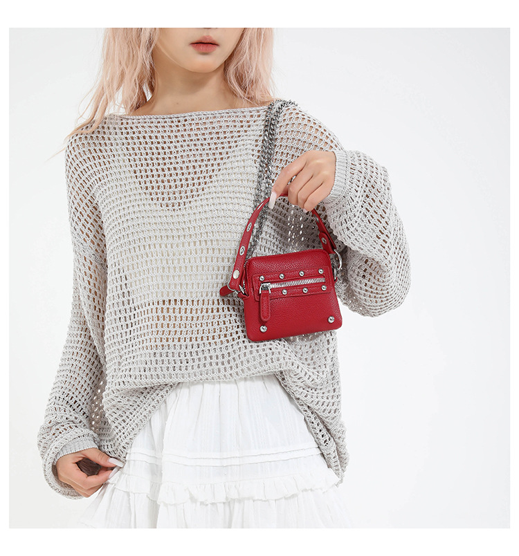 여성을위한 한국 여름 틈새 미니 체인 크로스 바디 백 2025 새로운 오토바이 리벳 다용도 휴대용 동전 지갑