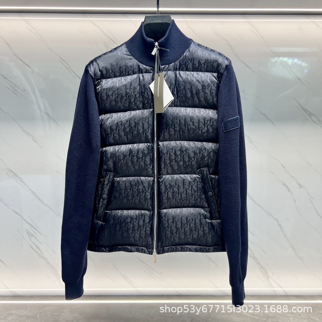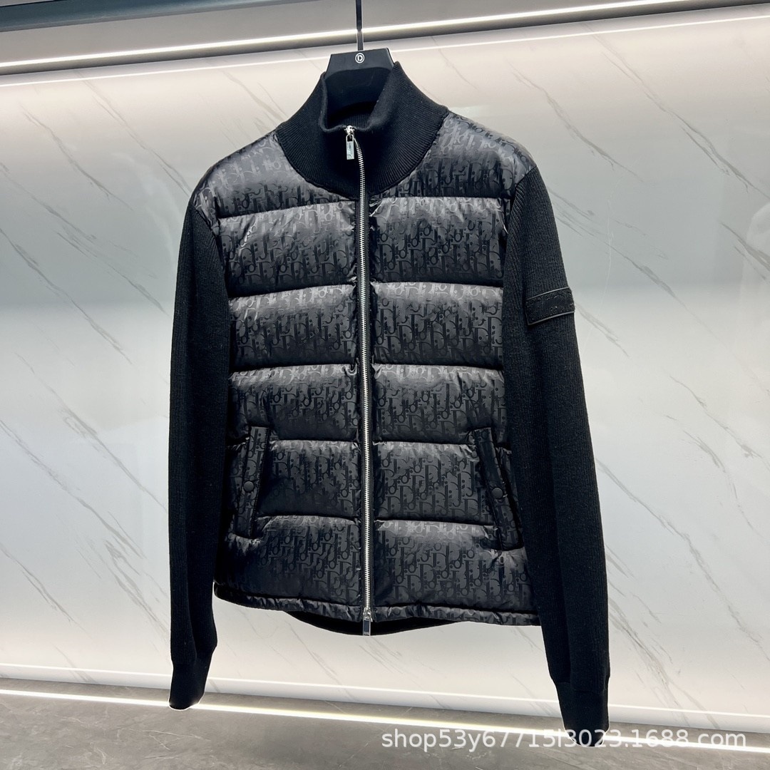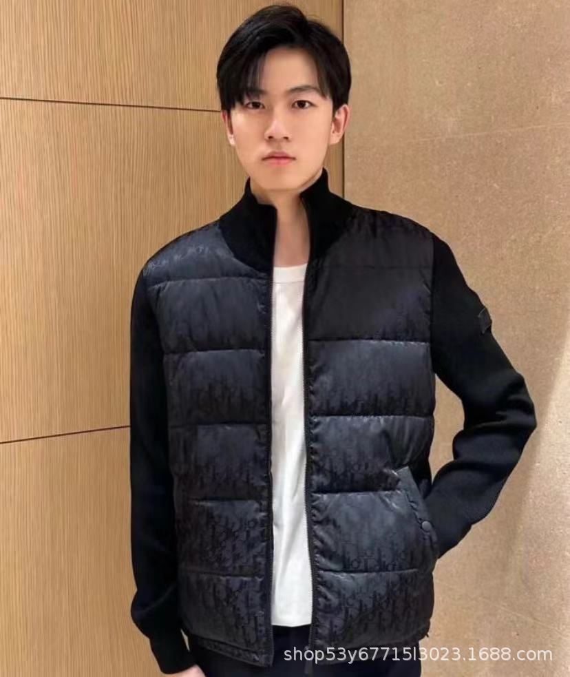 공장 실사 D 홈 오블리크 프린트 풀 프린트 니트 스탠드 칼라 다운 재킷 통근 하이 스트리트 따뜻한 커플 재킷