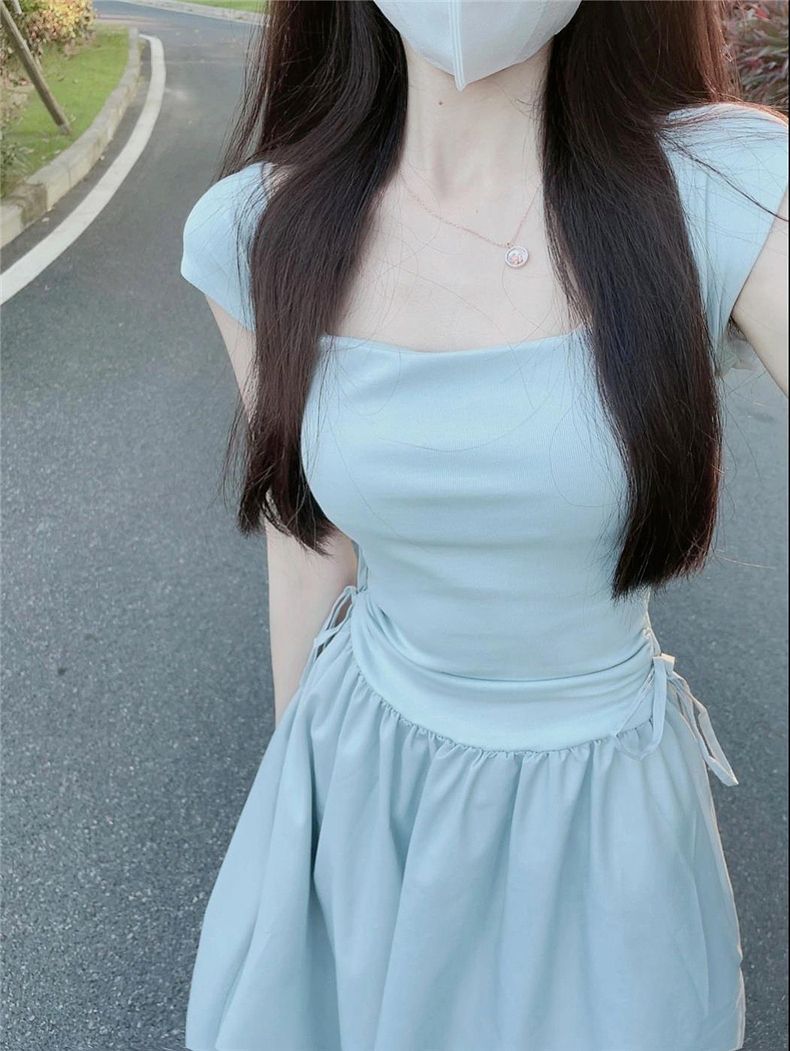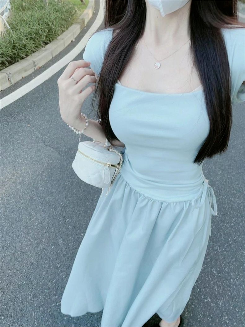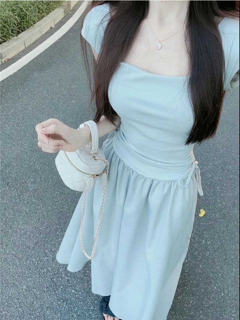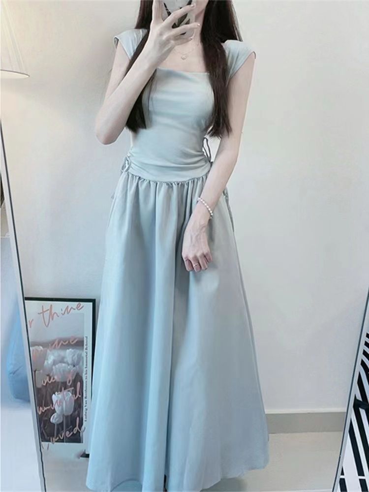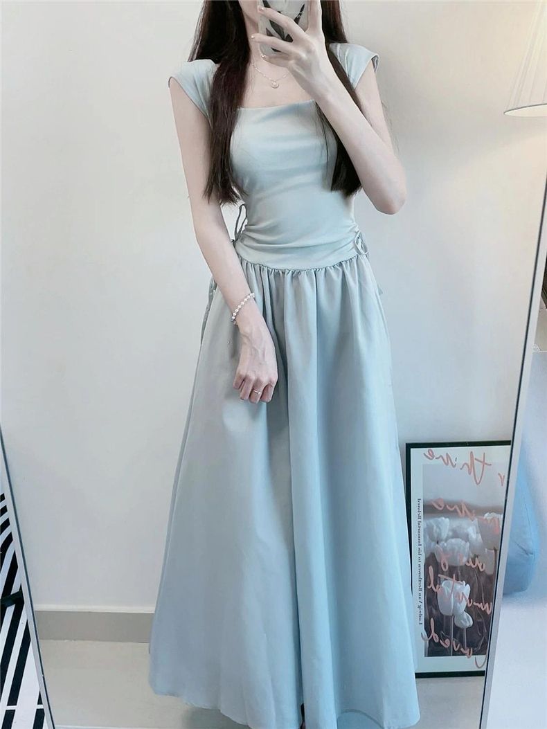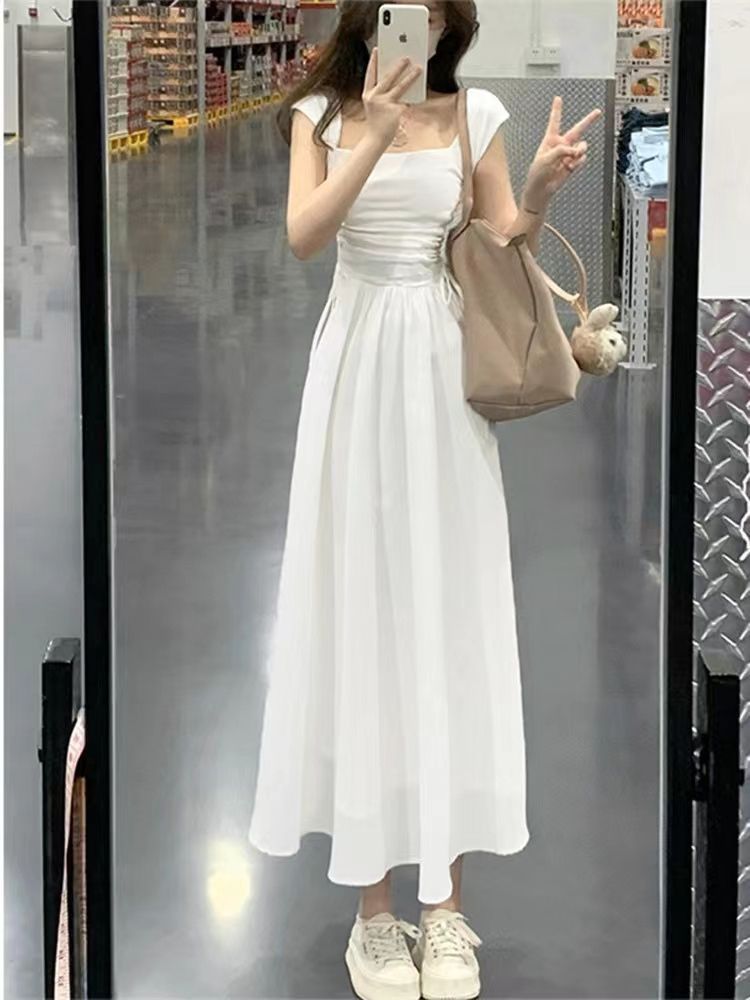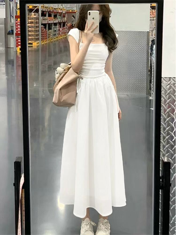 화이트 원피스 여성 여름 2026 신상 티타임 프렌치 스타일 작은 체형을 위한 고급스러운 슬림핏 허리라인 강조 롱 원피스