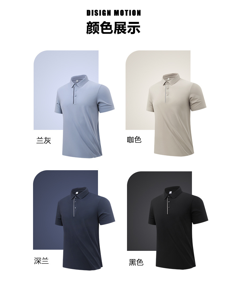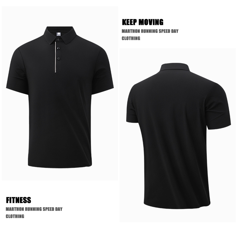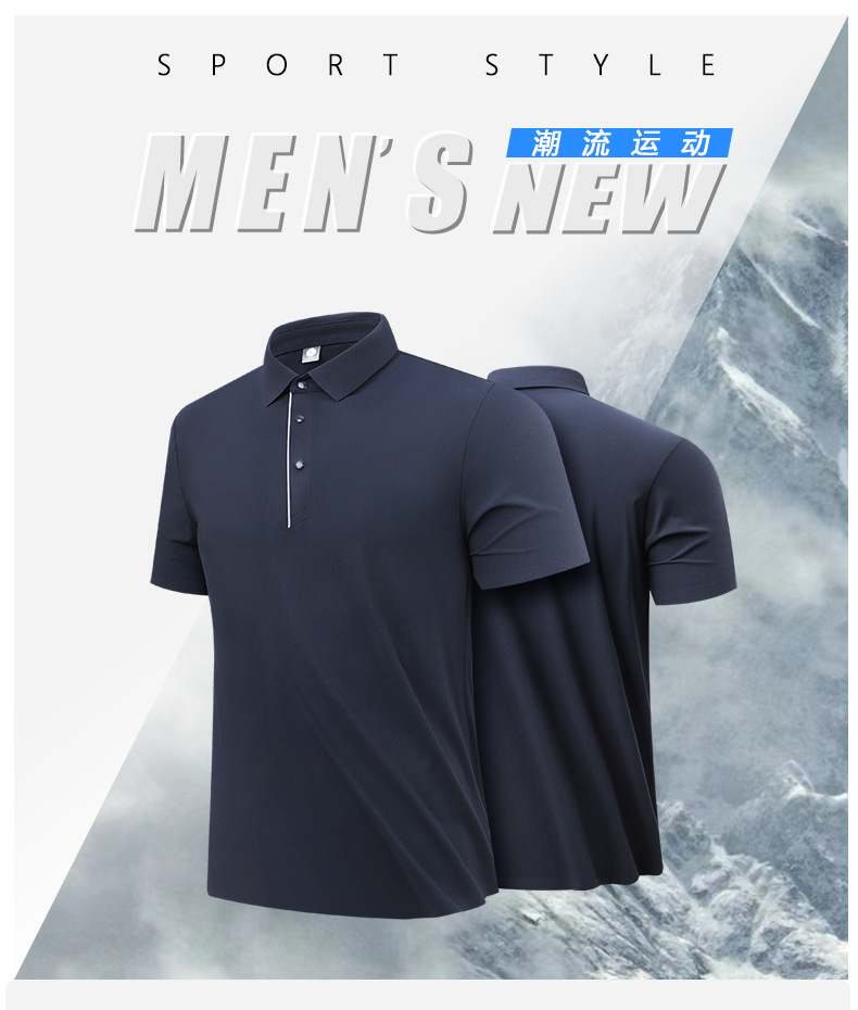 폴로 셔츠 칼라 고급스러운 남성 비즈니스 심리스 아이스 촉감 티셔츠 라펠 루즈핏 프린팅 탑 반팔 피트니스