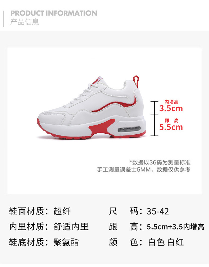 여성용 부드러운 바닥 두꺼운 바닥 내부 높이 증가 운동화 8cm 작은 인기 여성 신발 여행 캐주얼 신발