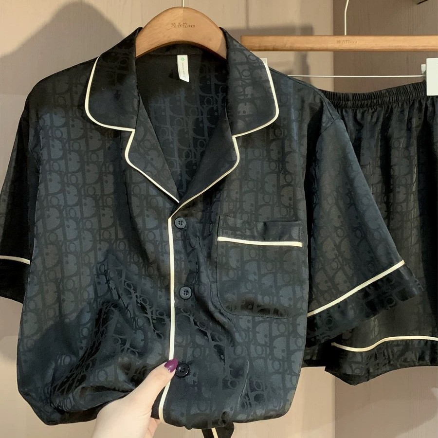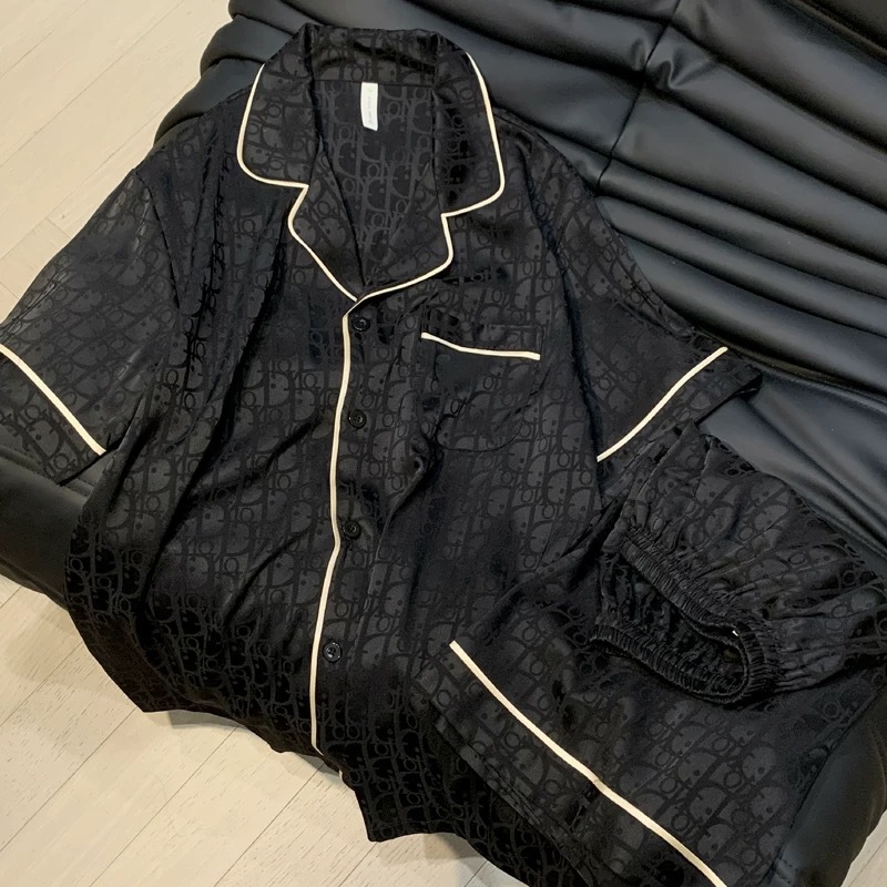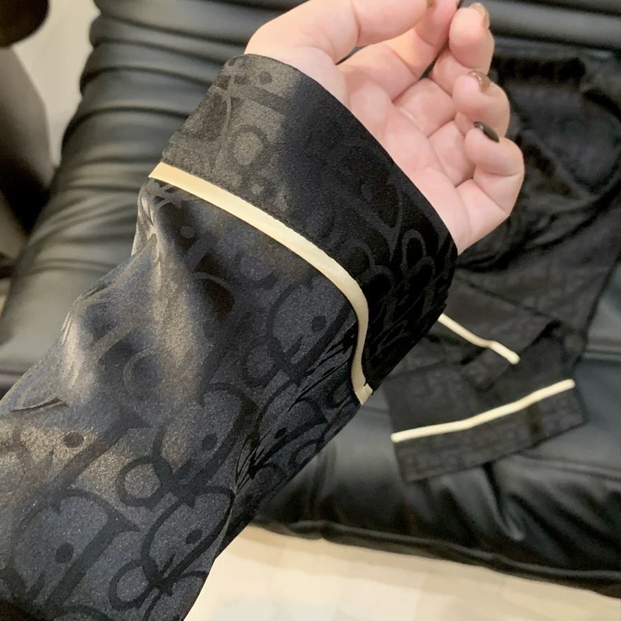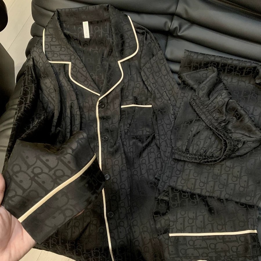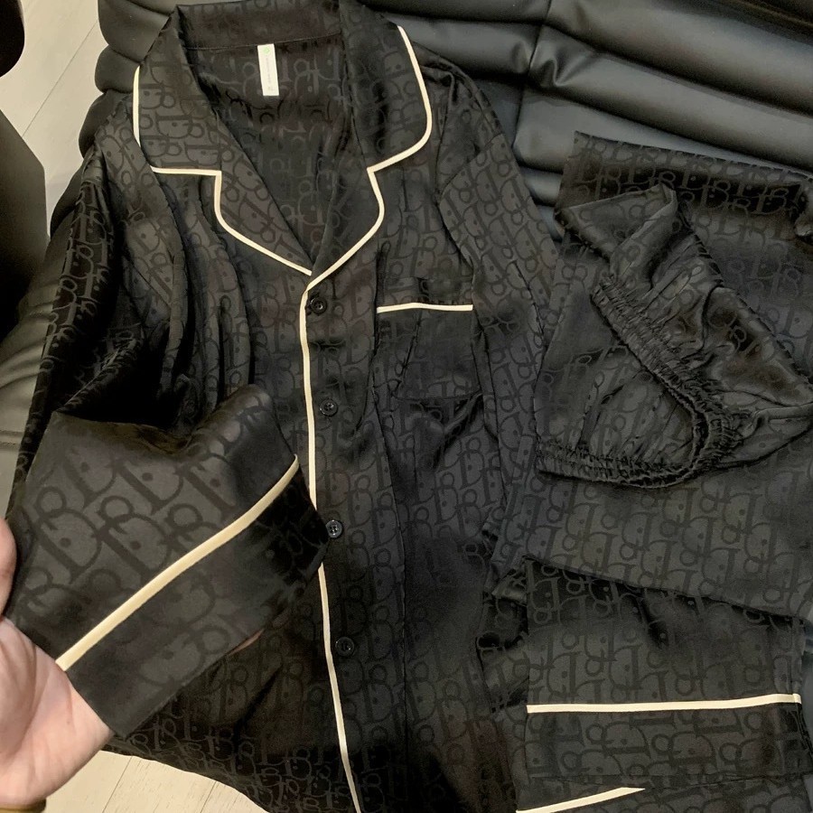 플러스 사이즈 남성 바지 얇은 긴팔 얼음 실크 봄, 가을, 여름 새로운 홈웨어 잠옷 3 피스 세트 실크 스퀘어 칼라