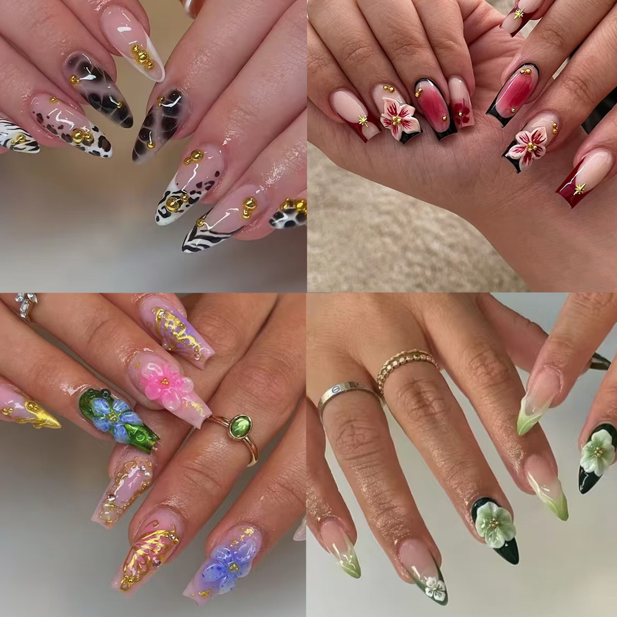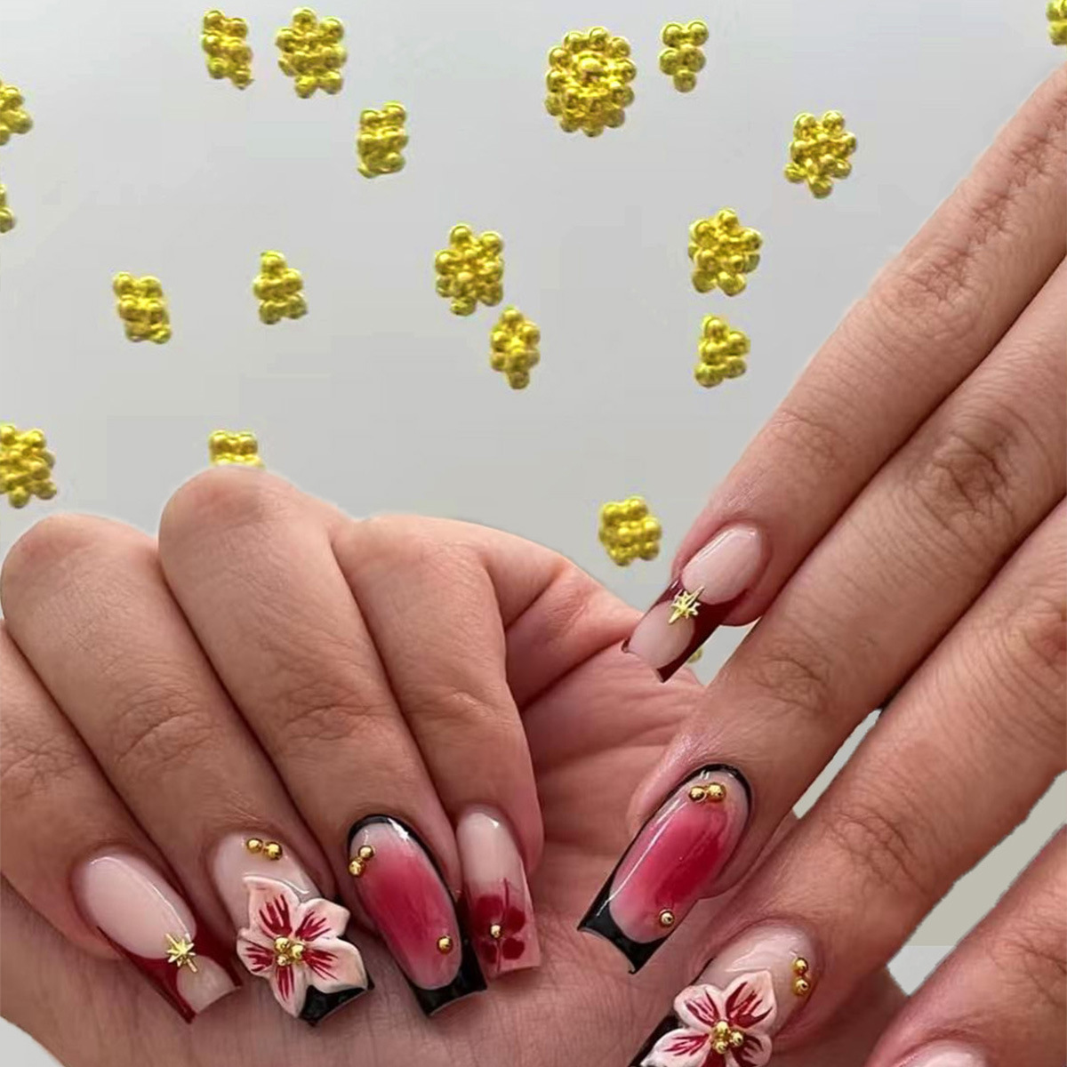 인기 있는 부유한 금 3개의 꽃 네일 아트 액세서리, 절묘하고 다재다능하며 가벼운 럭셔리 스타일의 크고 작은 네일 장식 도매