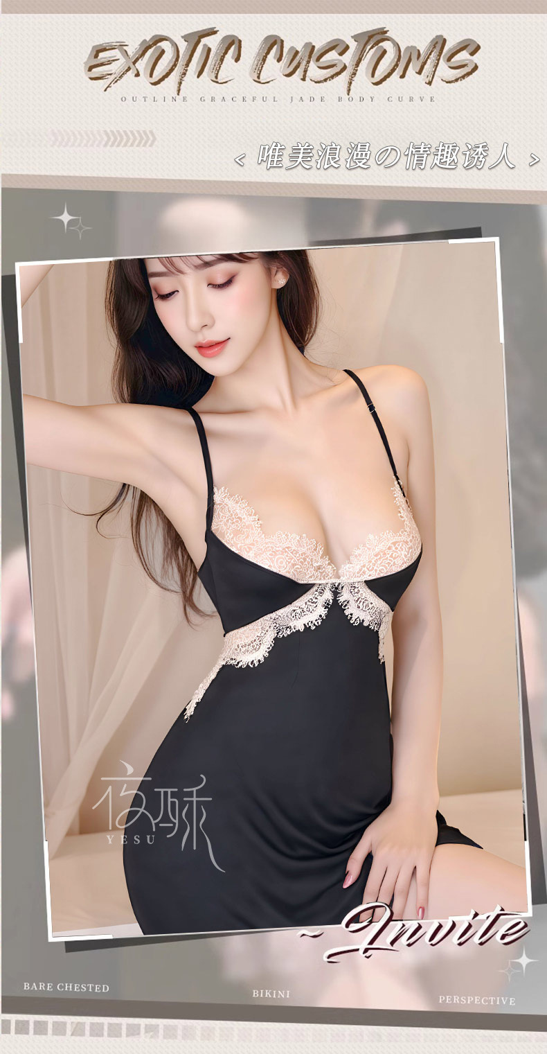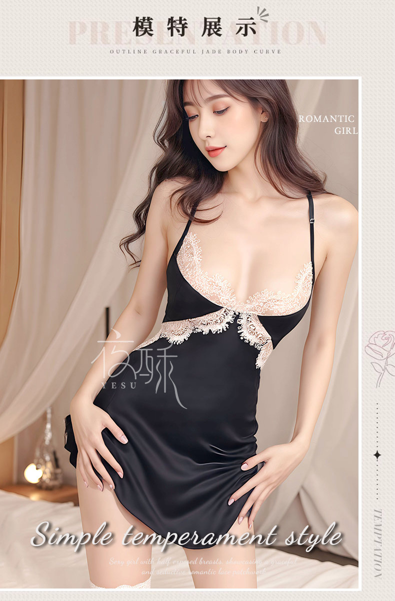 Yecu 섹시한 속옷 섹시한 잠옷 여성의 얇은 얼음 실크 느낌 여성 서스펜더 잠옷 레이스 유혹 드레스 7152