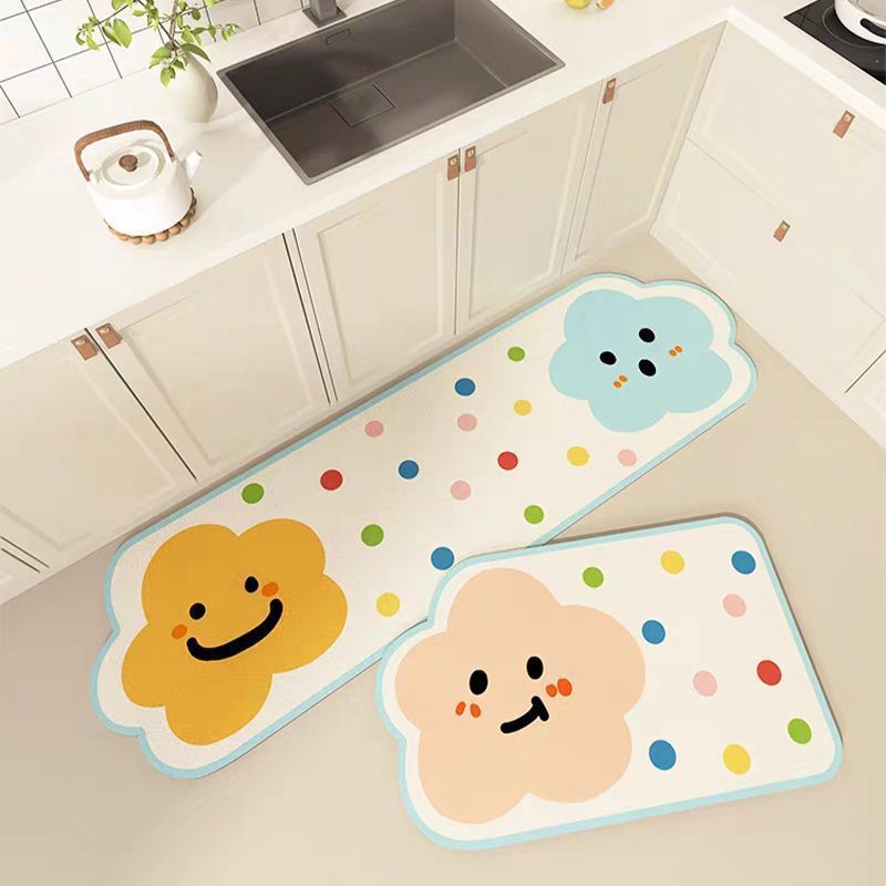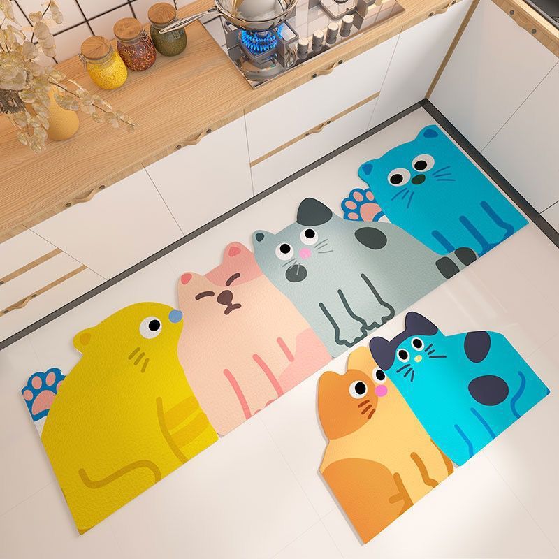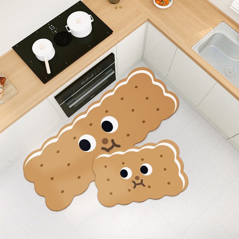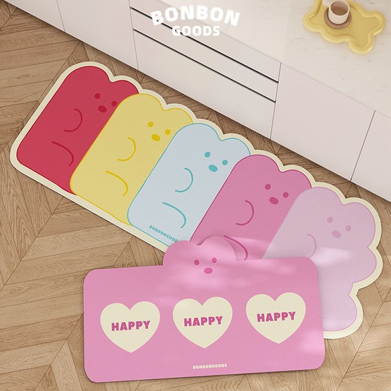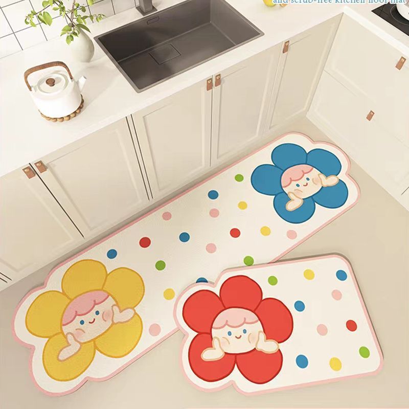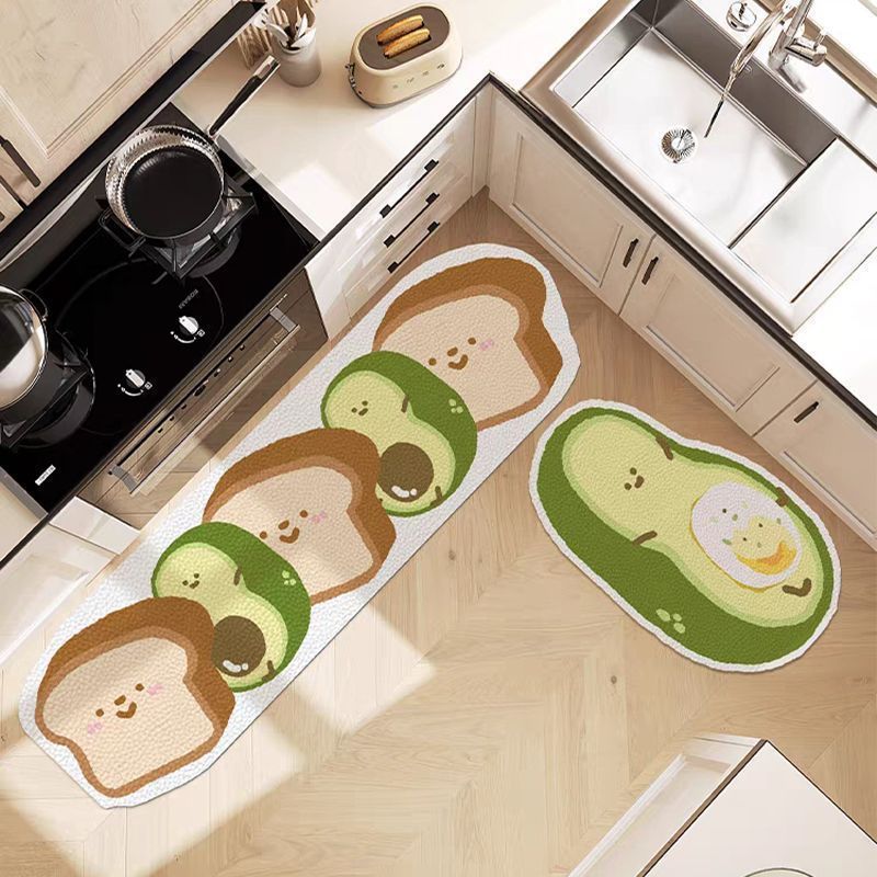 만화 귀여운 도파민 주방 레스토랑 규조토 진흙 바닥 매트 얼룩 방지, 내마모성, 방진 및 흡수성 주방 2피스 세트