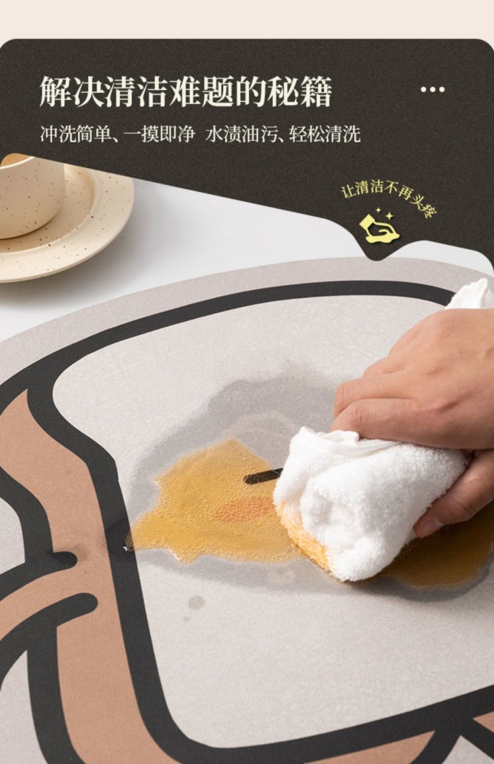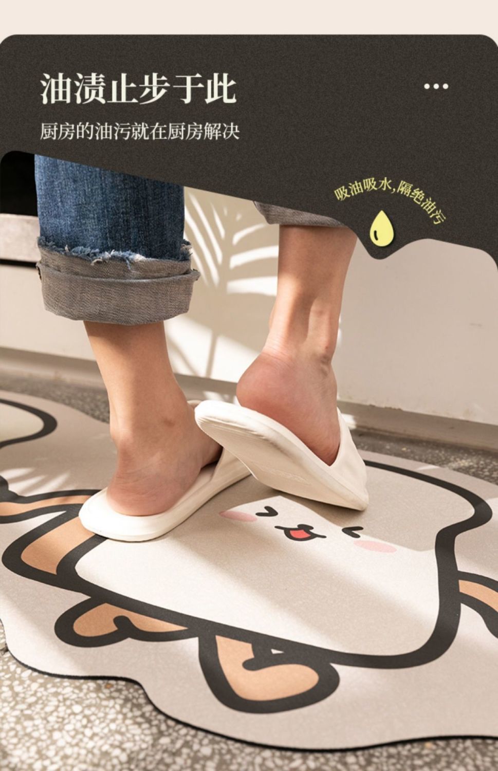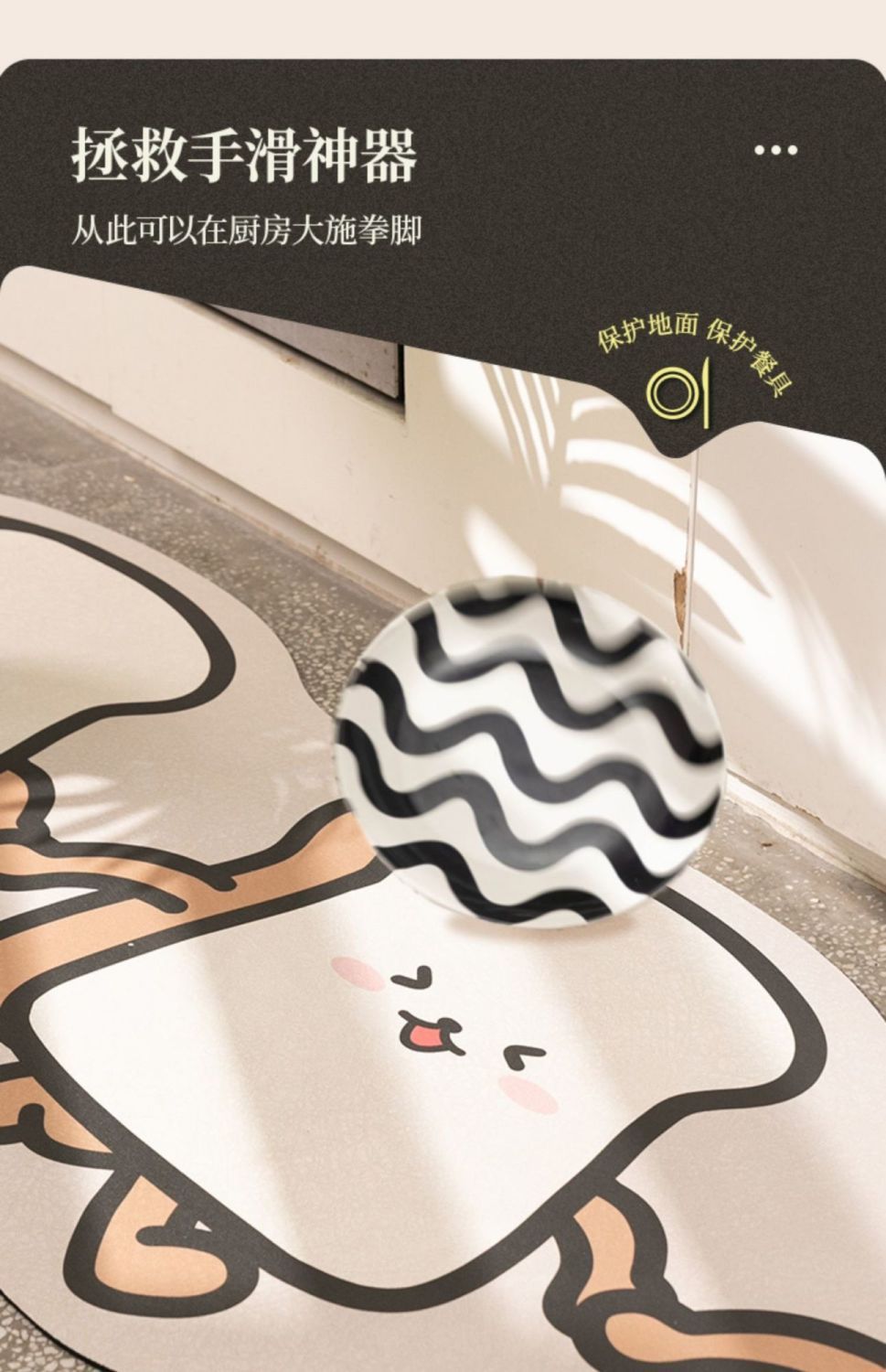 만화 귀여운 도파민 주방 레스토랑 규조토 진흙 바닥 매트 얼룩 방지, 내마모성, 방진 및 흡수성 주방 2피스 세트
