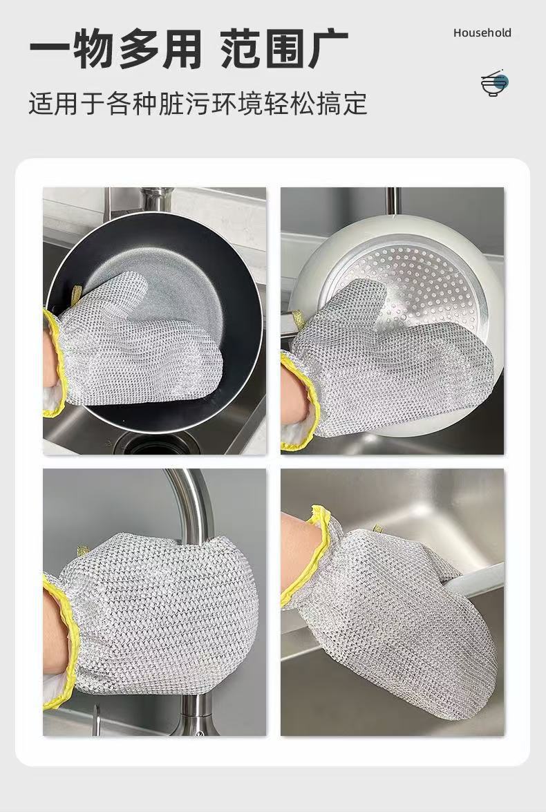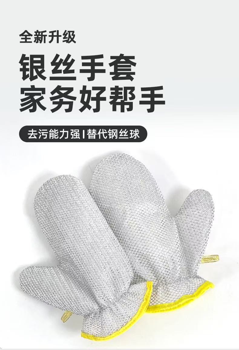 수세미, 가정용 냄비 브러시, 방수 강철 와이어 식기 세척 장갑, 다기능 주방 청소 브러시, 내구성이 뛰어난 은색 천