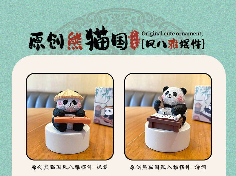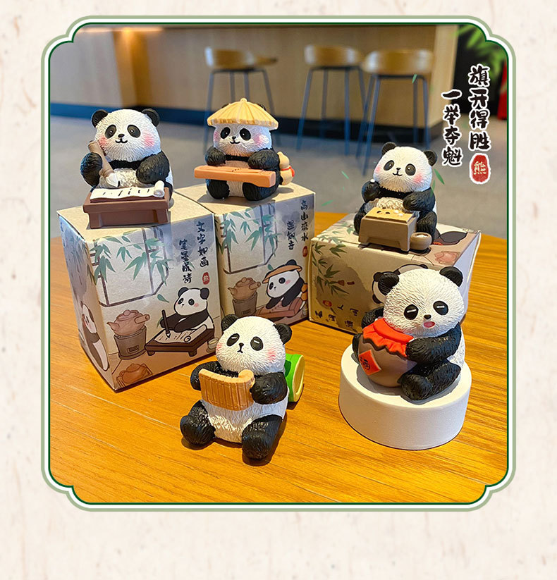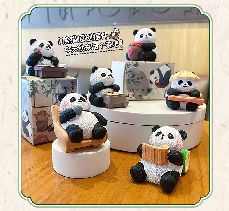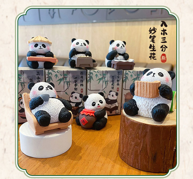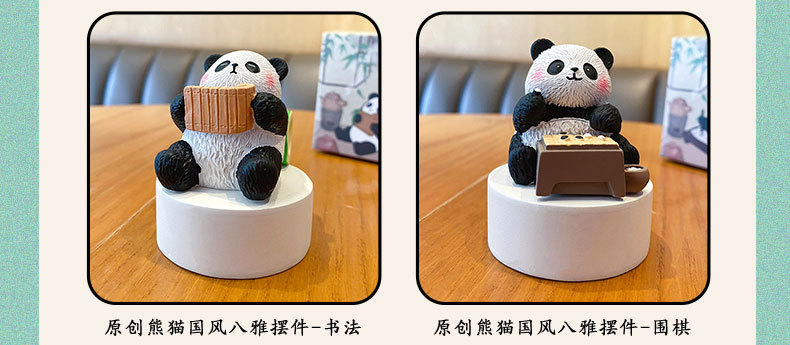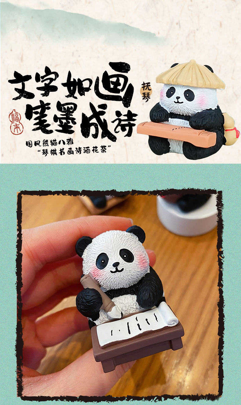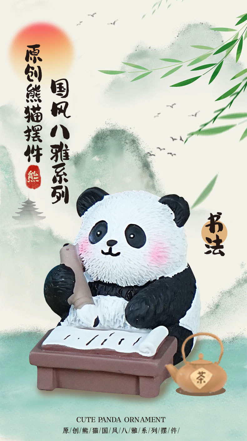 국보 판다 진치 서예 및 그림 작은 장식품 귀여운 작은 장식품 문화 및 창조적 인 선물 데스크탑 장식 수지 공예