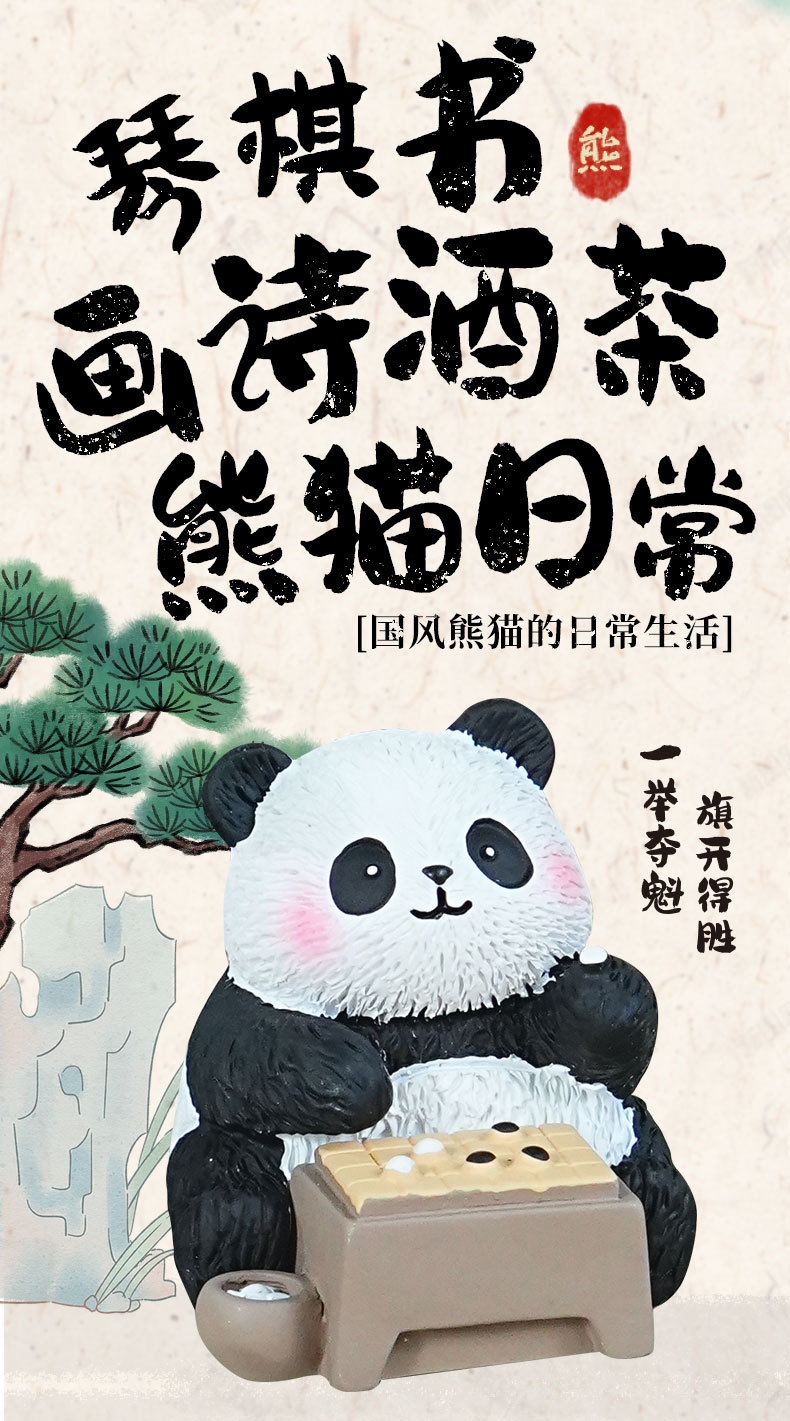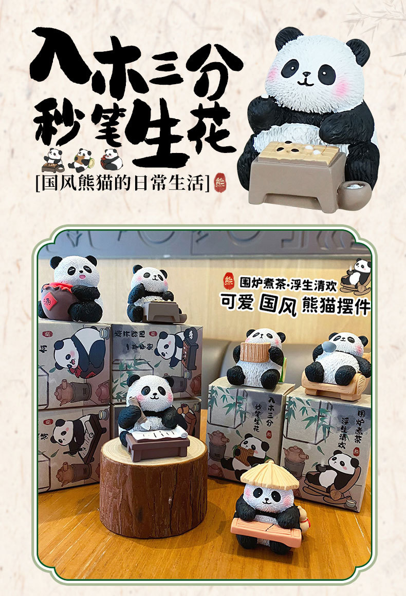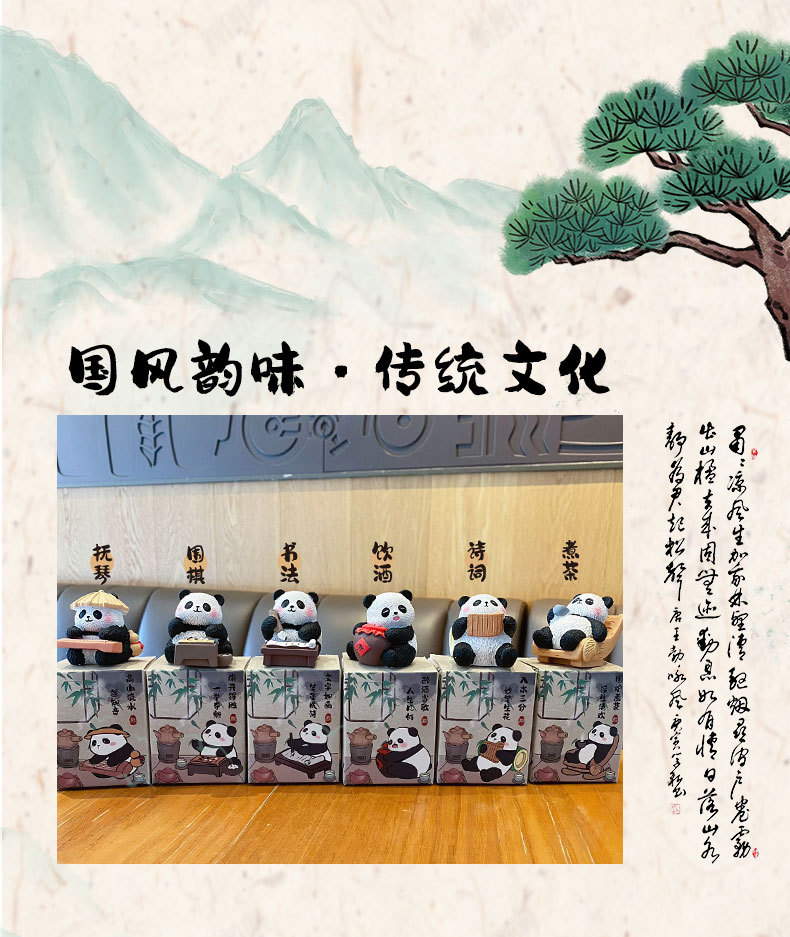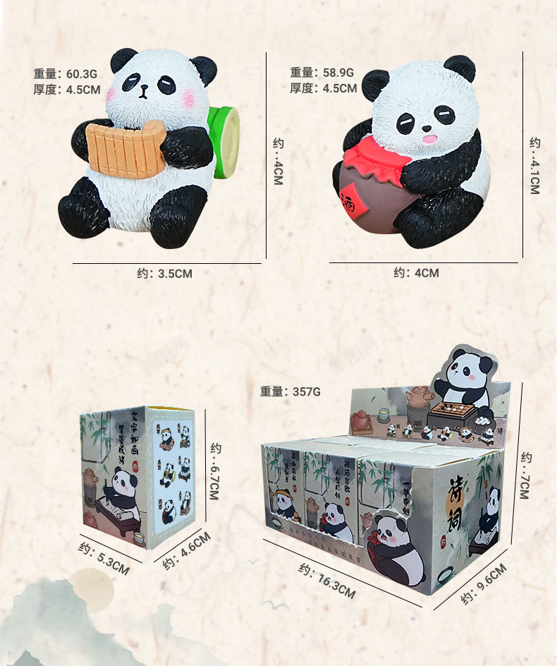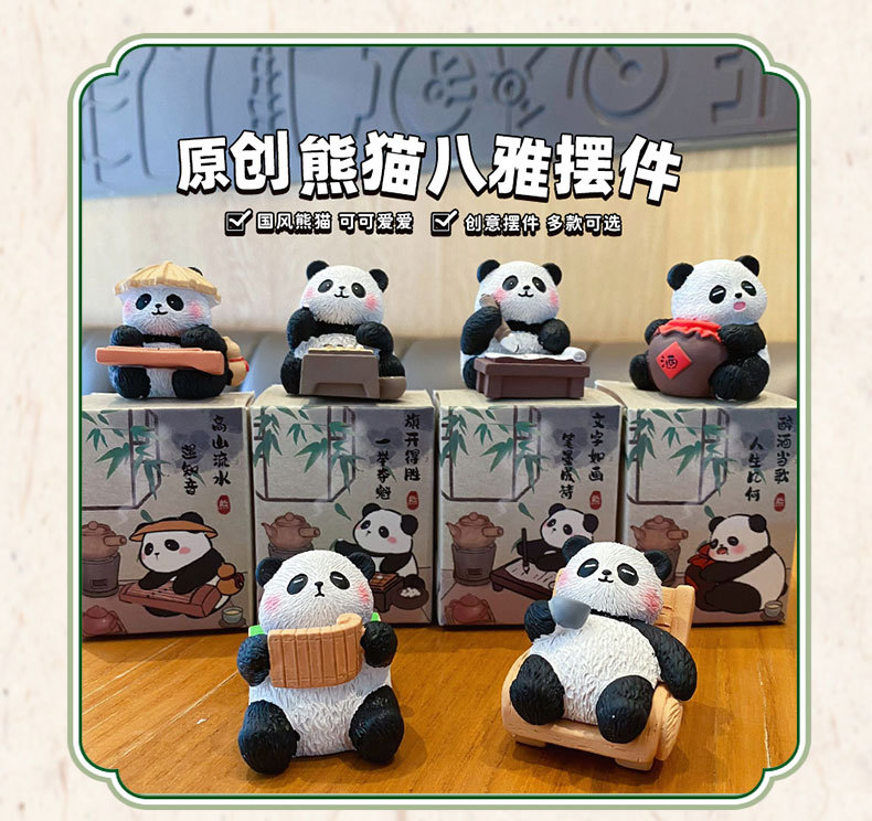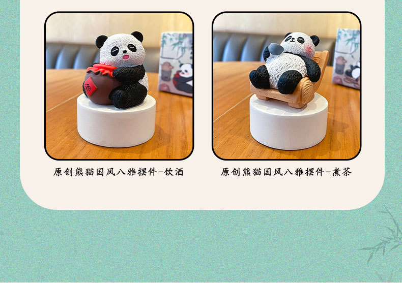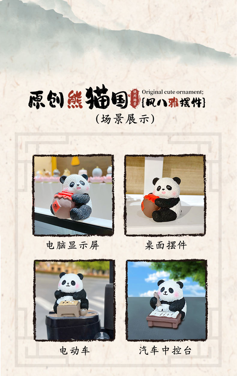 국보 판다 진치 서예 및 그림 작은 장식품 귀여운 작은 장식품 문화 및 창조적 인 선물 데스크탑 장식 수지 공예