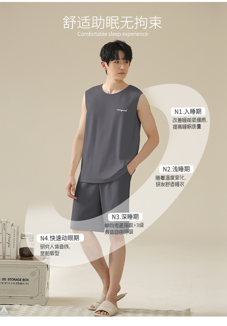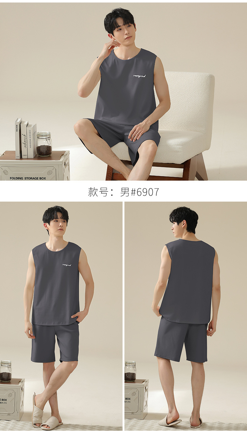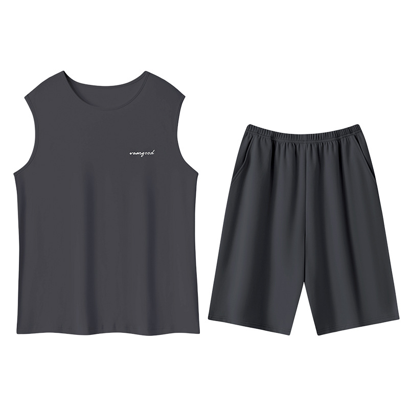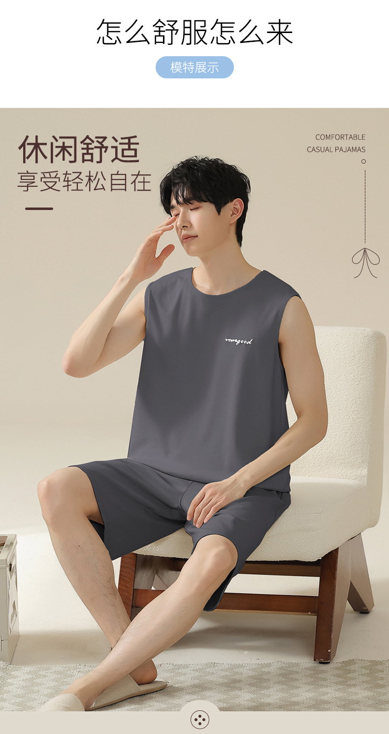 순면 잠옷 남성용 민소매 조끼 반바지 남성용 100kg 플러스 사이즈 150kg 여름용 얇은 홈웨어