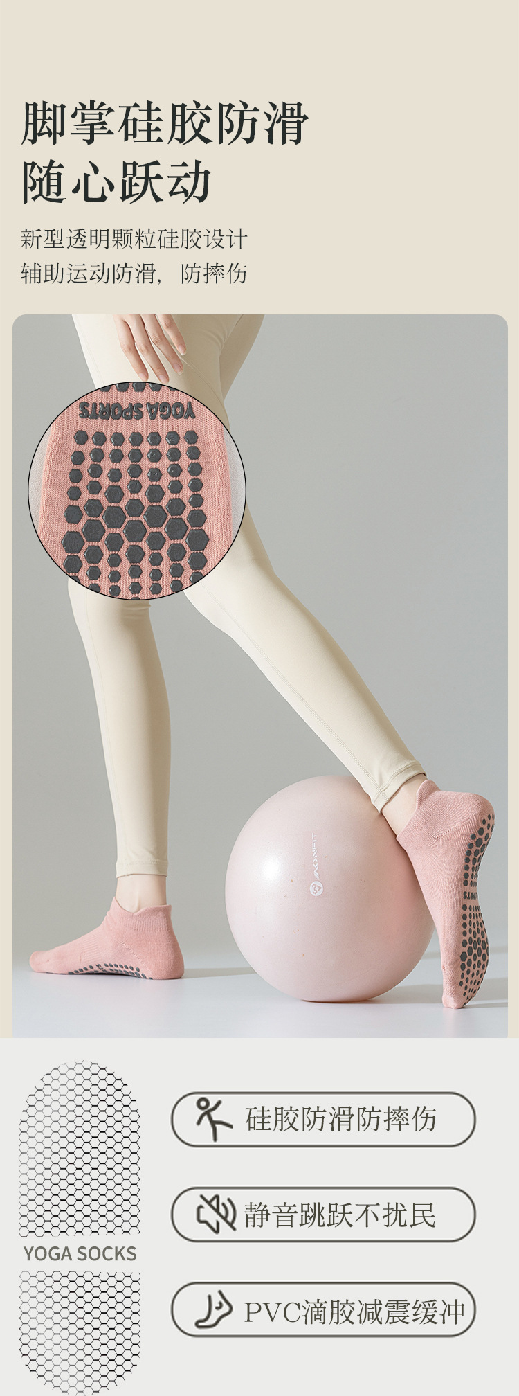[드롭 배송] 순수 코튼 짧은 튜브 요가 양말 실리콘 미끄럼 방지 양말 여성 실내 피트니스 필라테스 바닥 양말