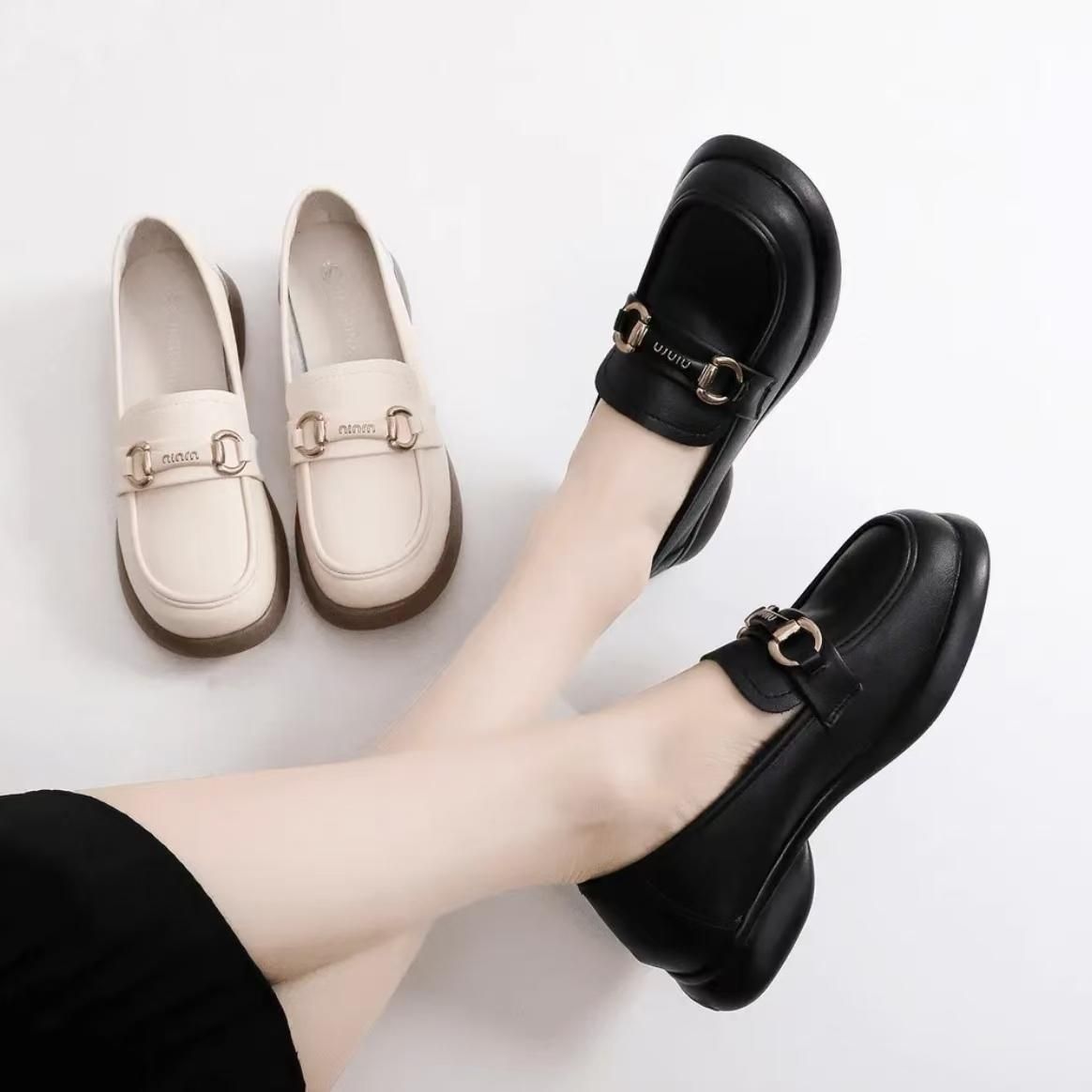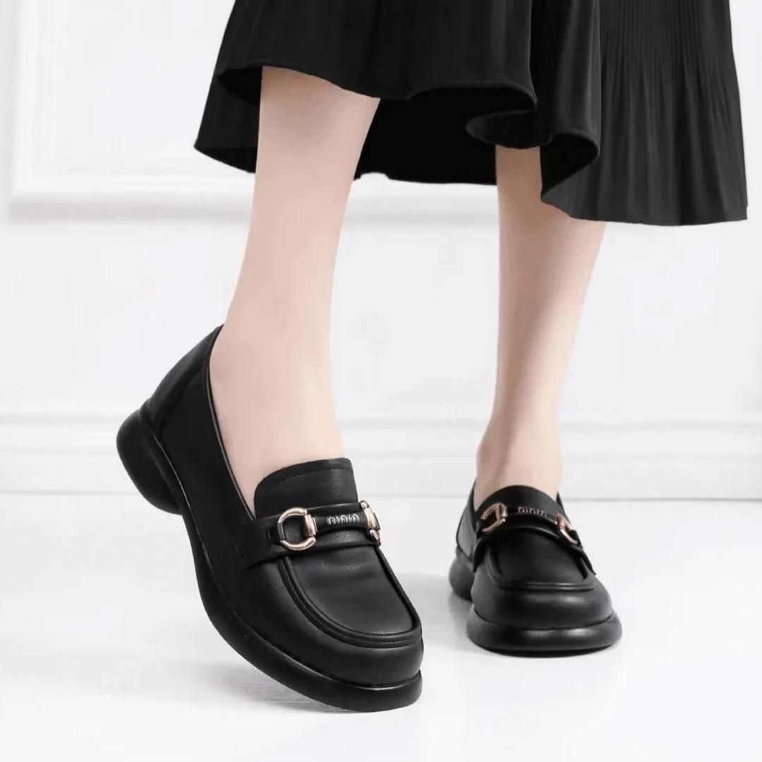 2025 [브레이크코드] 여성화, 활용도 높은 봄, 가을 영국풍 로퍼, 두꺼운 굽, 부드러운 밑창, 로우힐 로퍼