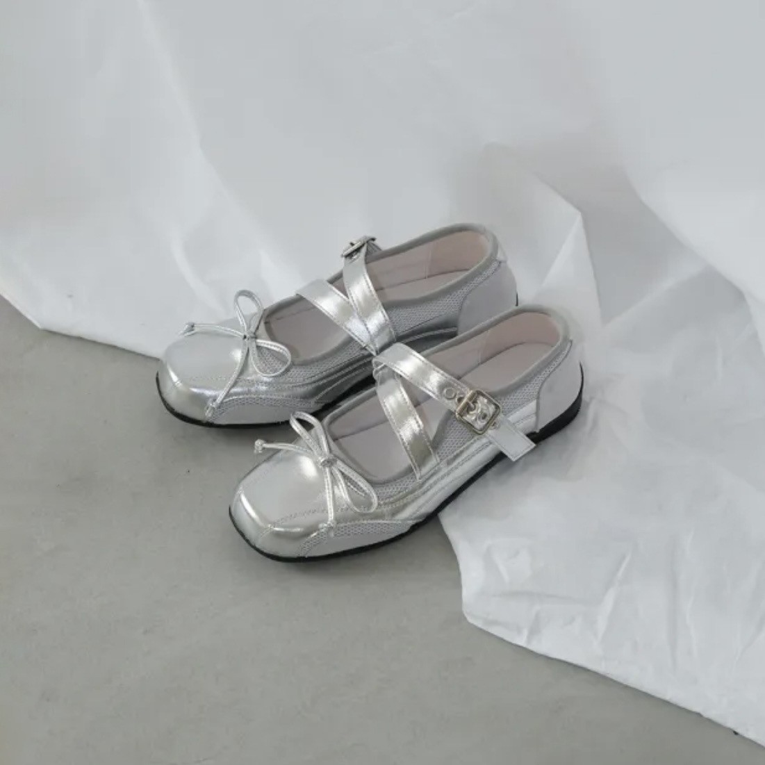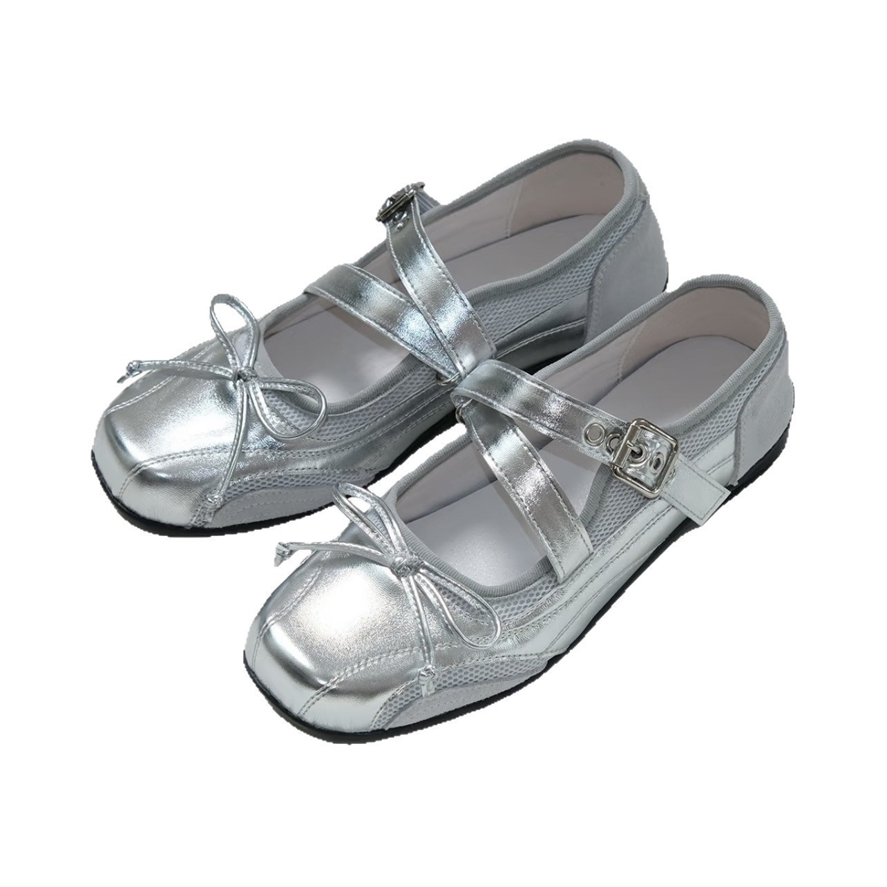 프랑스 스타일 활 발레 신발 여성의 여름 통기성 실버 스퀘어 발가락 얕은 메쉬 신발
