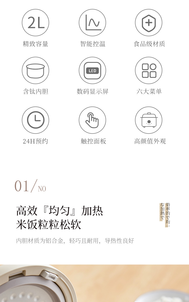 중국 대리점 일본 vdada 스마트 티타늄 라이너 2L 밥솥