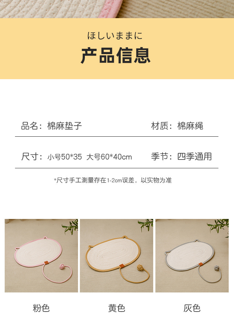 면로프 고양이 스크래치 방지 매트, 스크래치 방지 및 내마모성 개 매트, 매트, 수면 매트, 일체형 애완동물 매트, 고양이 둥지, 고양이 장난감, 스크래치 방지
