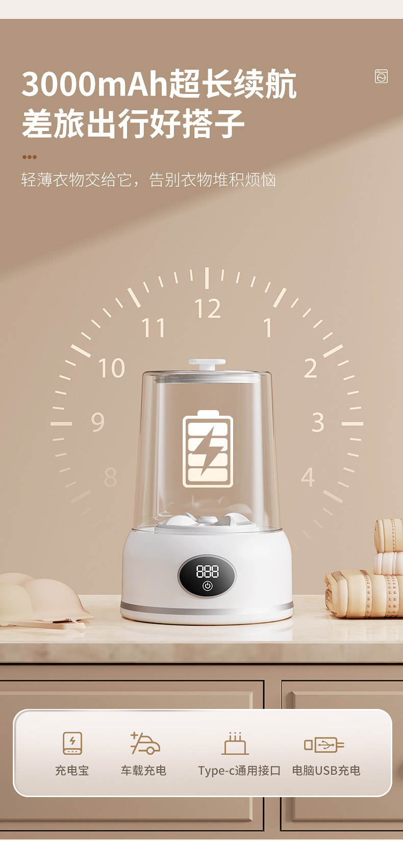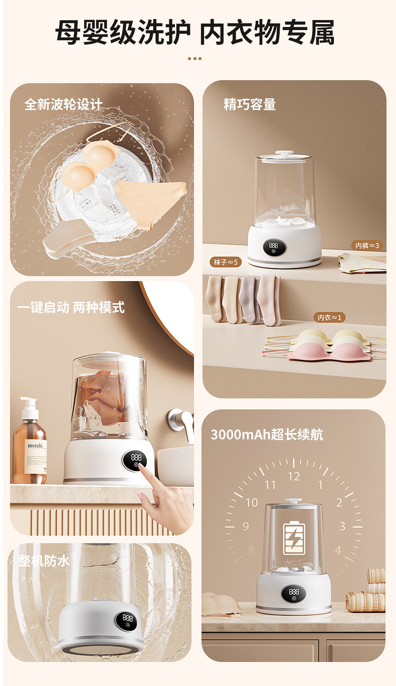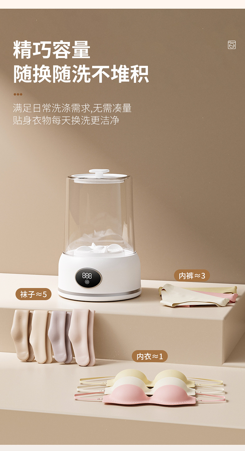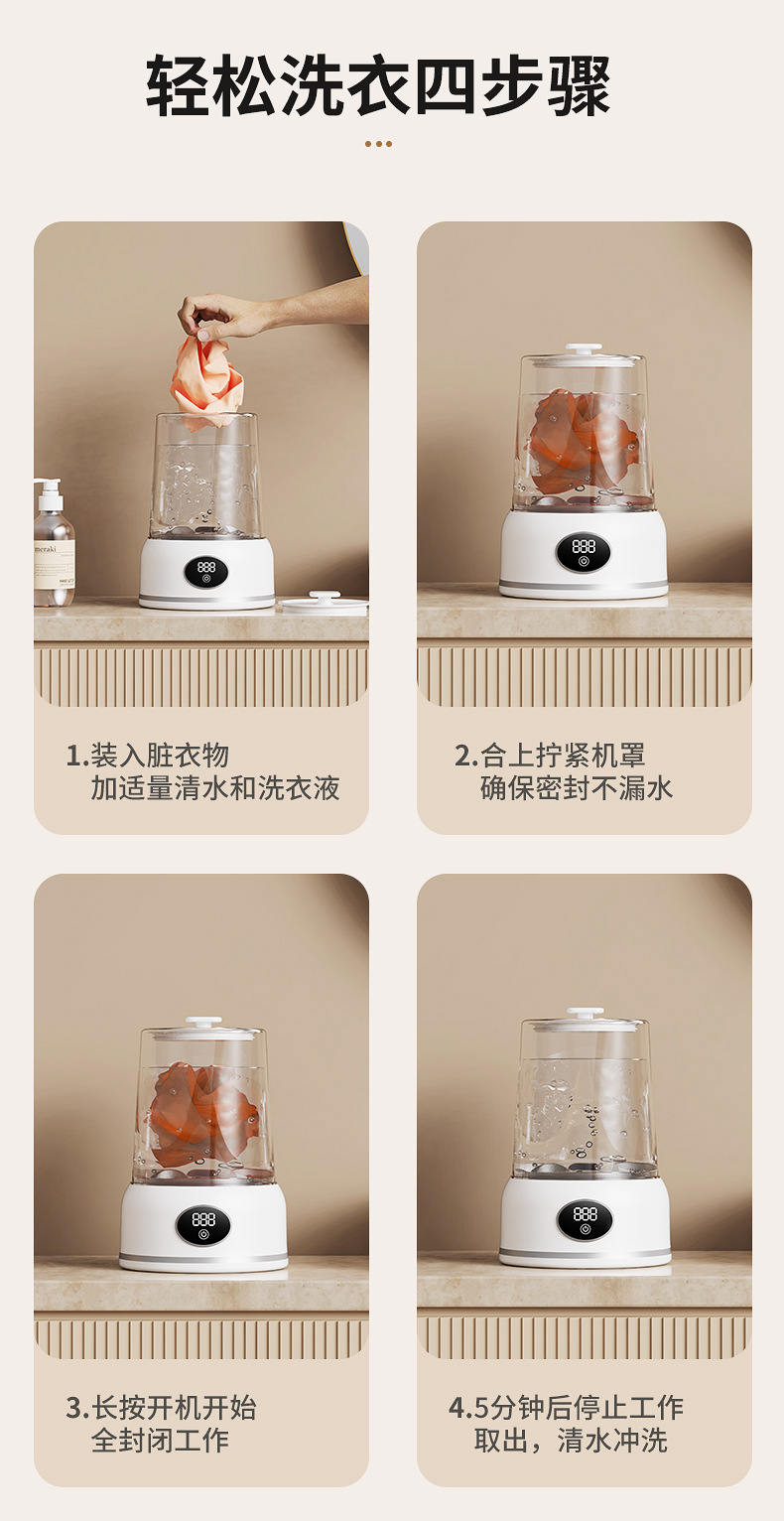 속옷 및 양말 청소용 휴대용 미니 세탁기 무선 충전 소형 완전 자동 세탁 컵