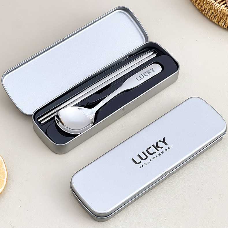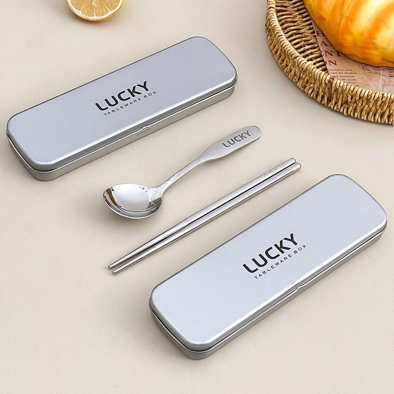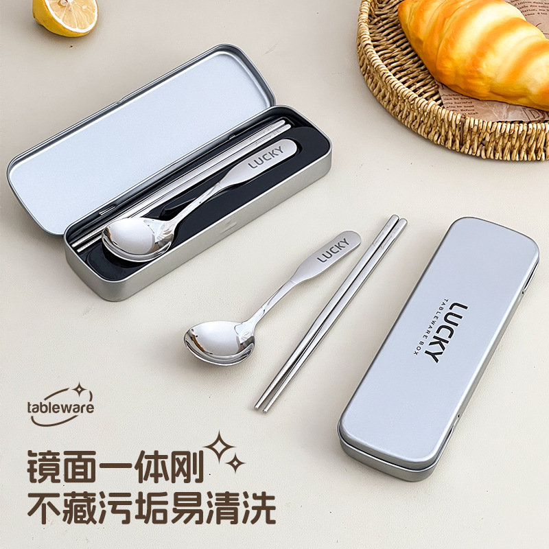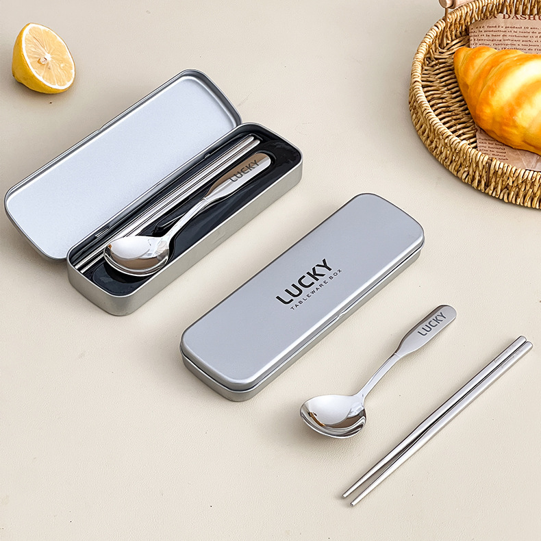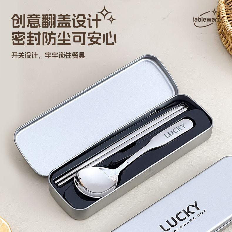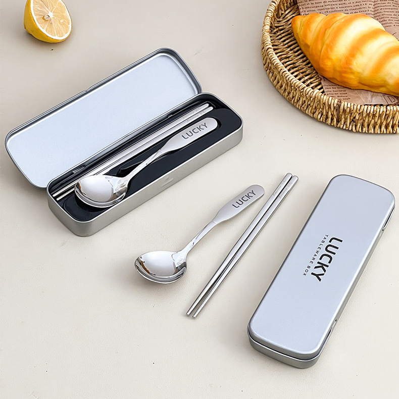 창조적 인 316 음소거 보관 여행 식기 학생 휴대용 숟가락 젓가락 3 조각 야외 휴대용 식기