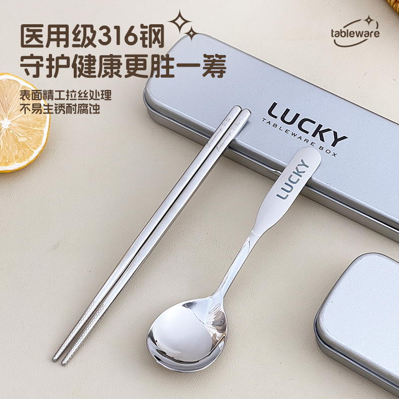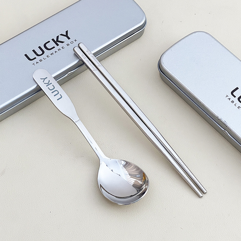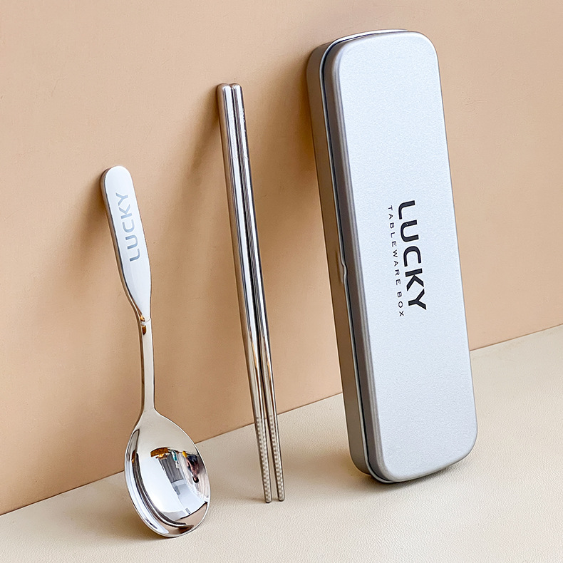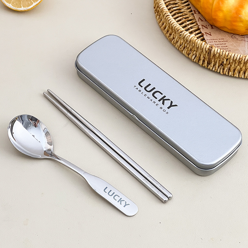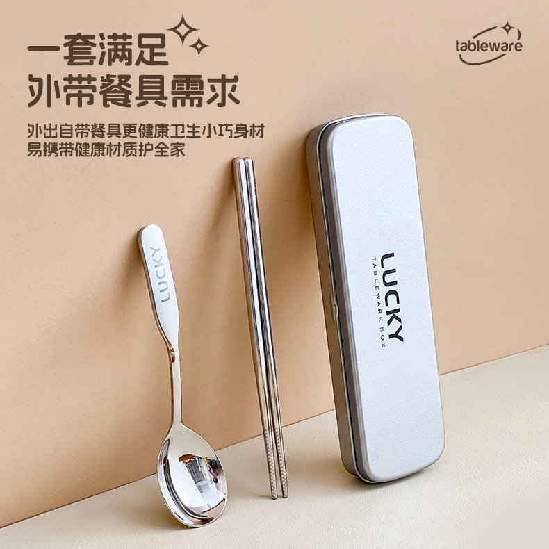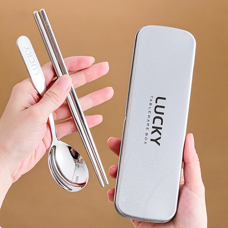 창조적 인 316 음소거 보관 여행 식기 학생 휴대용 숟가락 젓가락 3 조각 야외 휴대용 식기