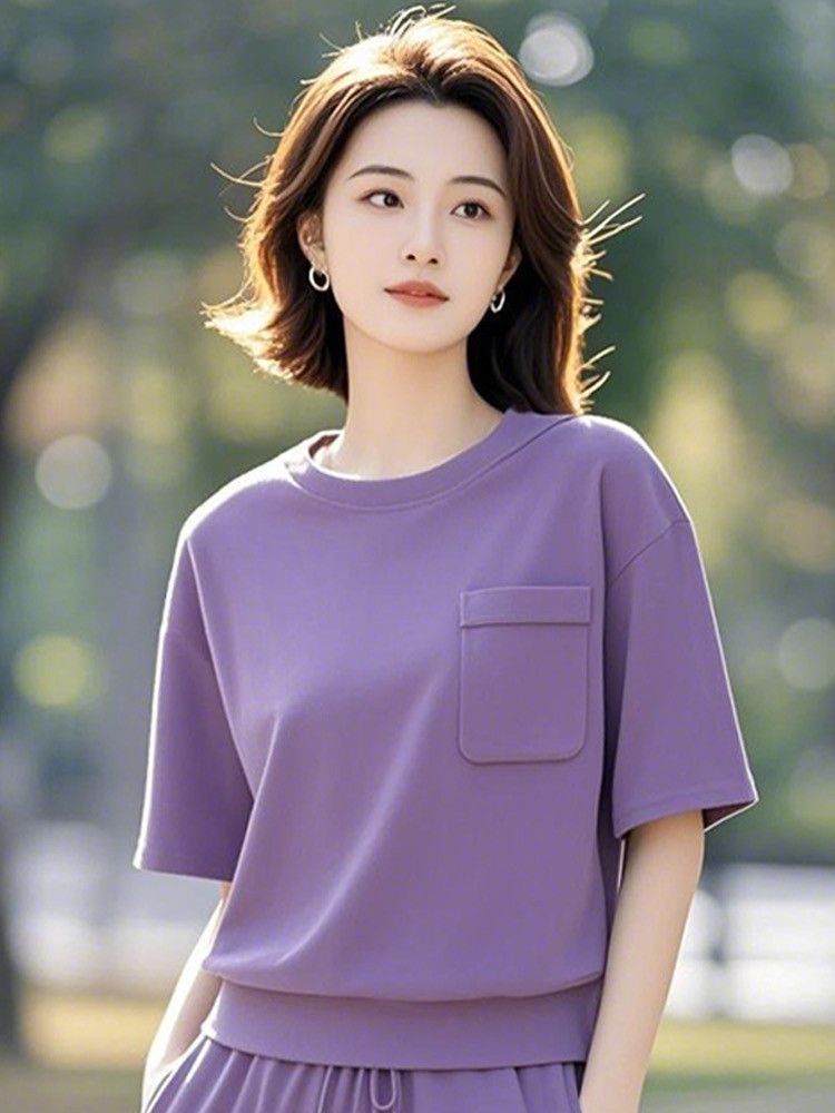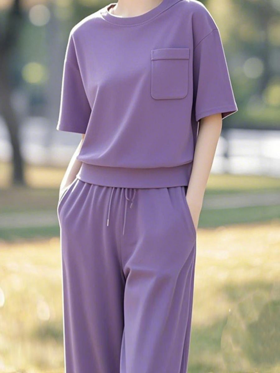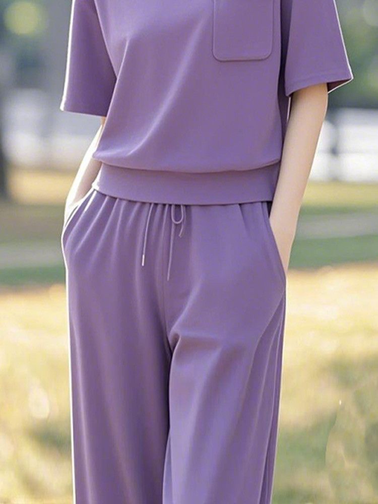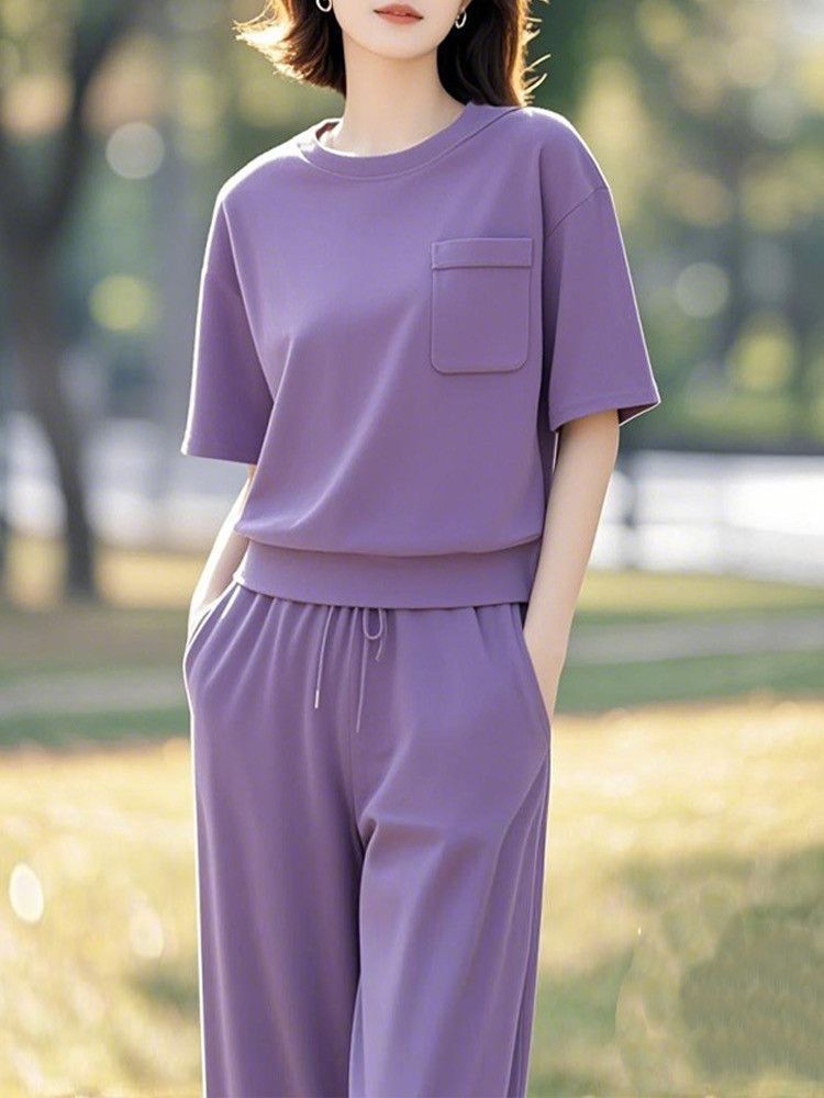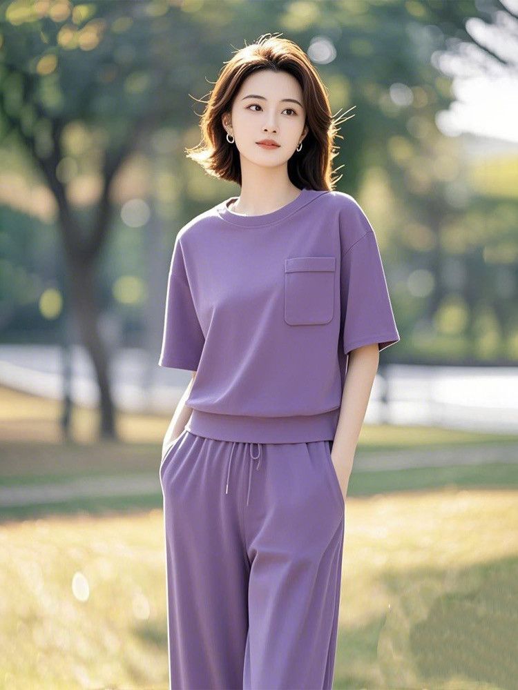 여름 신작 한국 여성 캐주얼 다목적 스포츠 정장 루즈한 반팔 티셔츠 와이드 팬츠 투피스 트렌디 세트