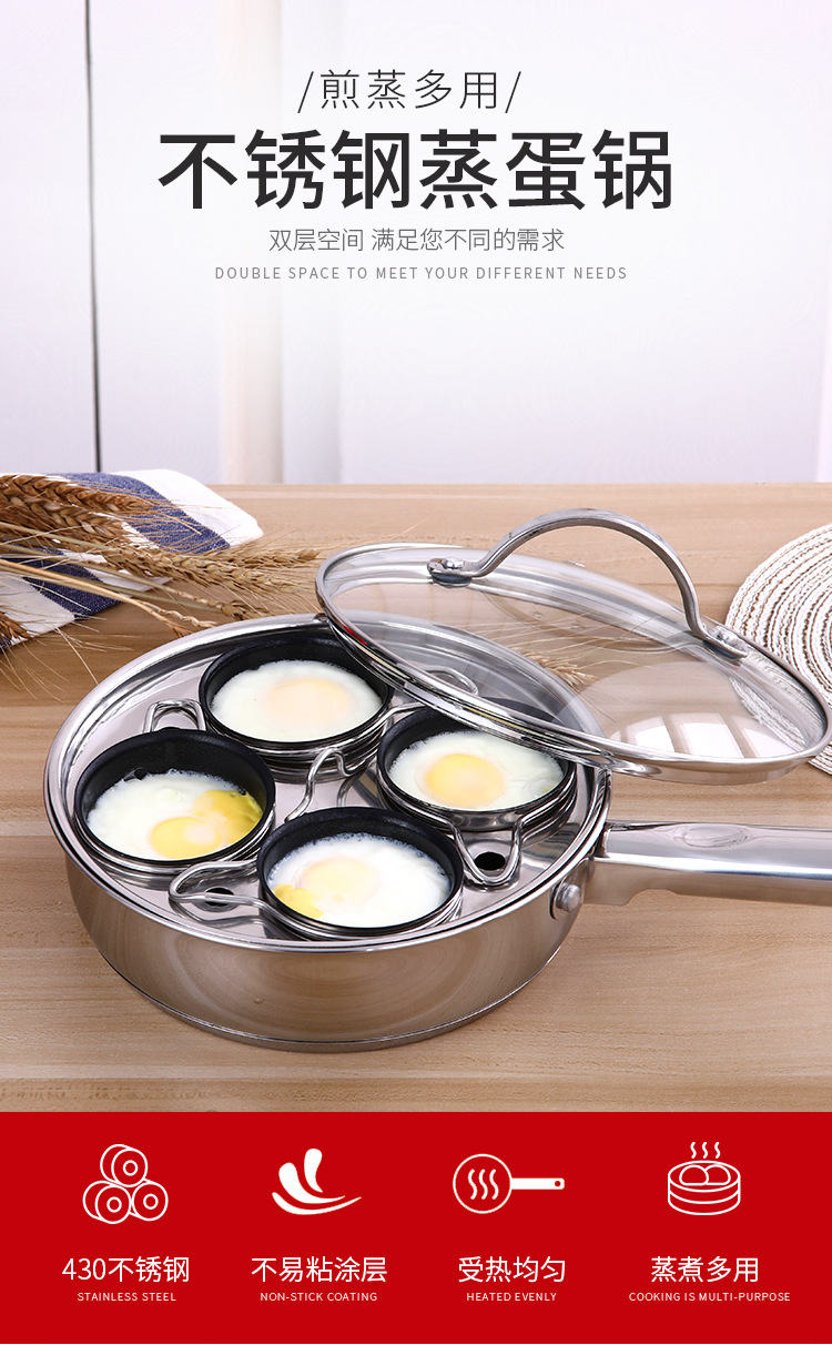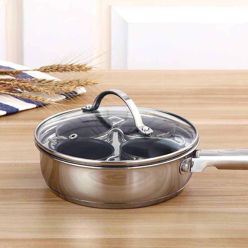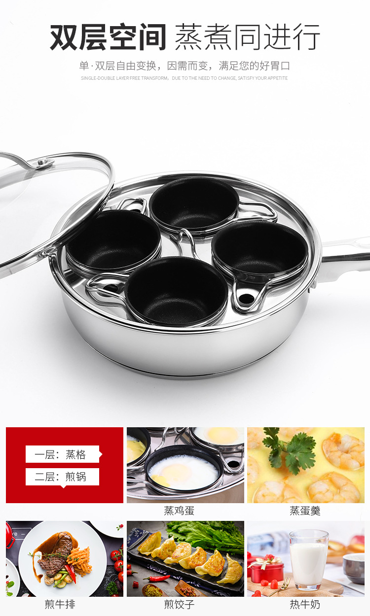 304 스테인레스 스틸 계란 증기선 다기능 프라이팬 비 스틱 팬 아침 식사 팬 더블 바닥 두꺼운 크로스 보드의 최적 선택