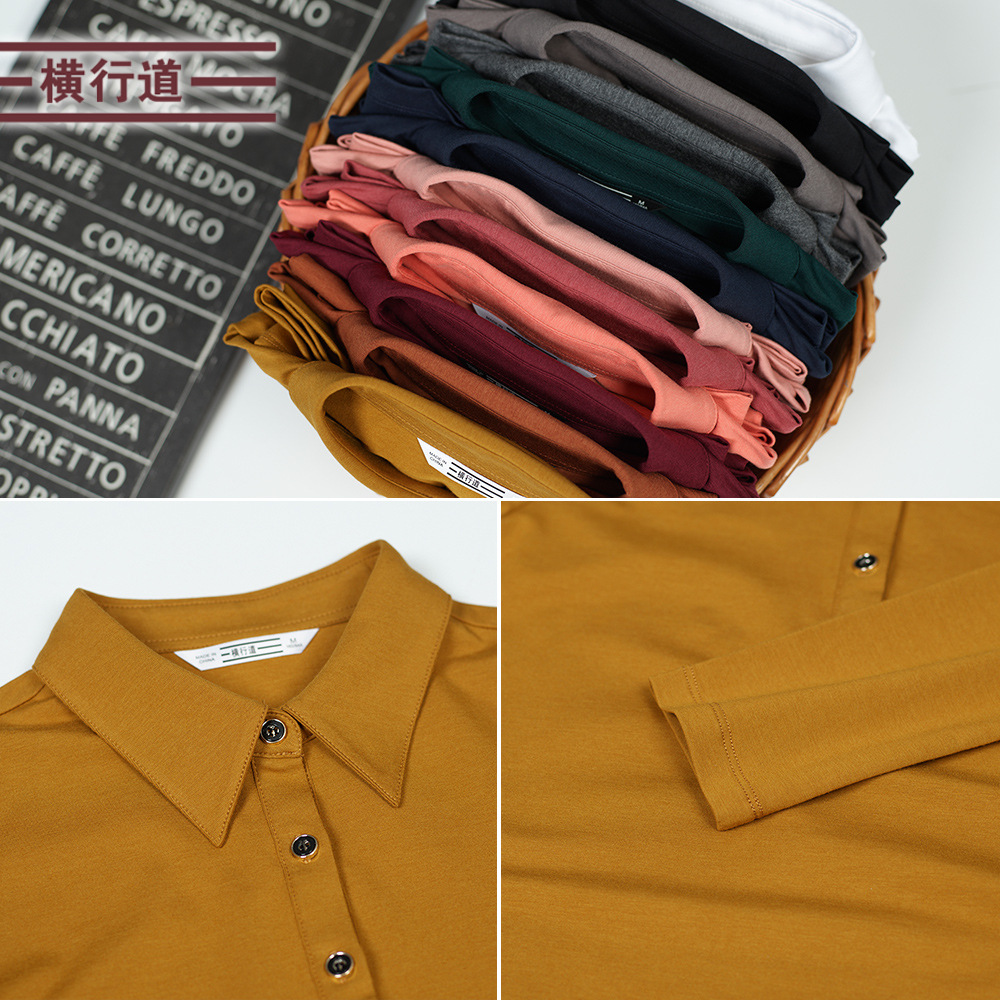 2025 가을 신작 셔츠 칼라 바닥 셔츠 티셔츠 긴팔 탑 심플 솔리드 컬러 전문 의류 탑 작업복 여성