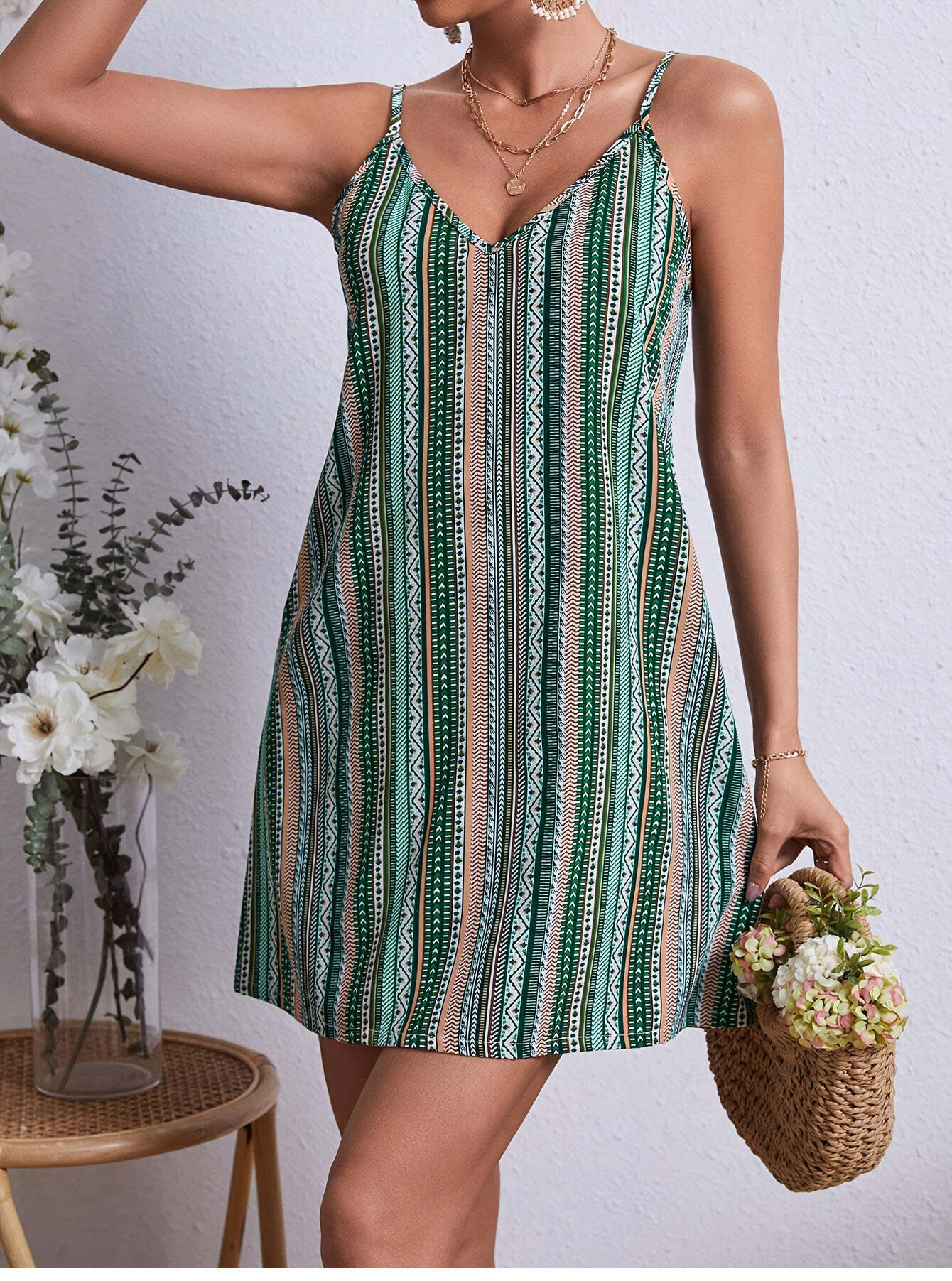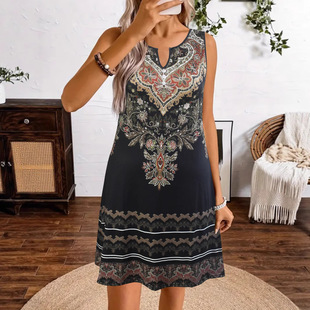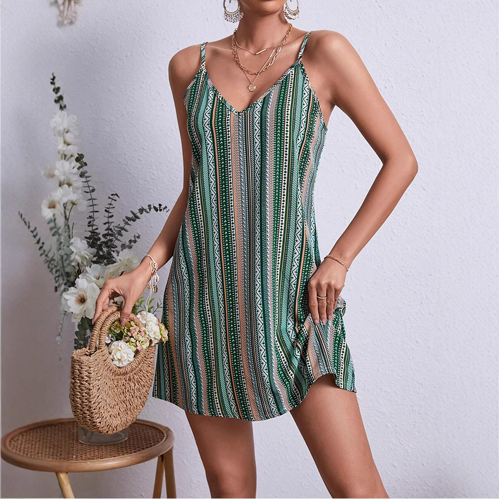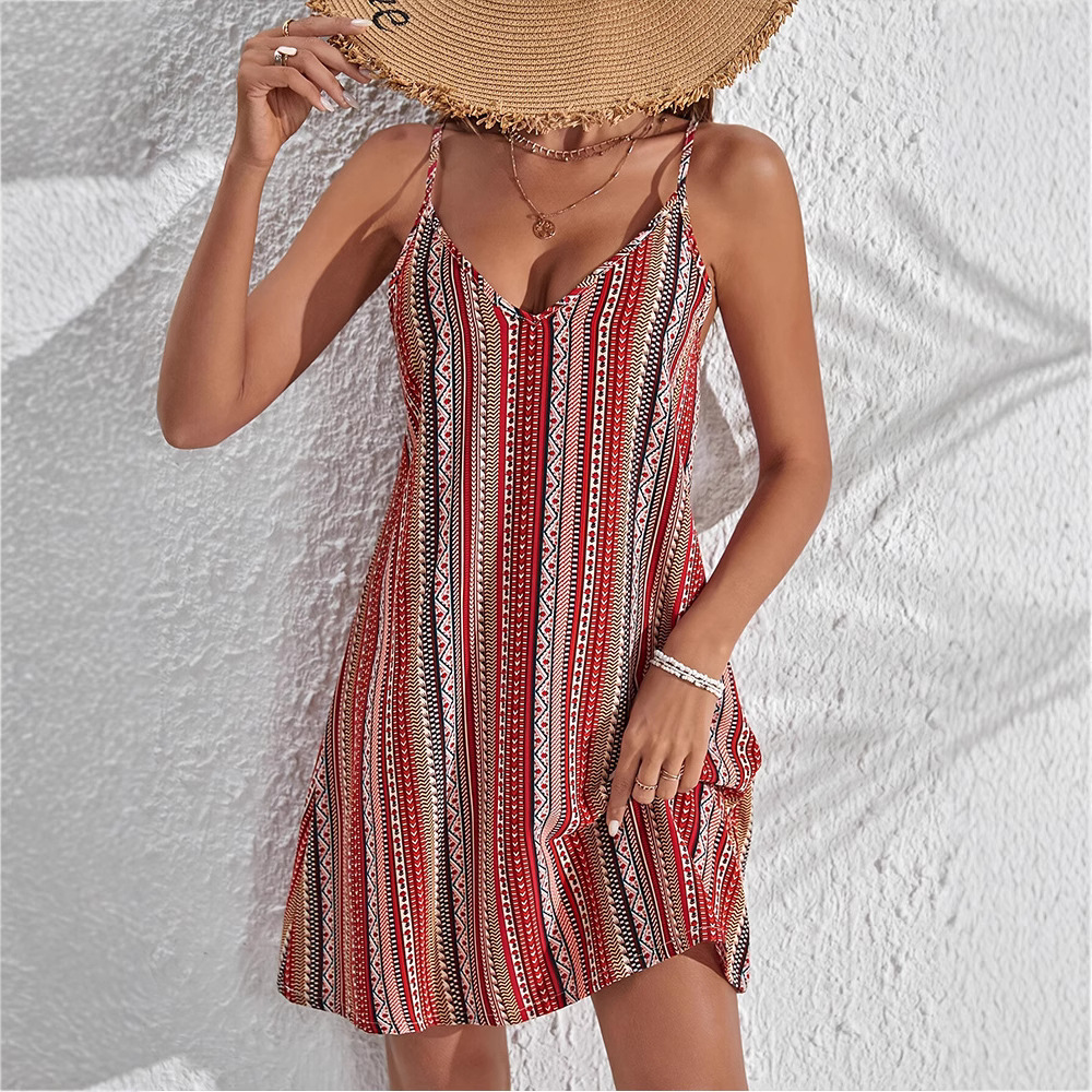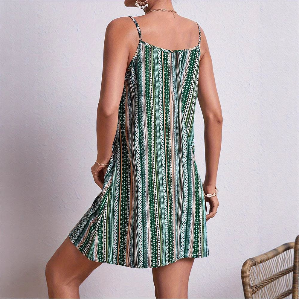 민족풍 루즈핏 멜빵 미디 드레스, 여성용 비치 드레스, 2026년 여름 해변 휴가 드레스, 백리스 휴가 스타일