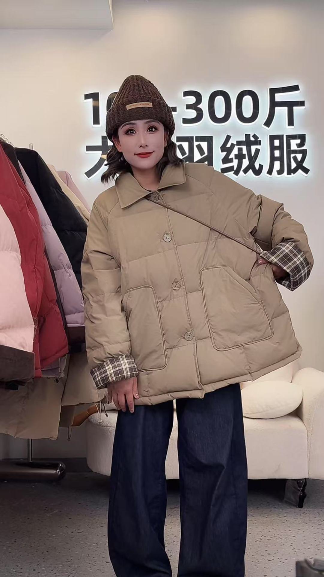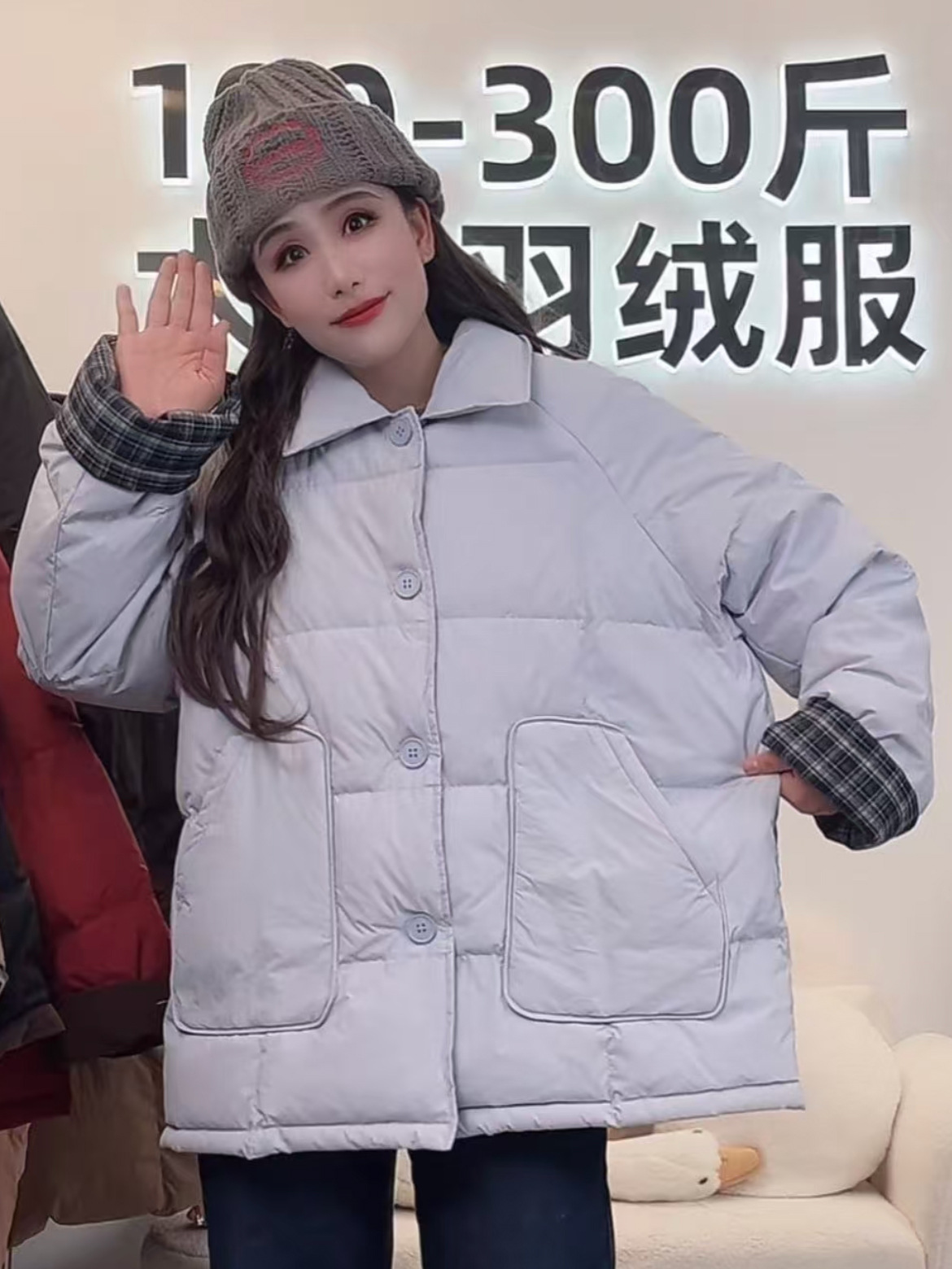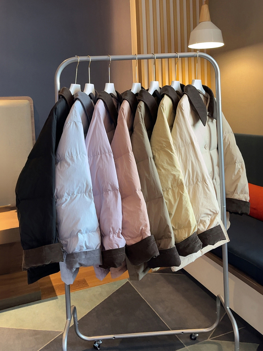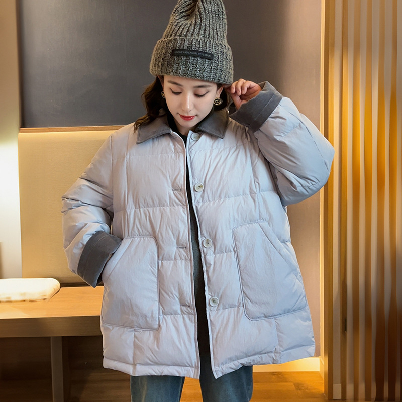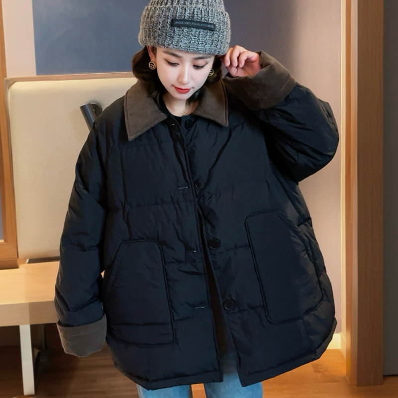 플러스 사이즈 다운 재킷 여성 100kg 코듀로이 스티치 패션 외국 스타일 화이트 오리 다운 따뜻한 가을 겨울 새 코트