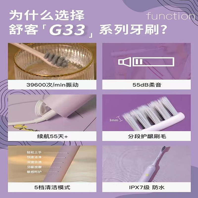 Shuke Shuke G33 소닉 전기 칫솔 남성과 여성 커플 성인 학생 소프트 헤어 자동 충전식 정품