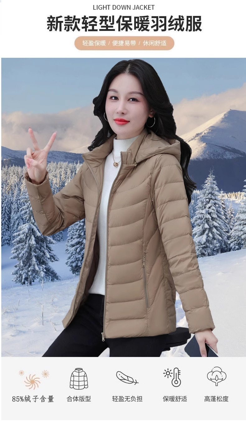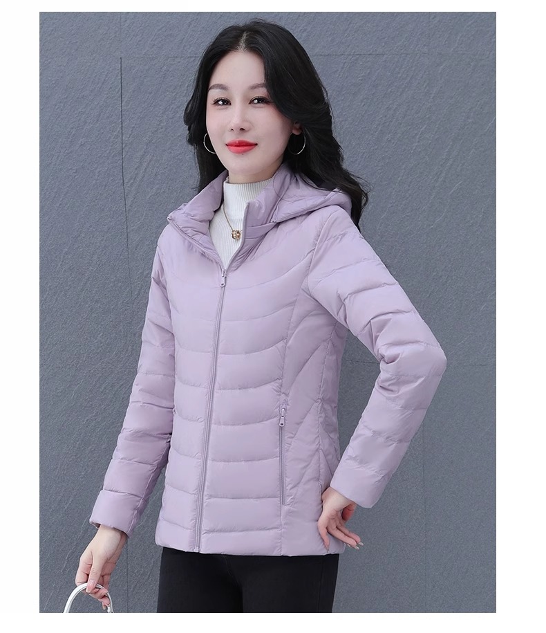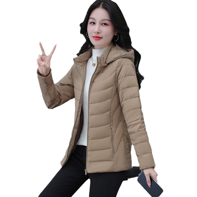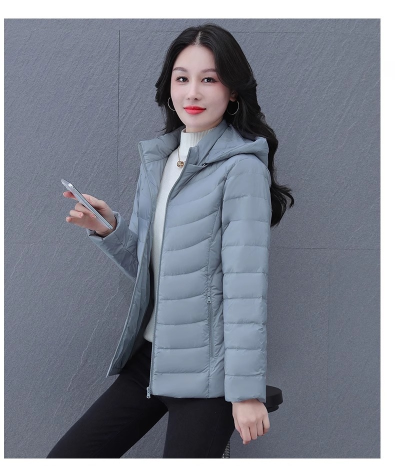 여성을 위한 고급 짧은 다운 재킷, 가볍고 얇은 겨울 2024 새로운 스타일, 가볍고 다재다능한 여성용 후드가 있는 얇은 겨울 재킷