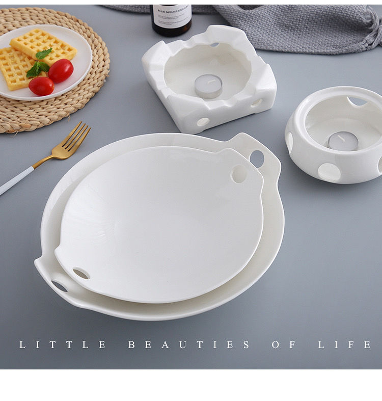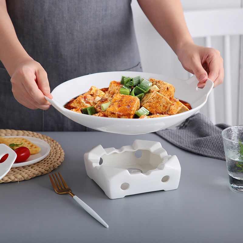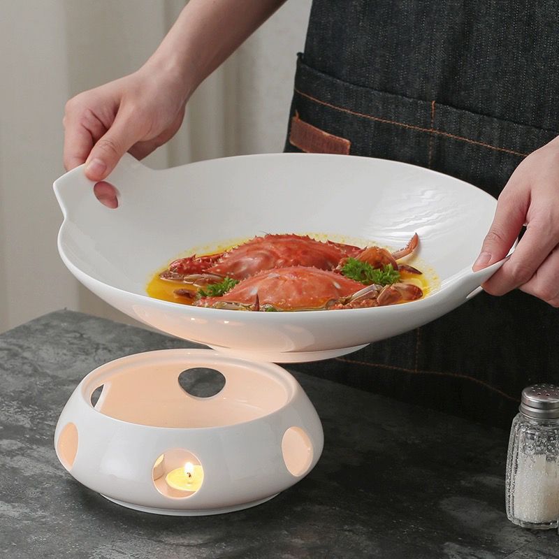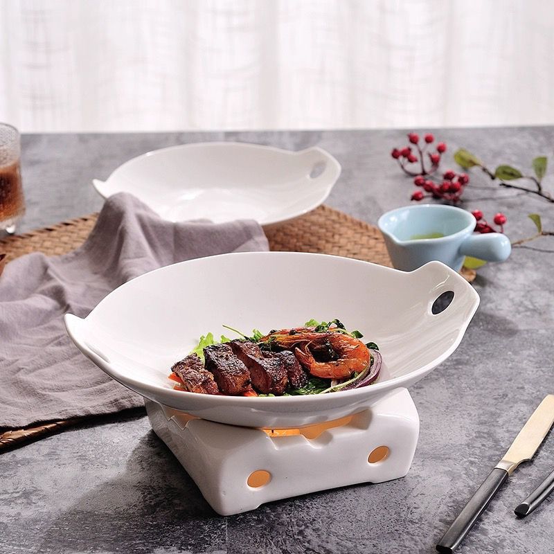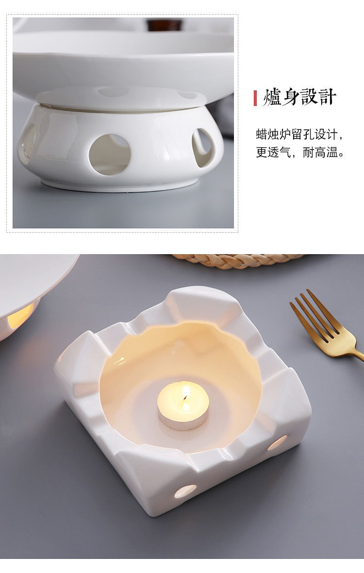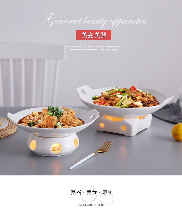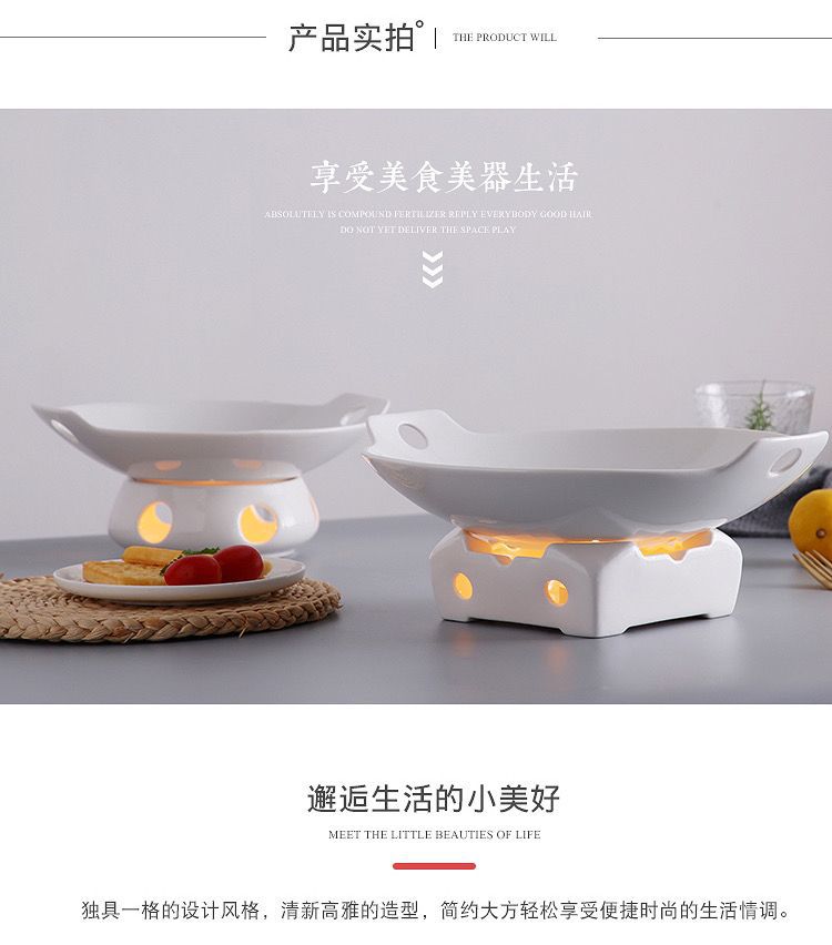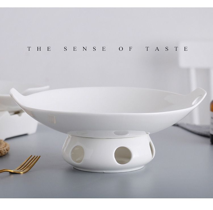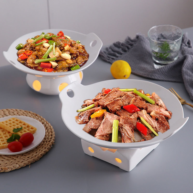 가열 스탠드가 있는 창의적인 도자기 냄비, 샐러드 접시, 쓰촨 요리 냄비, 이중 손잡이 식기