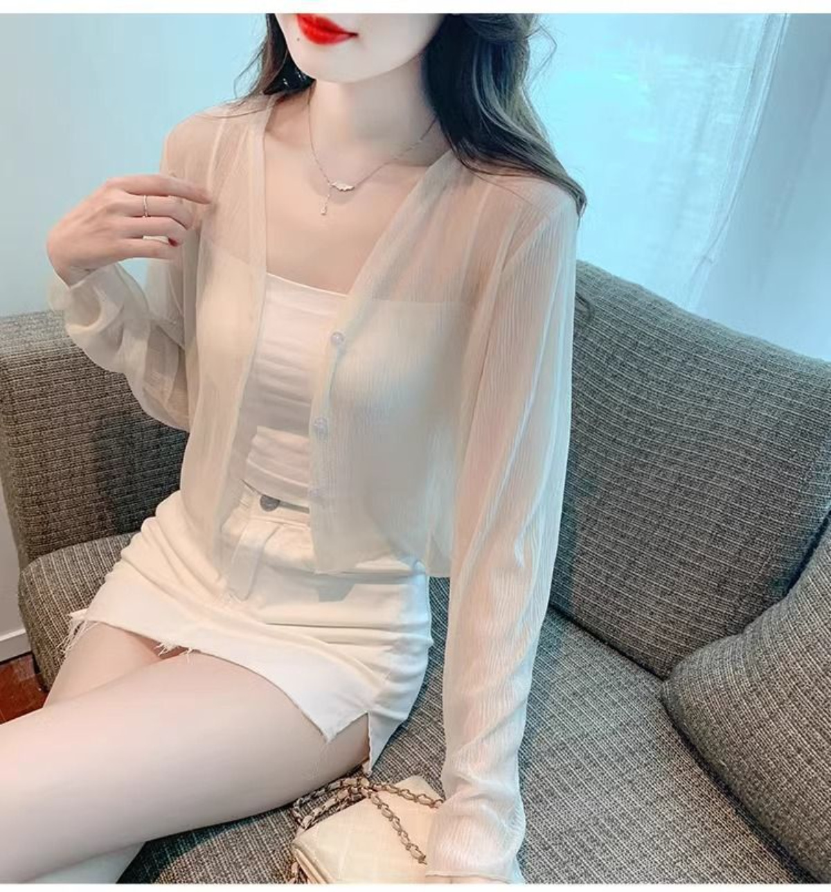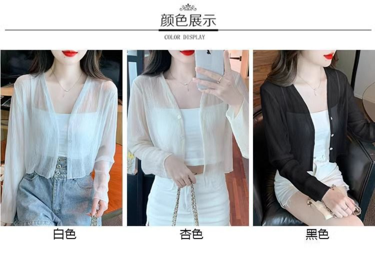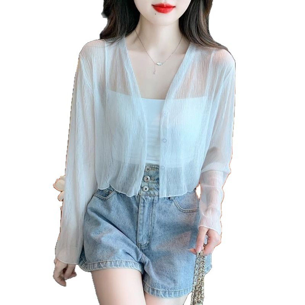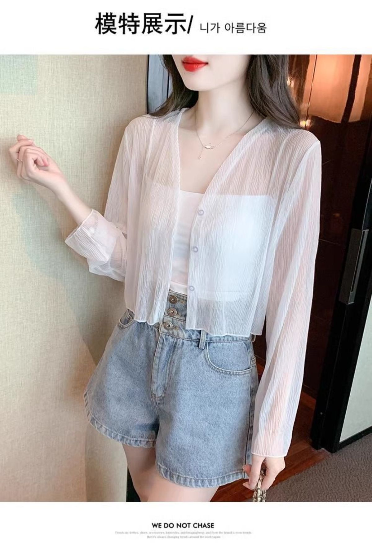 여름 25 새로운 스타일의 여성용 아이스 실크 자외선 차단 의류, 쉬폰 가디건, 작은 숄, 블라우스, 레이스 얇은 짧은 코트