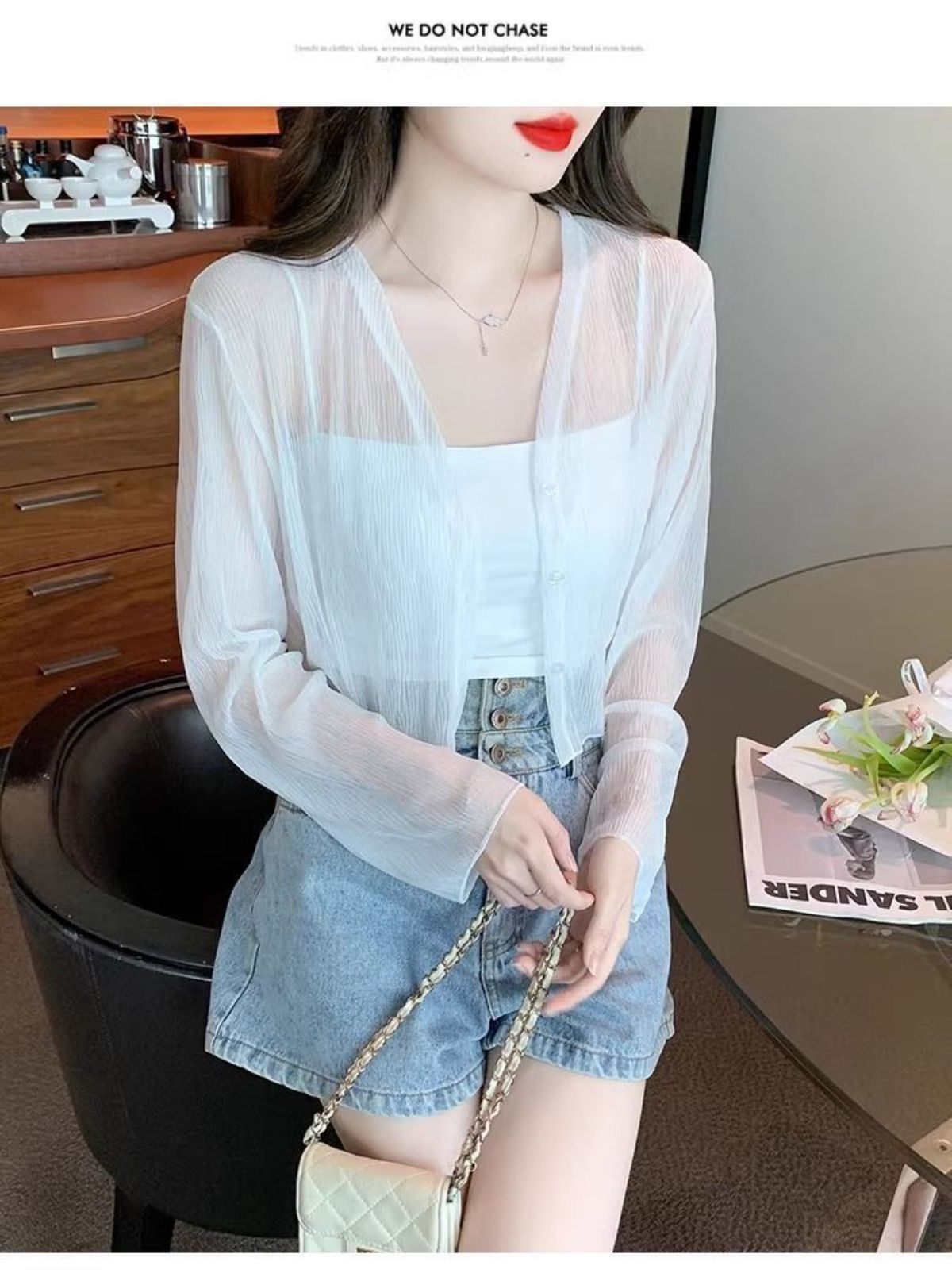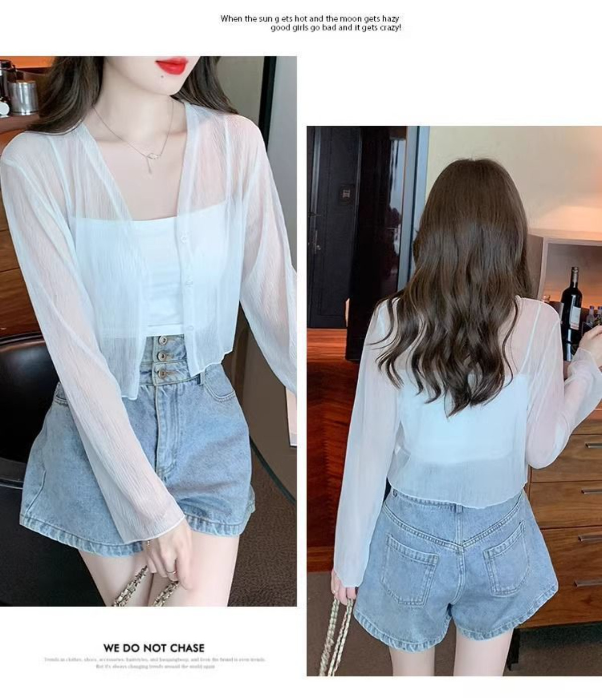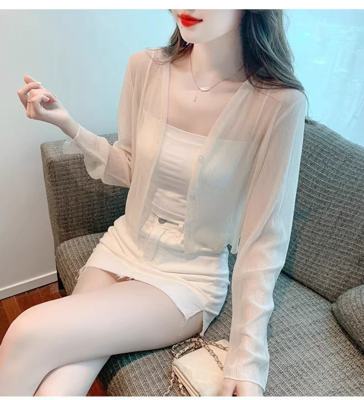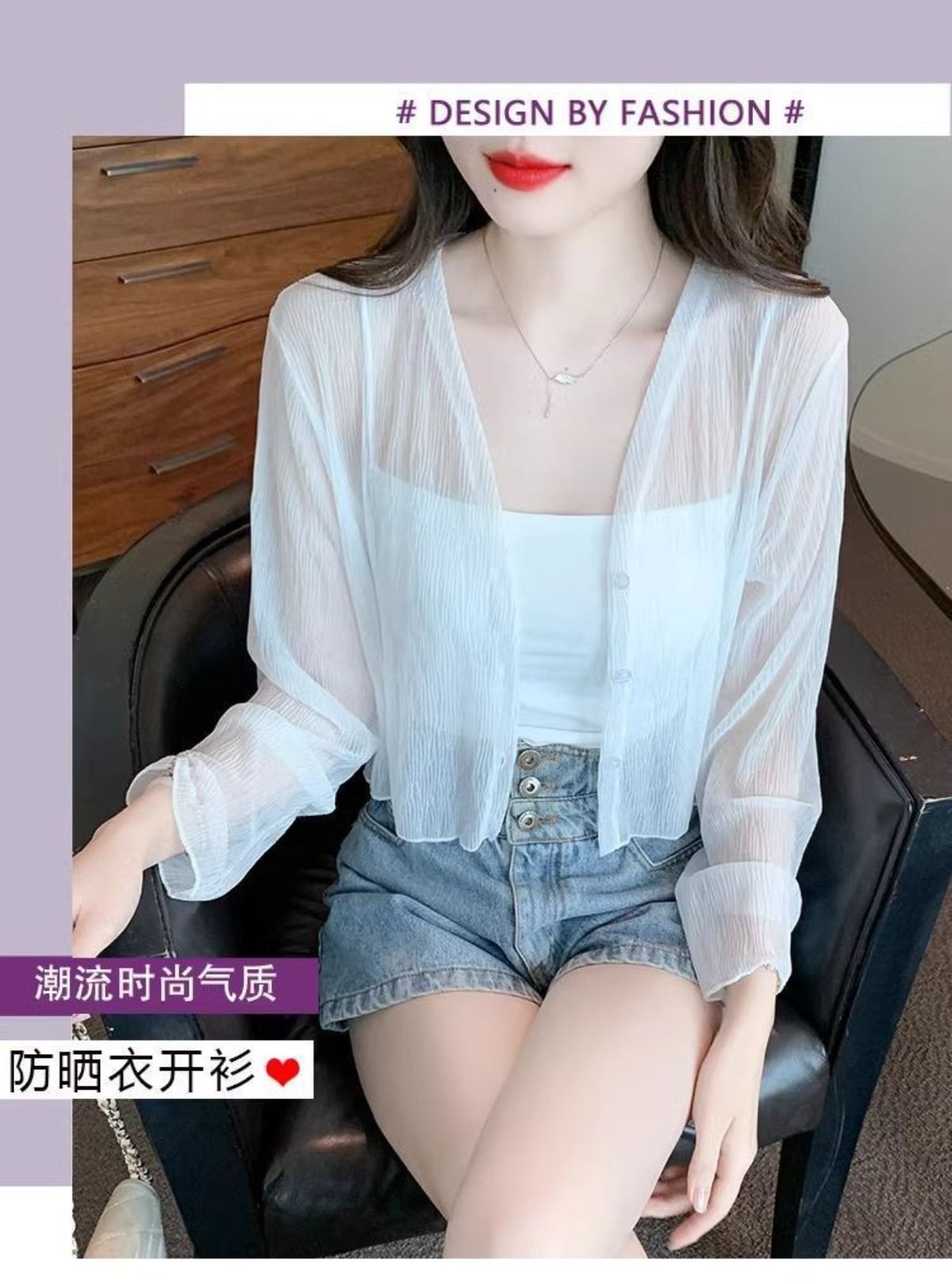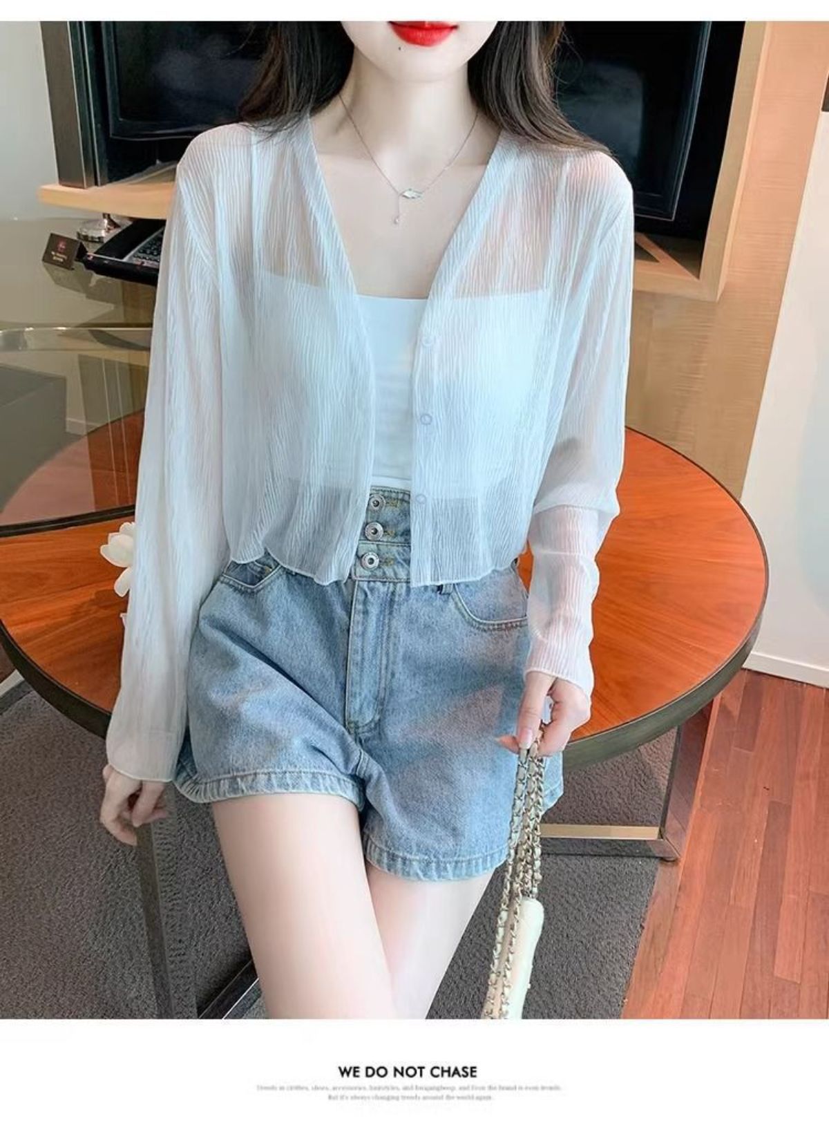 여름 25 새로운 스타일의 여성용 아이스 실크 자외선 차단 의류, 쉬폰 가디건, 작은 숄, 블라우스, 레이스 얇은 짧은 코트