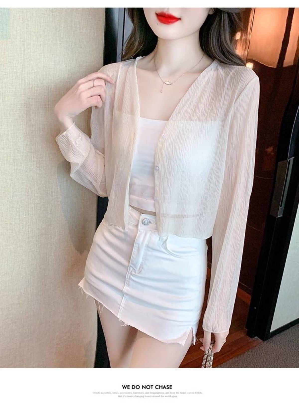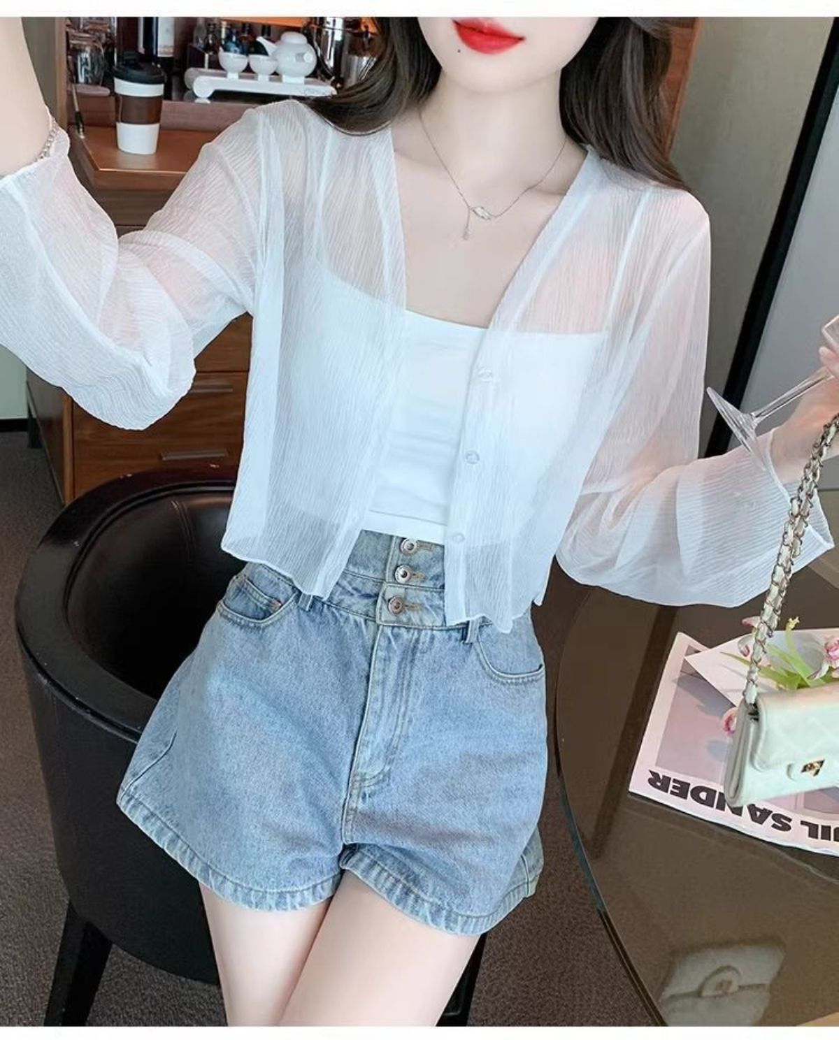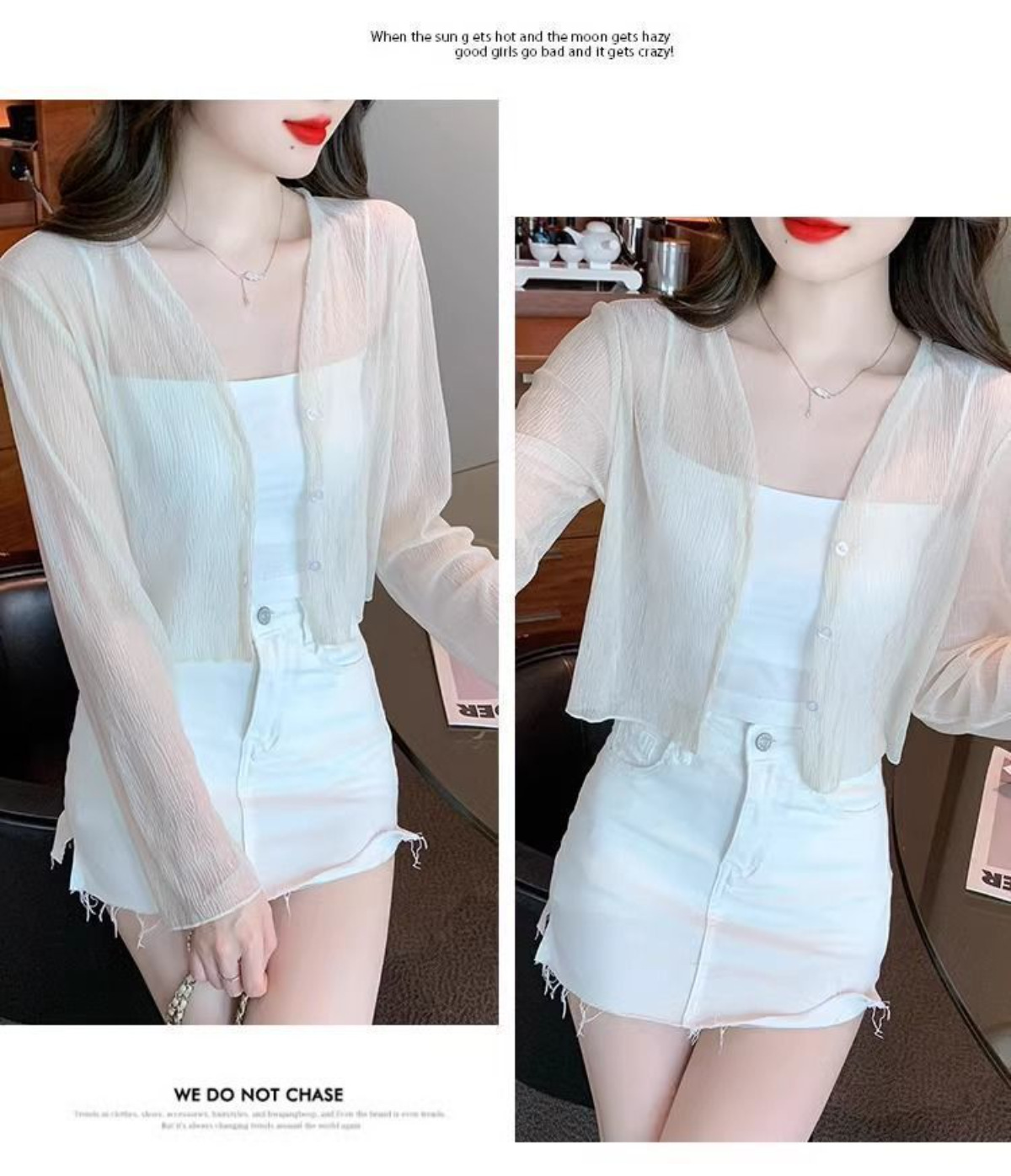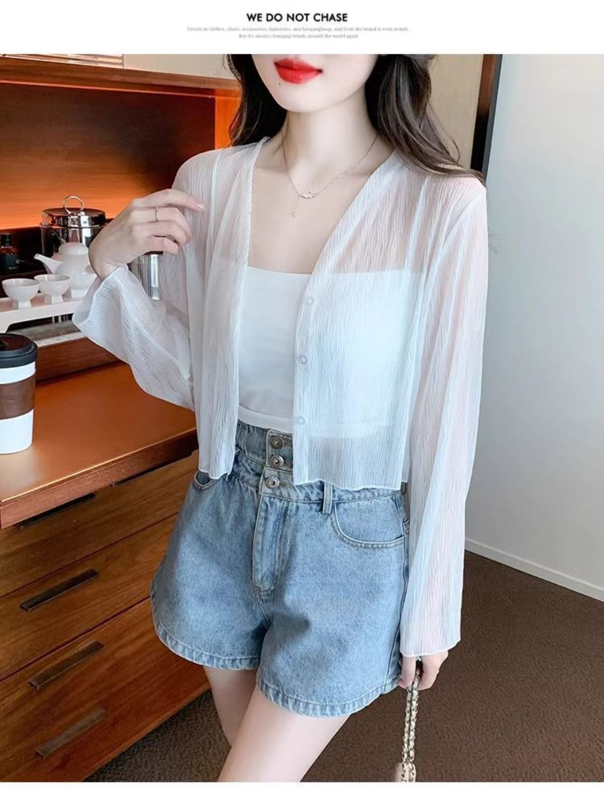 여름 25 새로운 스타일의 여성용 아이스 실크 자외선 차단 의류, 쉬폰 가디건, 작은 숄, 블라우스, 레이스 얇은 짧은 코트
