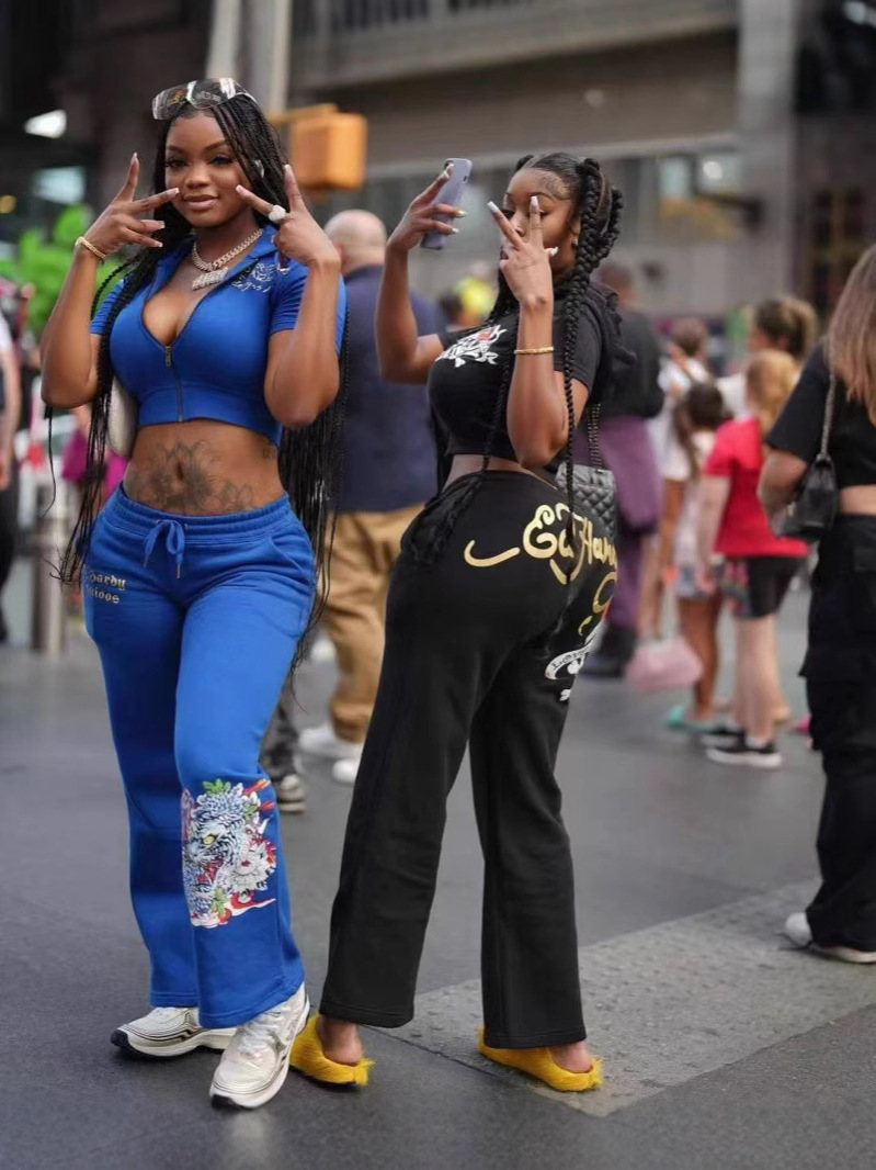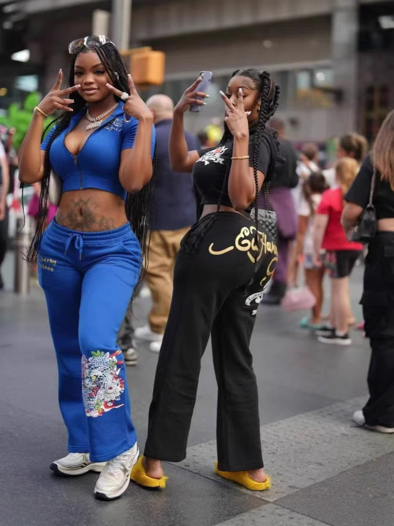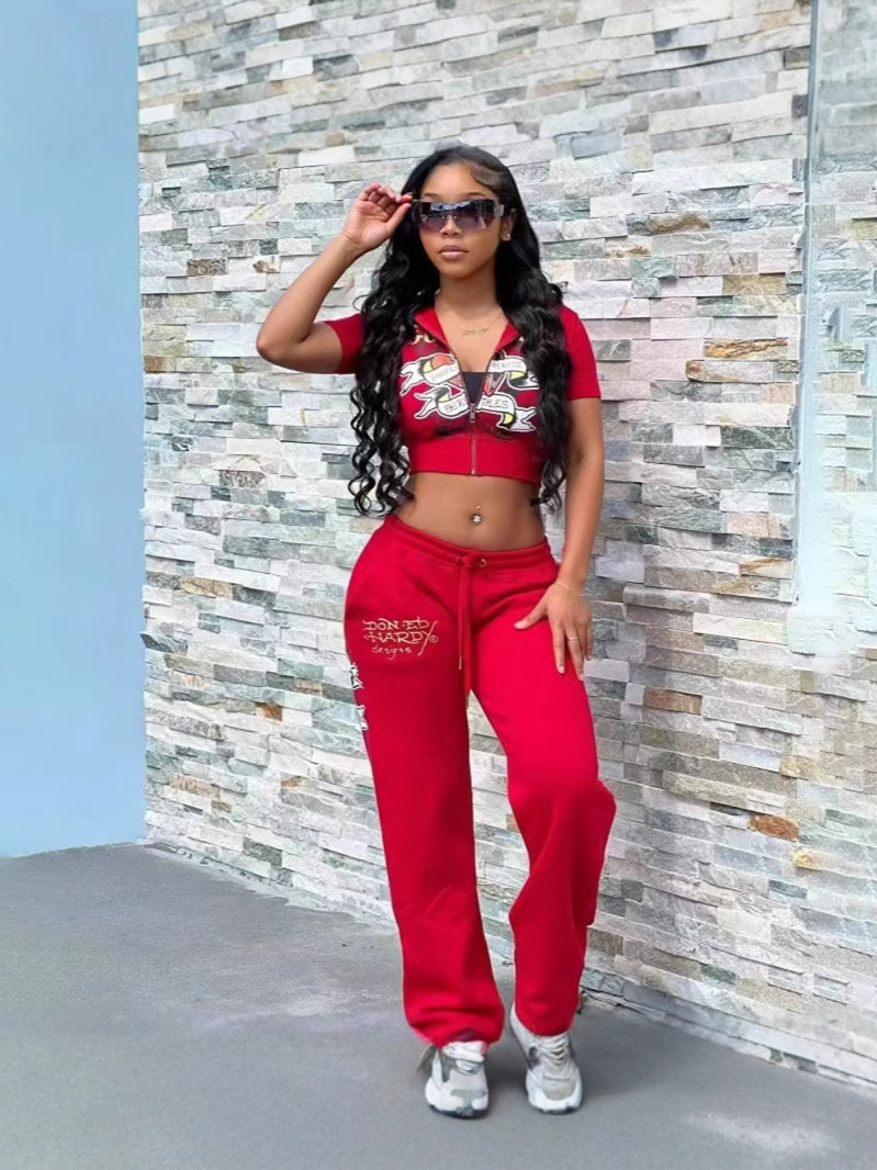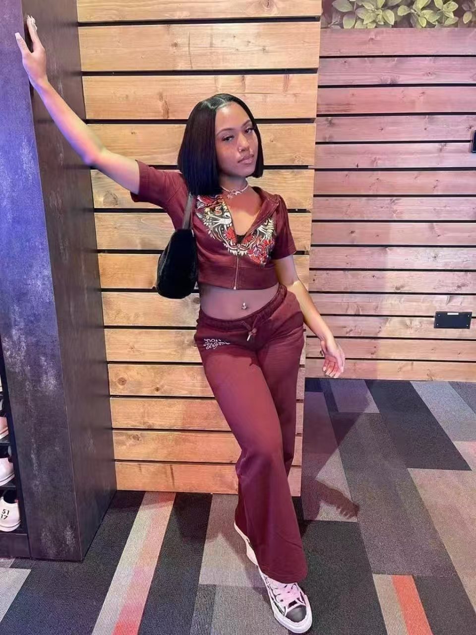 유럽과 미국의 국경 간 포지셔닝 프린트 핫 소녀 반팔 배꼽 노출 문자 스포츠 바지 정장