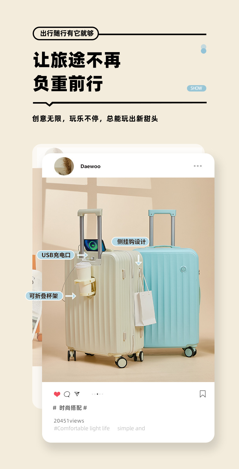 인터넷 연예인 다기능 가방 여성용 대용량 두꺼운 가방 남성용 범용 휠 24inch 무음 휠 암호 상자