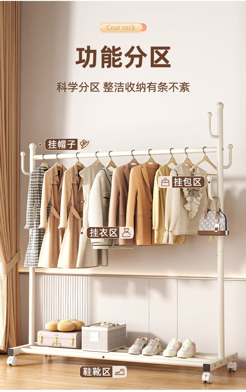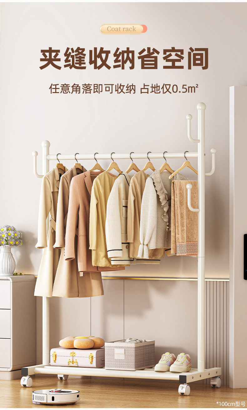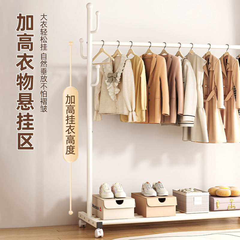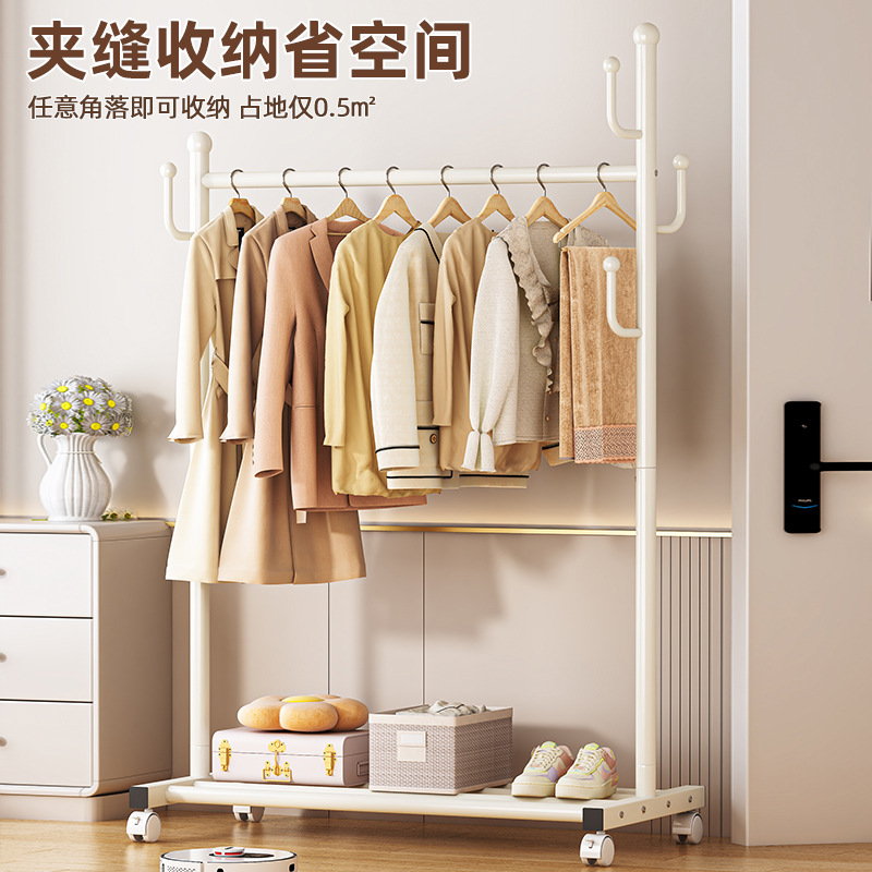 가정용 침실 옷 걸이용 바닥 스탠딩 옷 건조대 접이식 단일 막대 간단한 실내 기숙사 모바일 옷 건조대